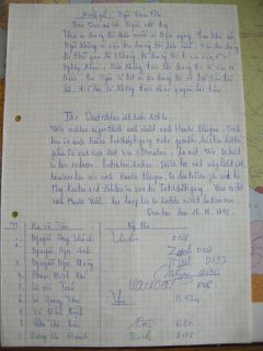 >> Besuch bei einer Dame vom Migrationsrat Berlin. Sie entscheidet in der Härtefallkommission über Asylanträge mit und besucht straffällig gewordene Vietnamesen im Gefängnis - montags Männer in Tegel (Mörder, Zigarettenmafia), mittwochs Frauen in Pankow (Menschenhandel, Schleuser). Die Schleusung über Moskau nach Europa kostet 10.000 (Osteuropa) bis 30.000 Dollar (Skandinavien). Sie selbst ist 1969 mit ihrem deutschen Mann aus Saigon geflohen, der Arzt auf dem Sanitätsschiff »Helgoland" war. Mit dabei: Ein Mann vom Berliner Flüchtlingsrat, der auch in Schönefeld zugegen war - anlässlich der Abschiebung der 100 Vietnamesen. Bei Wiedereinreise müssten die abgeschobenen Vietnamesen die Abschiebung und die »Abschiebehaft" bezahlen (66 Euro pro Tag).