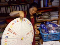 Eine der porträtierten Damen aus der Potsdamer Ausstellung. 1975 in die DDR gekommen, hatte sie mit 300 anderen Vietnamesen im VEB DKK Scharfenstein Kühlschränke gebaut . Mit 20 Jahren Garantie. Als Siemens nach der Wende das Werk übernahm, sagten die nur: "Seid ihr verrückt, 20 Jahre...!" Sie hat heute immer noch einen alten zu Hause. Sie leitet den Frauenclub Song Hong in Potsdam, der sich unter anderem für die Entschädigung von Agent-Orange-Opfern einsetzt. Grauenhafte Photos von missgebildeten Kindern in der zweiten und dritten Generation. Am Ende schenkt sie uns eine Ho-Chi-Minh-Büste. Sie hat keine Zeit, mitzumachen.