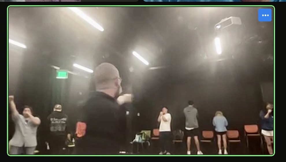 How do we experience body, framing, timing? - A morning class with 20 students of the undergraduate Performance Studies and Social Change class taught in the COMM department by Joey Richards. A class in which students explore spacial and interpersonal and group-driven relations, guided and moderated by Daniel online.