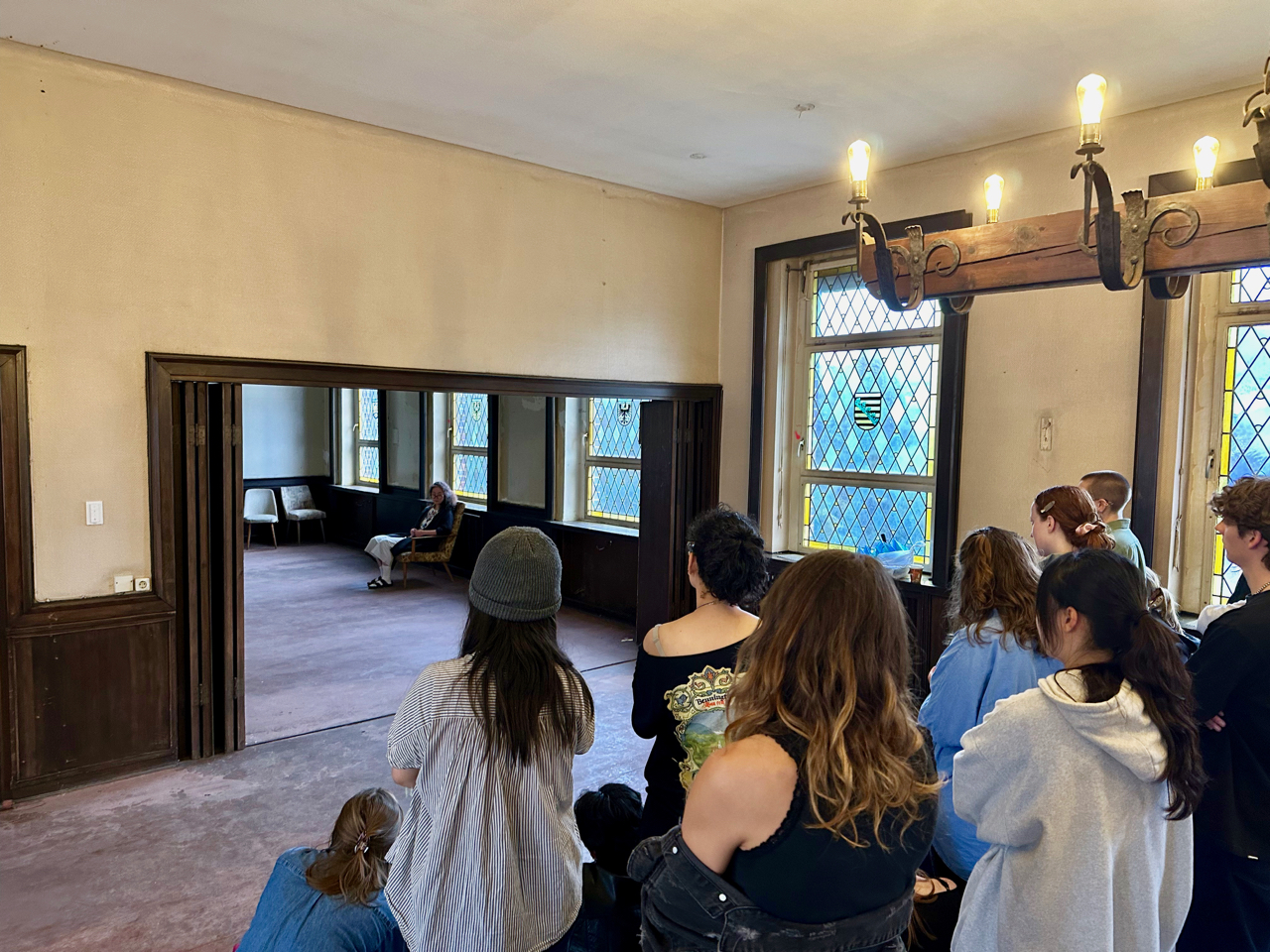 A stricktly practical and energetic journey with 17 students from various countries from the US, from China, Russia, Ukraine and England through several applications of postdramatic theater concepts.