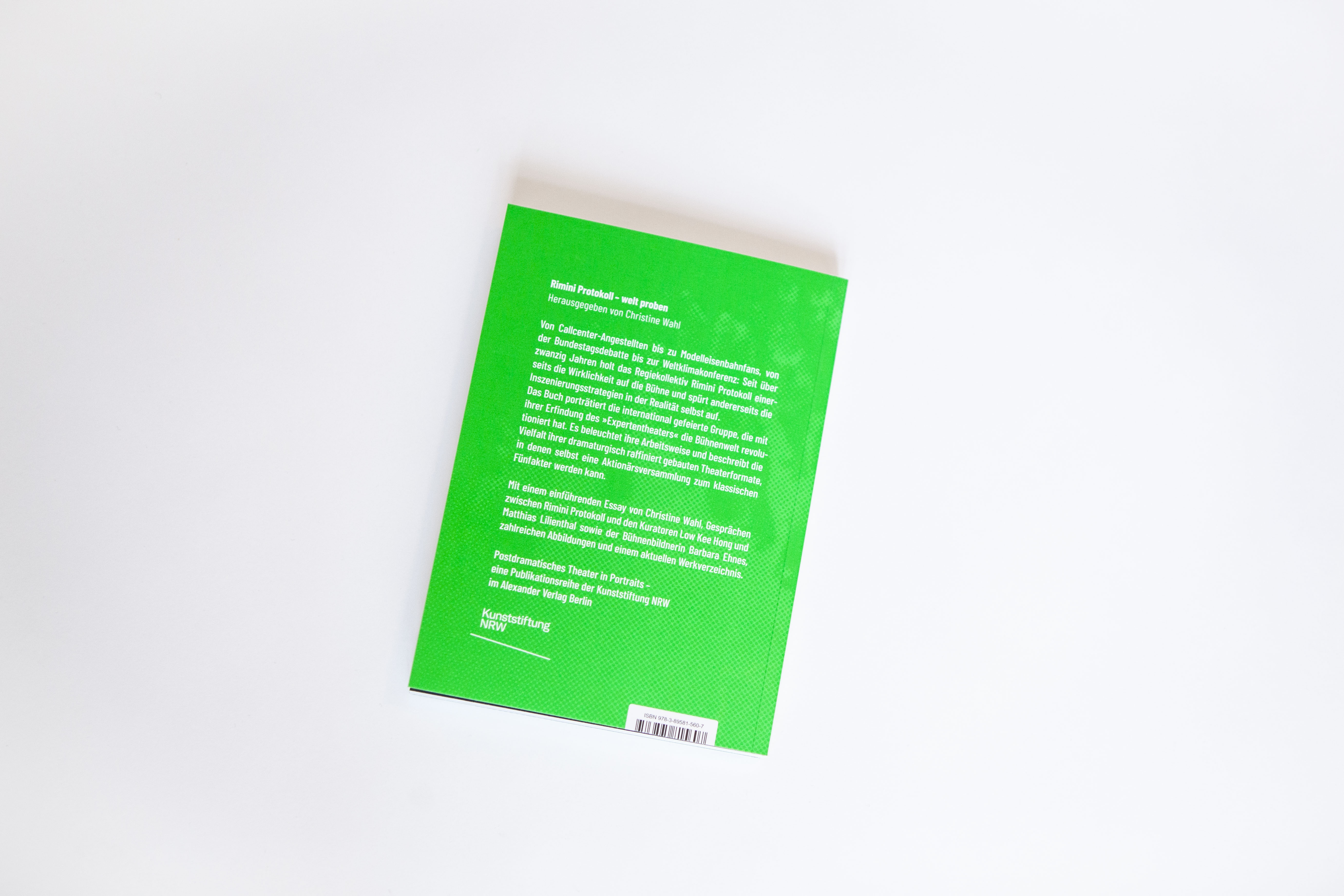 Herausgegeben und mit einem einführenden Essay von Christine Wahl, Interviews mit Rimini Protokoll von Barbara Ehnes, Matthias Lilienthal und Kee Hong Low, zahlreichen farbigen Abbildungen und einem Werkverzeichnis.