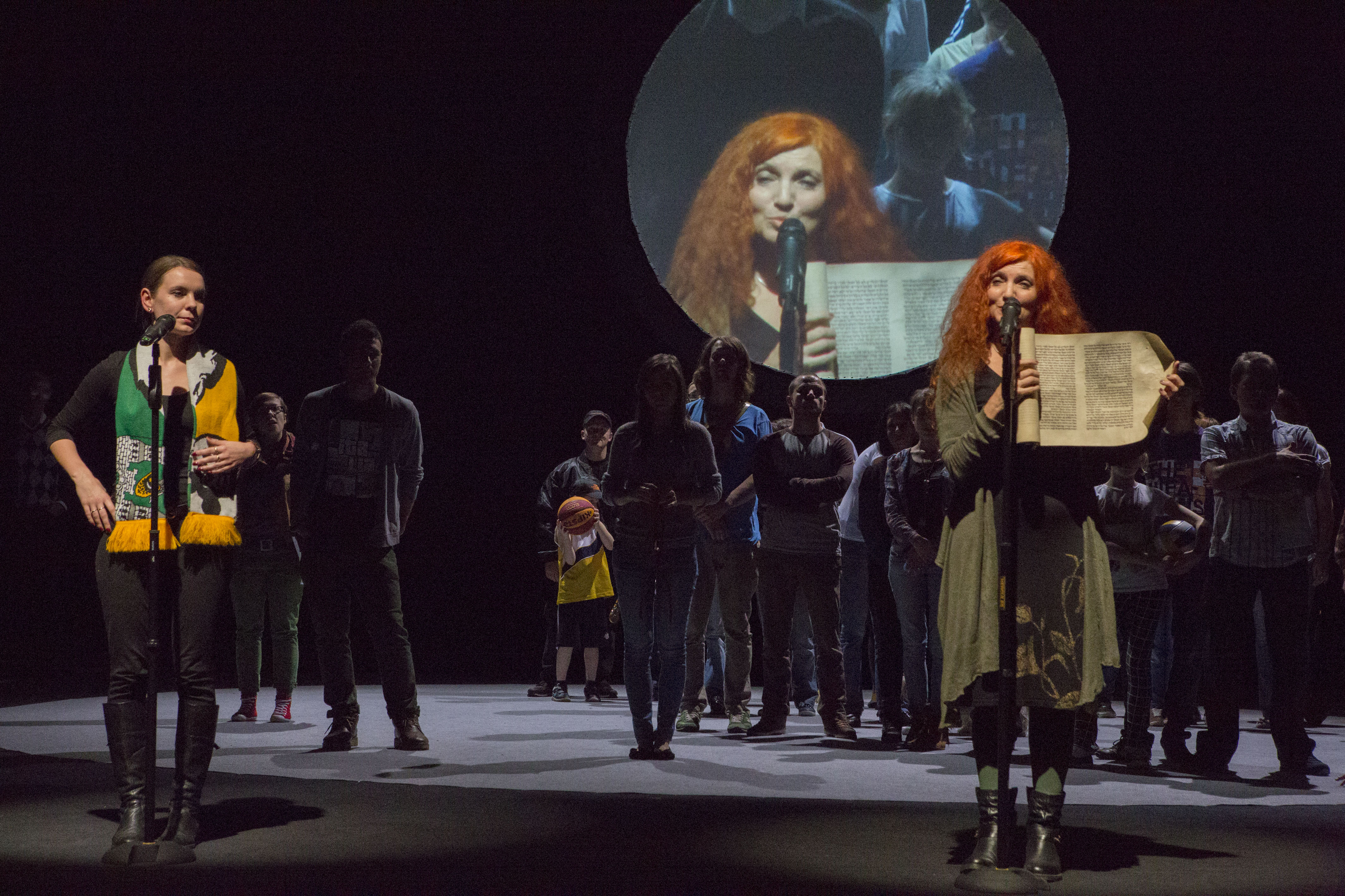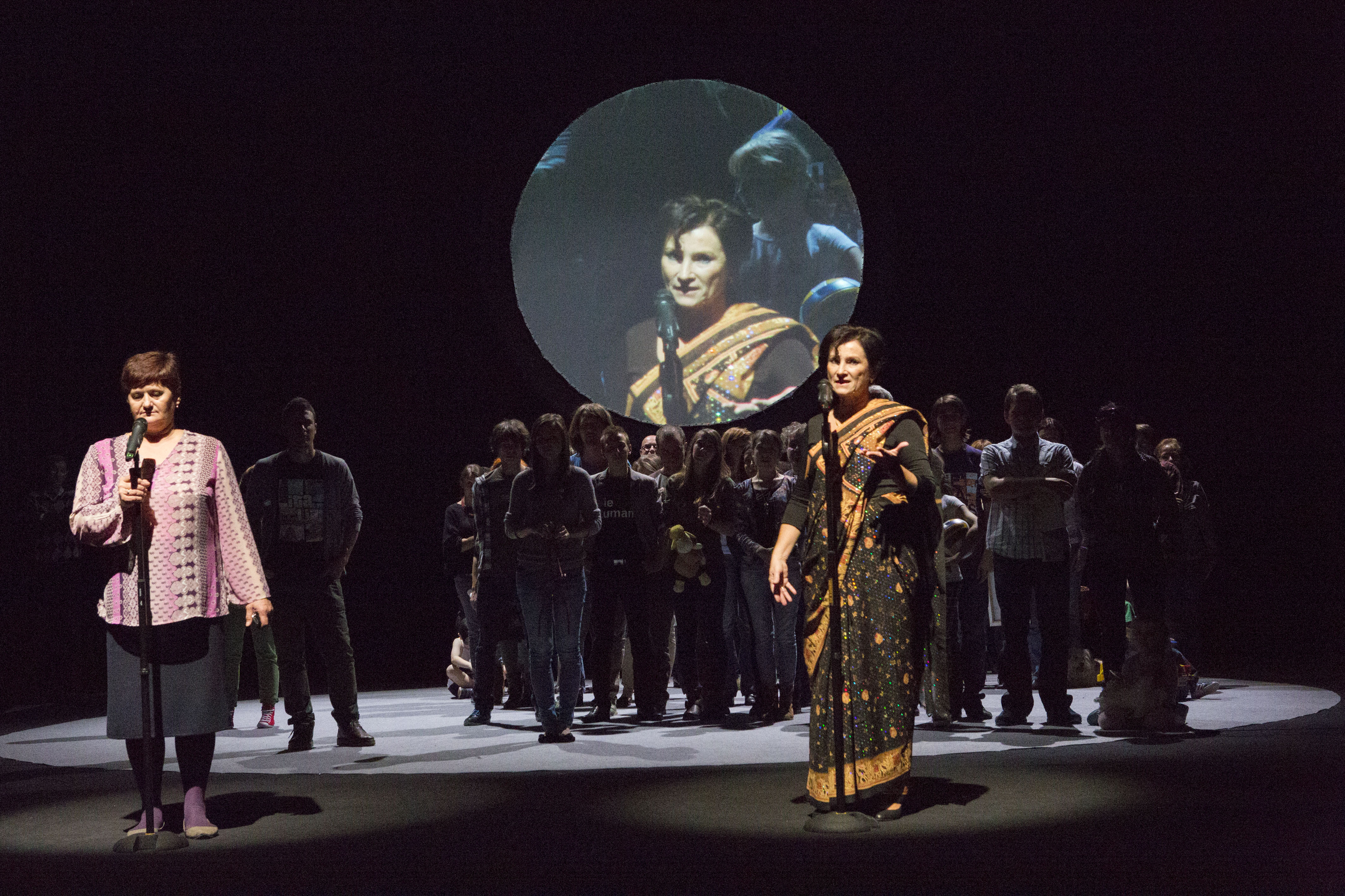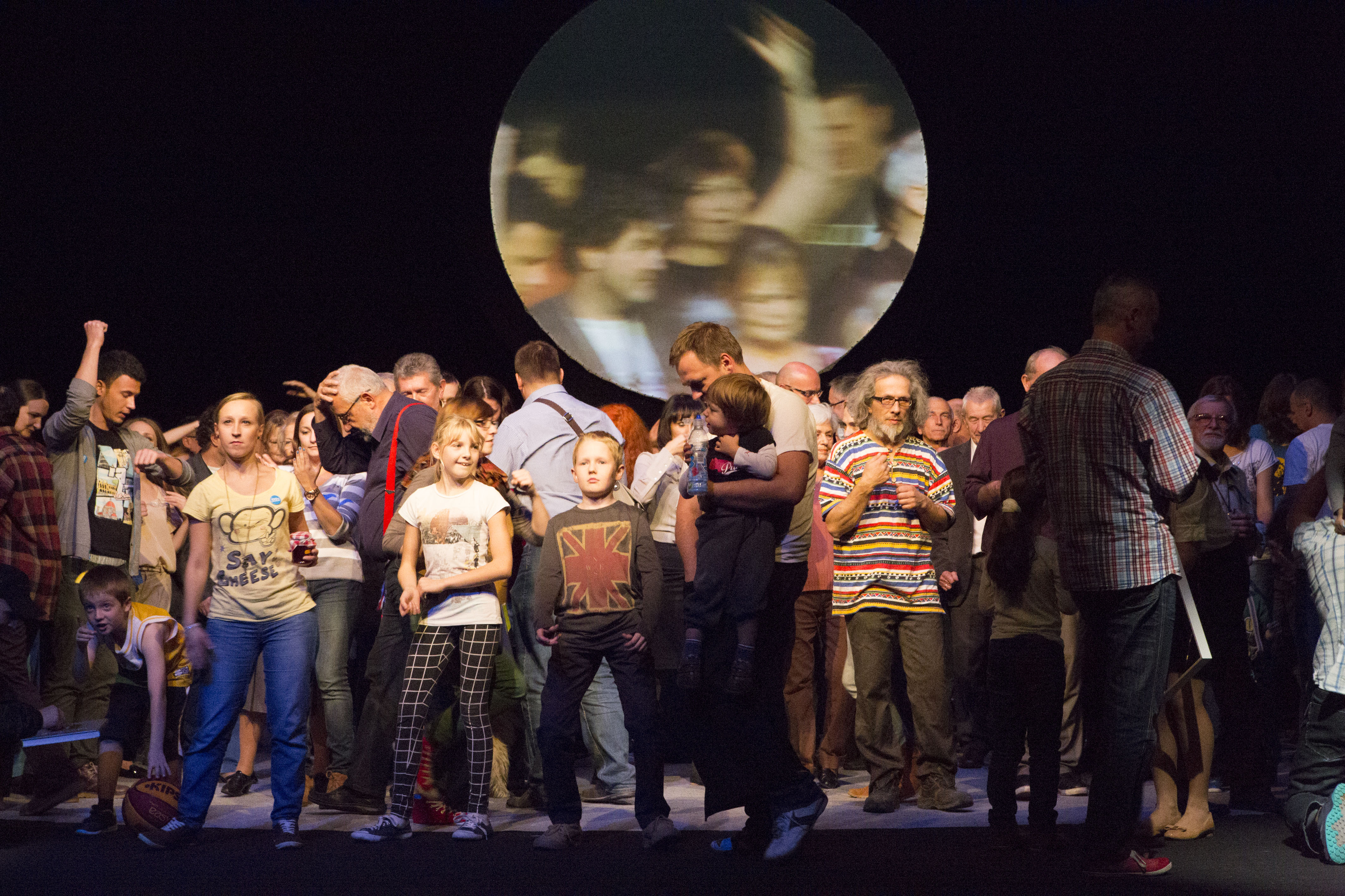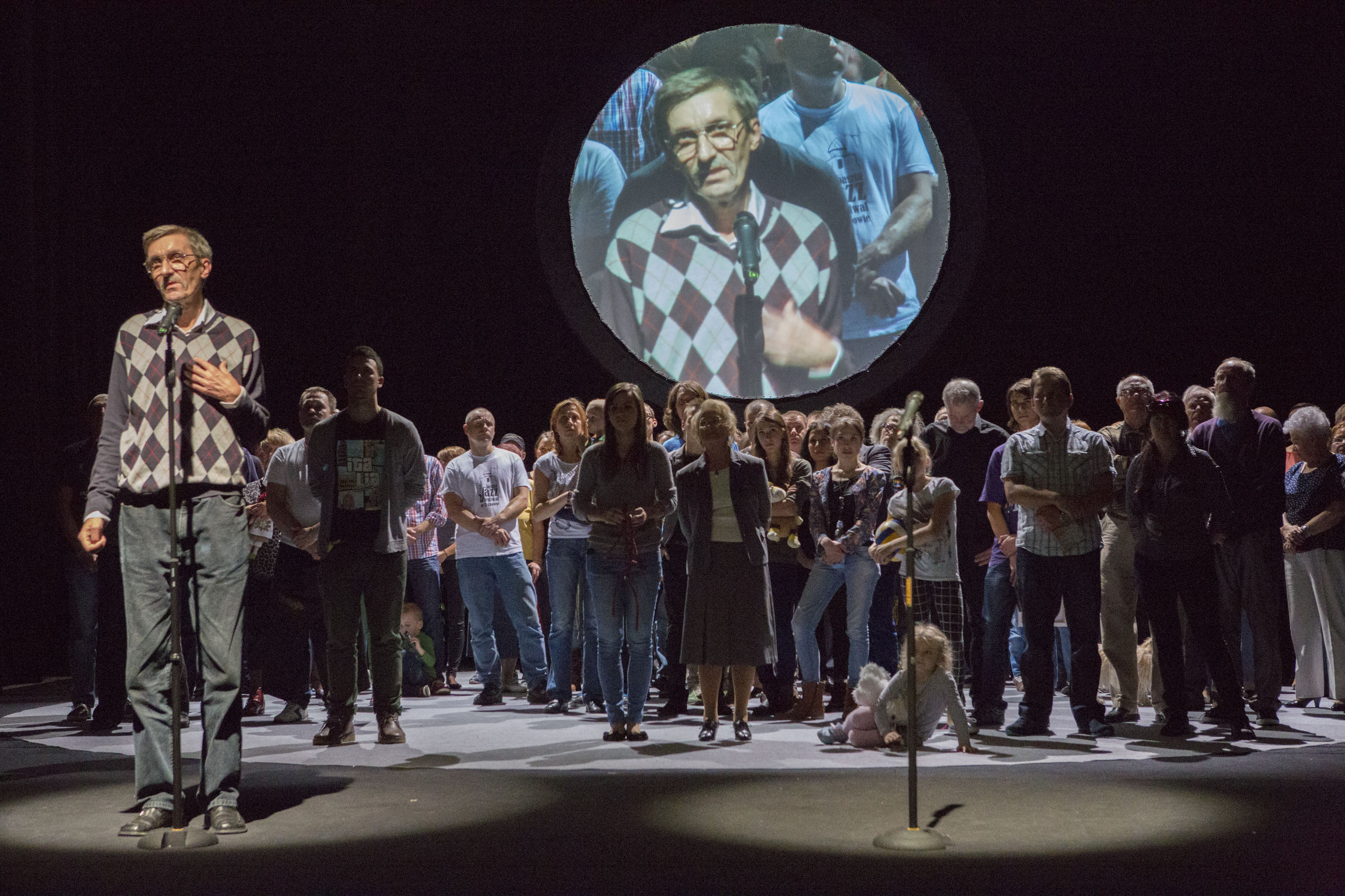 Statistics gather people and pack them into pieces of pie, into bars and curves that are used for political argumentation and the creation of economic strategies. What if these statistics were given faces? What if Krakow's 759.131 population was represented on stage by 100 persons? 100%Krakow takes the risk and generates the average of Poland's 2nd biggest city which is to some the secret capital of country. Spreading throughout Krakow over four months, 100% Krakow began with the casting of one member who had to recruit another in 24 hours, who then recruited another and so on – all according to specific criteria of age, gender, district, marital status and household composition mirroring the demographic make-up of this historical urban junction. Each individual on stage represents roughly 7.591 Krakowians – together they a choir that has never practiced, an impossible entity with many faces. They are Krakow, giving answers to questions that are beyond every regular statistic.