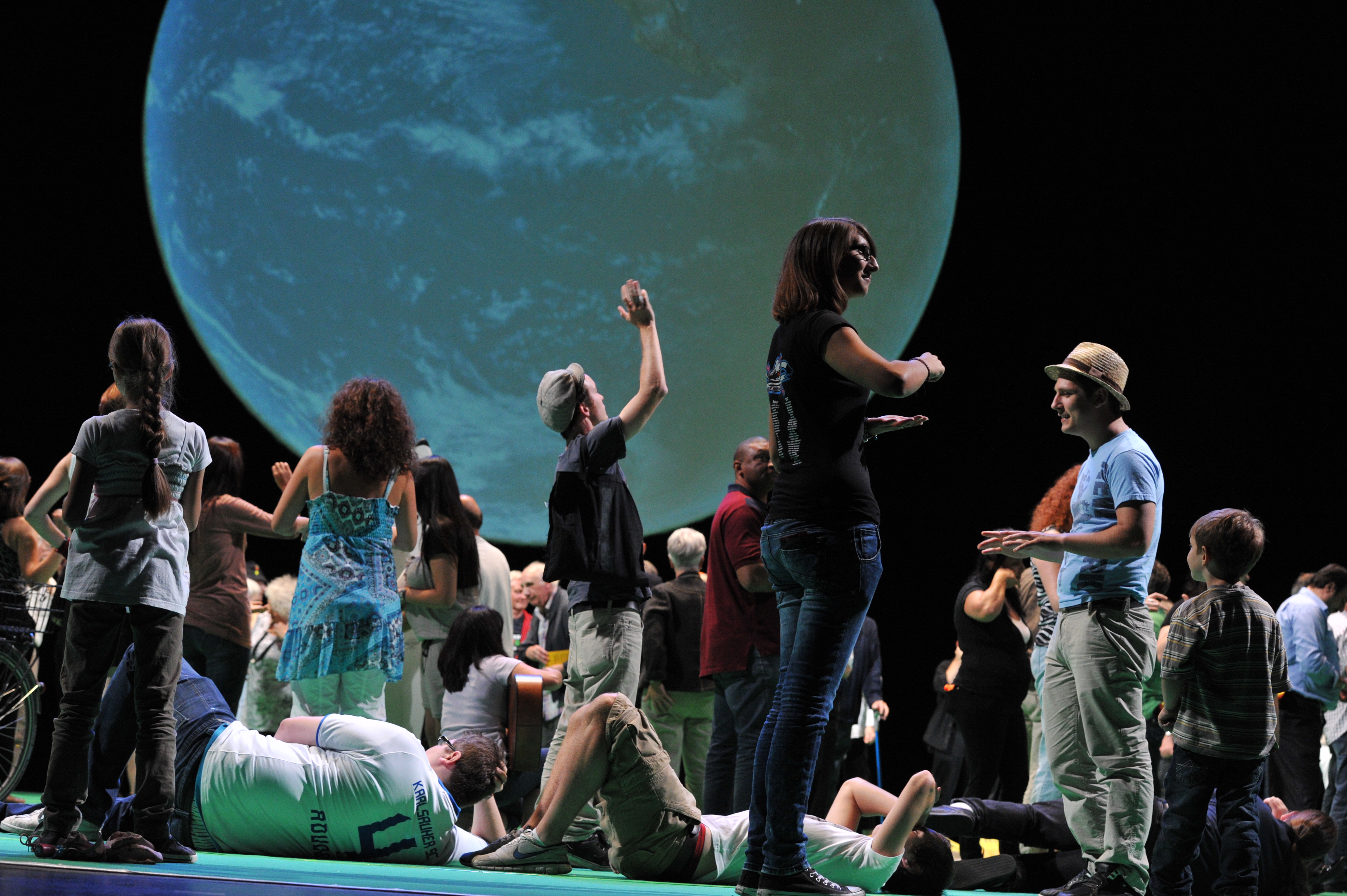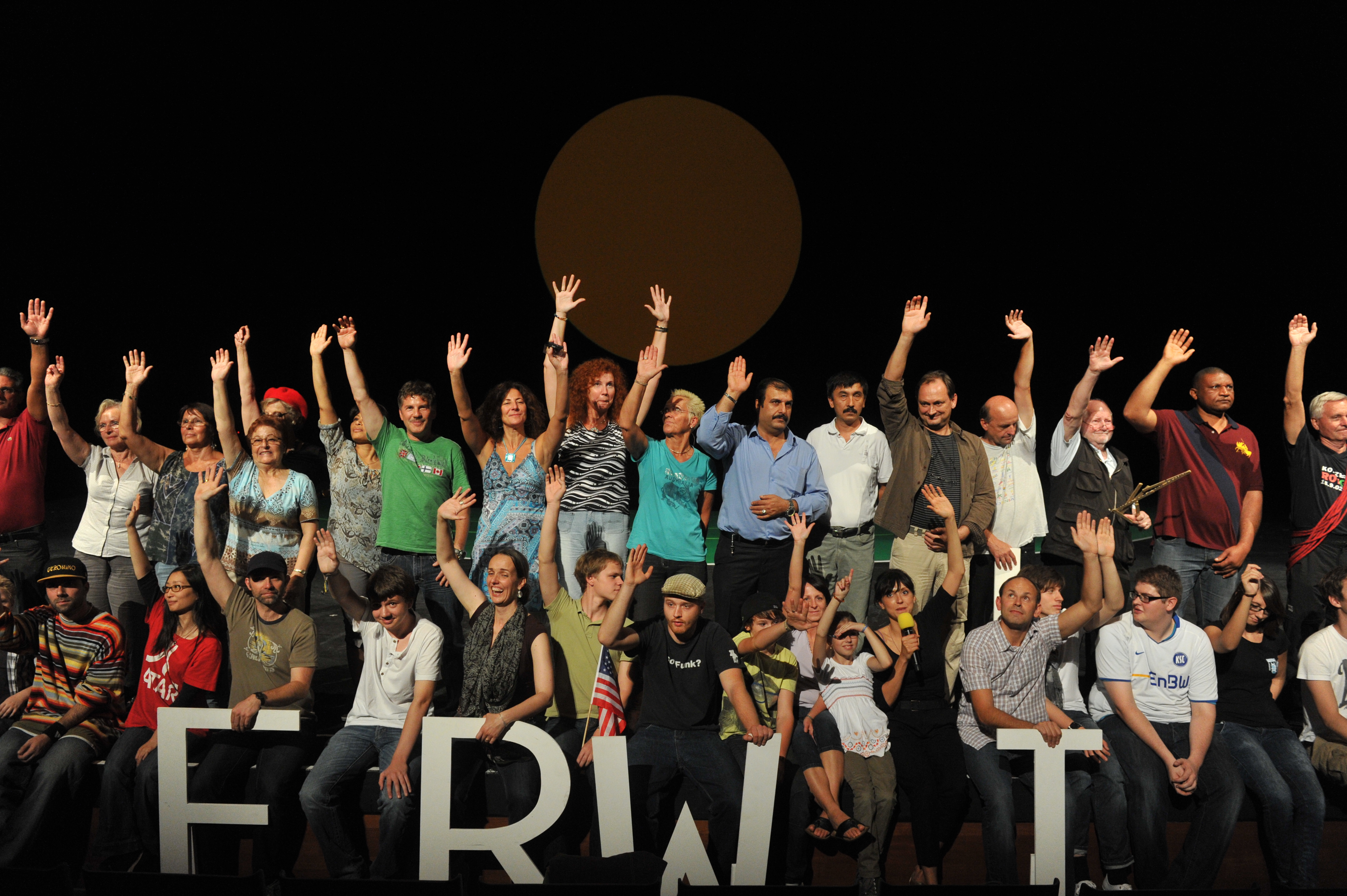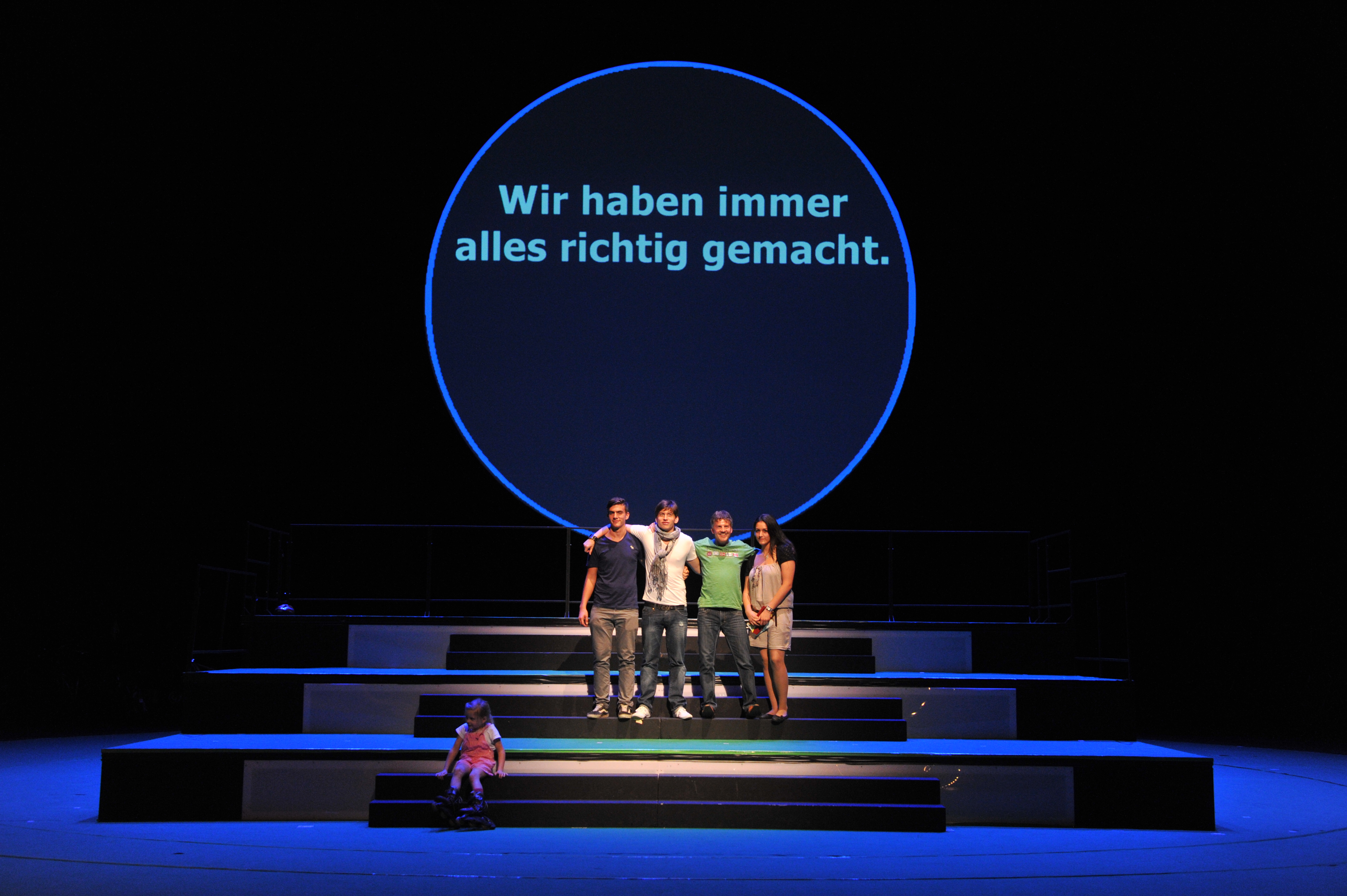 Und wie dieser Bevölkerungsquerschnitt konkret aussieht, wie der Einzelne empfindet, entscheidet und lebt, das wird sich erst zeigen, wenn sich am 28. September 2011 der rote Vorhang des Staatstheater hebt – den es allerdings so nicht mehr gibt, denn aus ihm wurden - so die Legende – 1951 die ersten Roben der Richter des Bundesverfassungsgerichts geschneidert. 100 Prozent Karlsruhe ist eine Ansammlung, die eine Stadt ist, eine Gruppe, die sich erst wahrzunehmen beginnt, ein Chor, der noch nie geübt hat, ein unmögliches Gebilde mit vielen Gesichtern. Gruppenbilder als flüchtige Portraits von Zugehörigkeit. Als Familienersatz oder Kleinstverein. Nach Alter oder Wohnsitz, nach Geschlecht, politischer Gesinnung sortiert, in Meinungen, Haltungen, Überzeugungen und Erfahrungshorizonte gestaffelt dann, nach und nach, als Stimmenmeer, als geometrischer Körper auf mehr als 100 Quadratmetern Bühne...