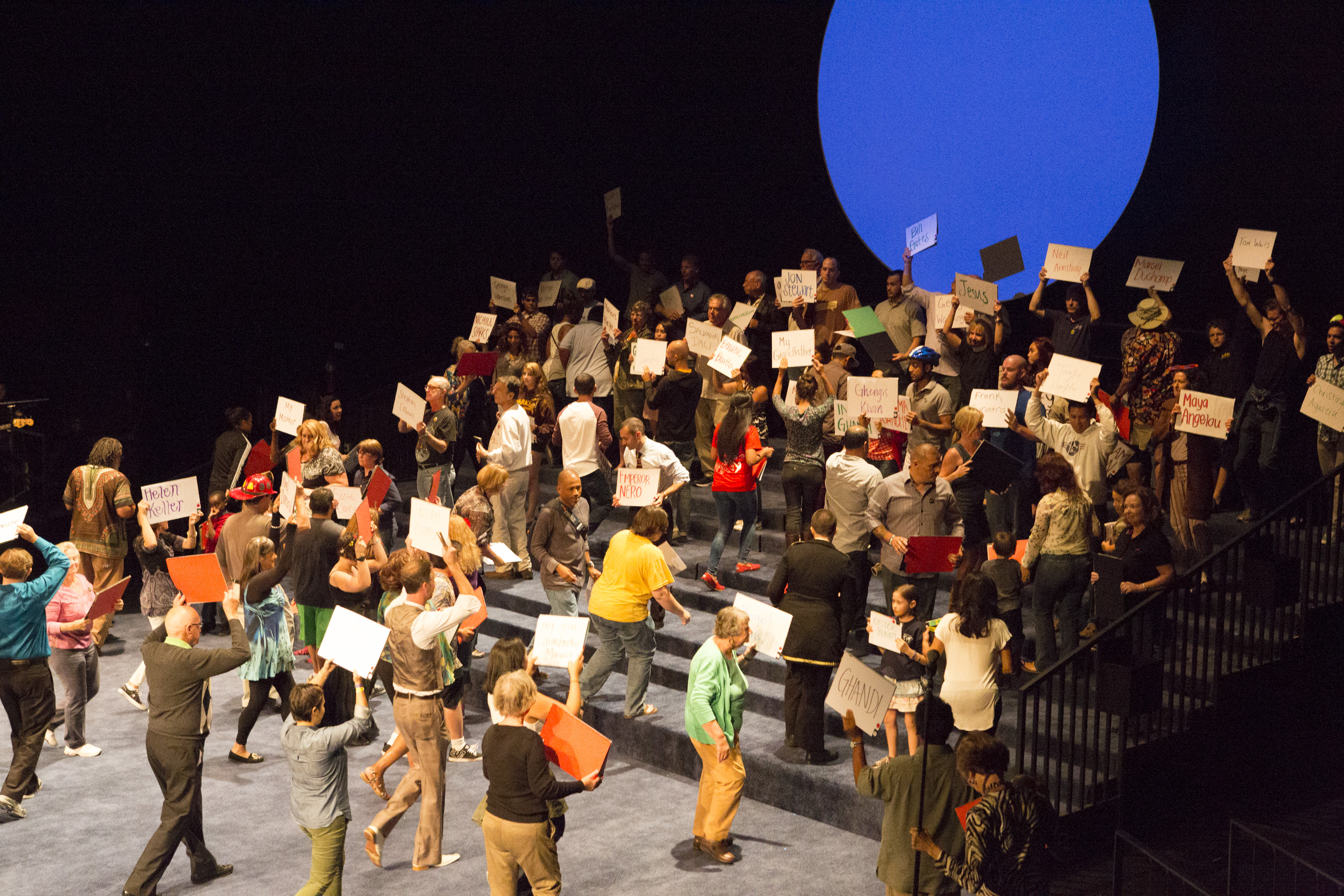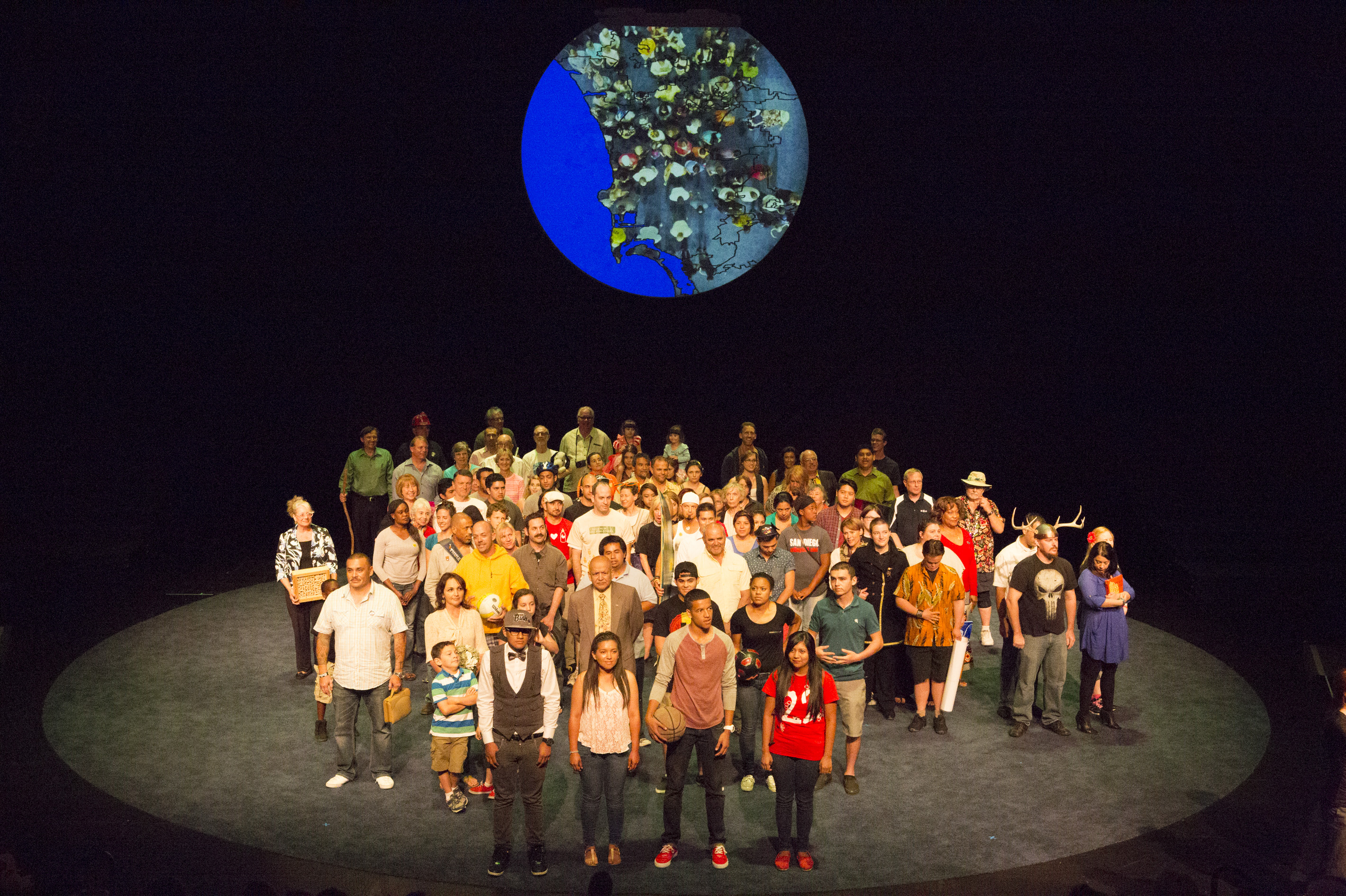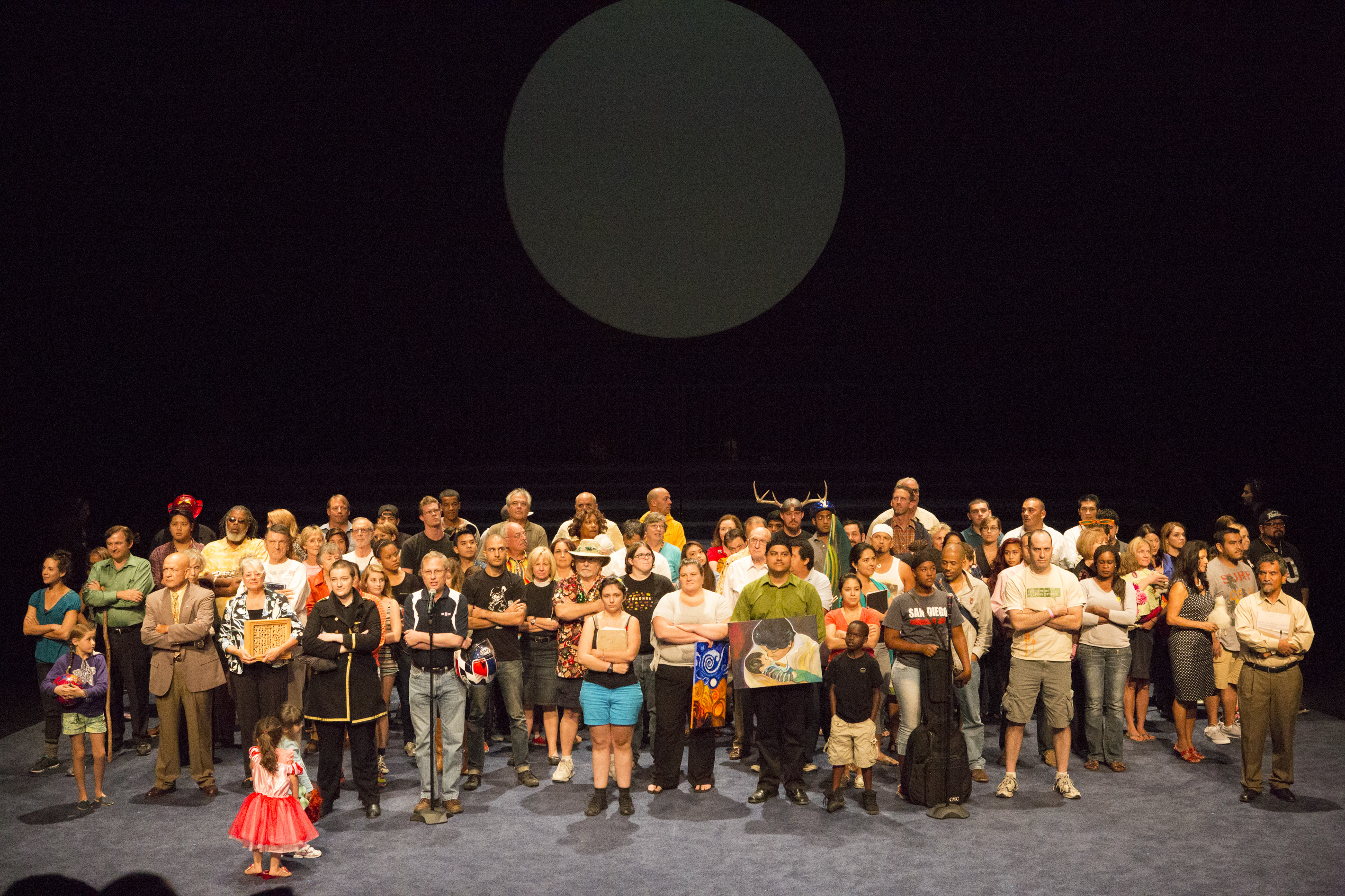 For statistical purposes, people are regularly converted into pie wedges, bars and curves – which are then used to make political arguments or to create economic cost-benefit strategies. What if these statistics were given faces? What if San Diego’s 1.307.402 population was represented on stage by 100 persons?