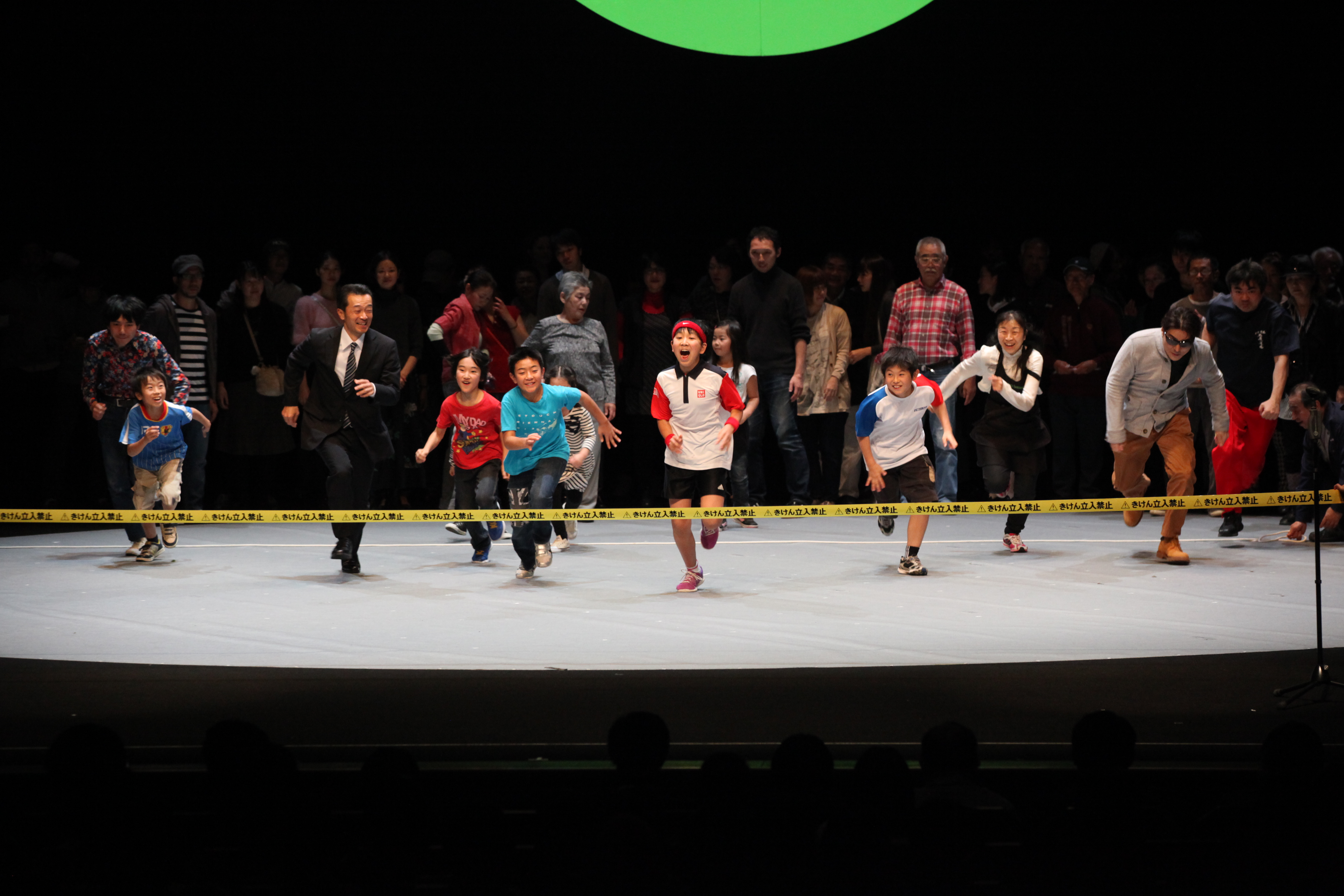 Statistics gather people and pack them into pieces of pie, into bars and curves that are used for political argumentation and the creation of economic strategies. What if these statistics were given faces? What if Tokyo city's 9.055.257 population was represented on stage by 100 persons? 100%Tokyo takes the risk and generates the average of one of the most densly populated cities of the planet. In a world bombarded with ‘lies, damned lies and statistics’ this cross-section of the society could tell the truth of modern Tokyo life in a way graphs or pie-charts never could. Spreading throughout Tokyo over four months, 100% Tokyo began with the casting of one member who had to recruit another in 24 hours, who then recruited another and so on – all according to specific criteria of age, gender, household status, nationality and district mirroring the demographic make-up of this mammoth metropolis. At first, this casting process was easy. But with each passing day, the stakes increased. As the various statistical categories began to fill up, the chances of finding people who could occupy the remaining categories became more remote. Gaps had to be filled, new connections established, some people could only be found through newspaper ads and networking. But now, around four months later, these 100 Tokyoites are filing onto a revolving, circular stage in Tokyo Metropolitan Playhouse.