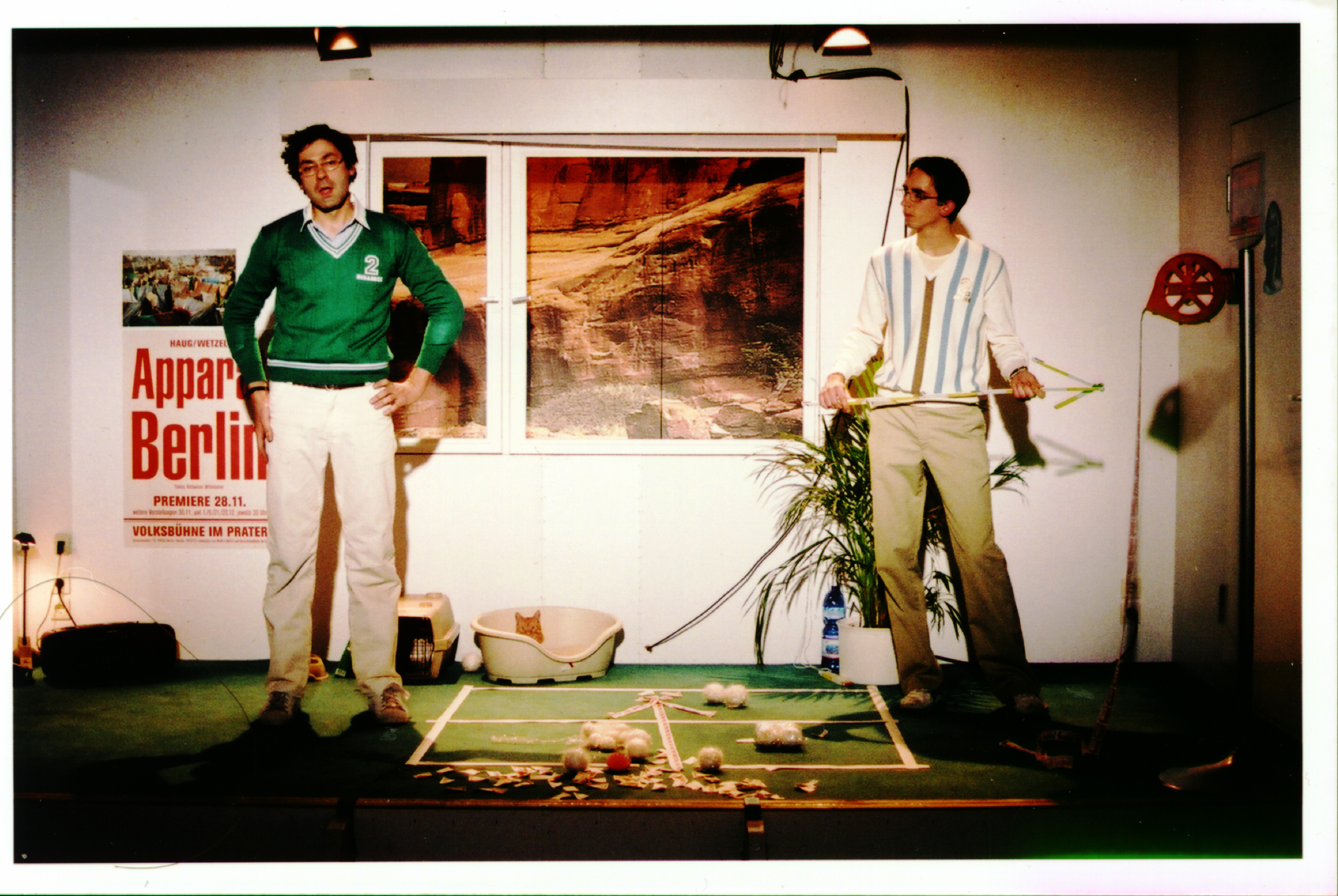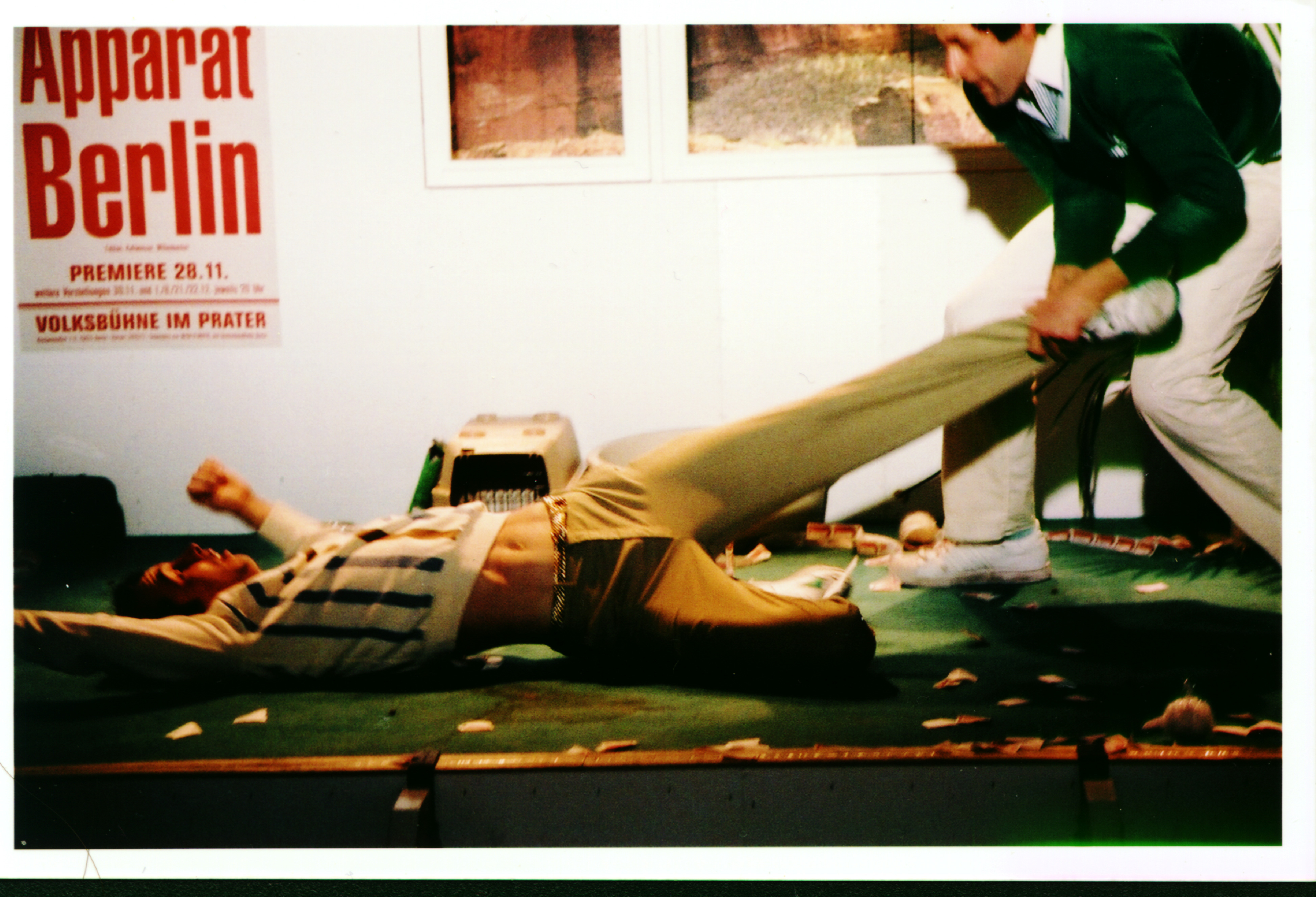 Wer darf für einen Tag die Seite wechseln? Wie kommt man an die Passierscheine ran? Wie organisiert man den Andrang von Millionen auf Antragsstellen? Das Experiment einer geteilten Stadt mit sich selbst bildet sich in Echtzeit in ihren Küchenradios ab. Im RIAS-Archiv lagern 40 Stunden Bandmaterial von den RIAS-Sondersendungen zu Passierscheinfragen im Winter 1963/64. Auf den Bändern fragen Hörer Peter Herz und seine Moderatorenkollegen nach dem aktuellen Stand der Regeln und nach deren Feinheiten. Sie wollen wissen: Was muss ich tun, wie komme ich ran, was darf ich mitnehmen, was riskiere ich. Sie erfahren am Apparat: Die Regeln sind in Bewegung und sie, die Anrufer, die Spielsteine in einer temporären Versuchsanordnung. Apparat Berlin klammert Auszüge von den Bändern in Bert Neumanns Wohnbühne (und an die schnellste Plakatwand Berlins in der Wartenische am Prater in der Kastanienallee). Die neun Türen der Wohnbühne sind an Ghettoblaster gekoppelt; werden sie geöffnet, springen die Bänder an.