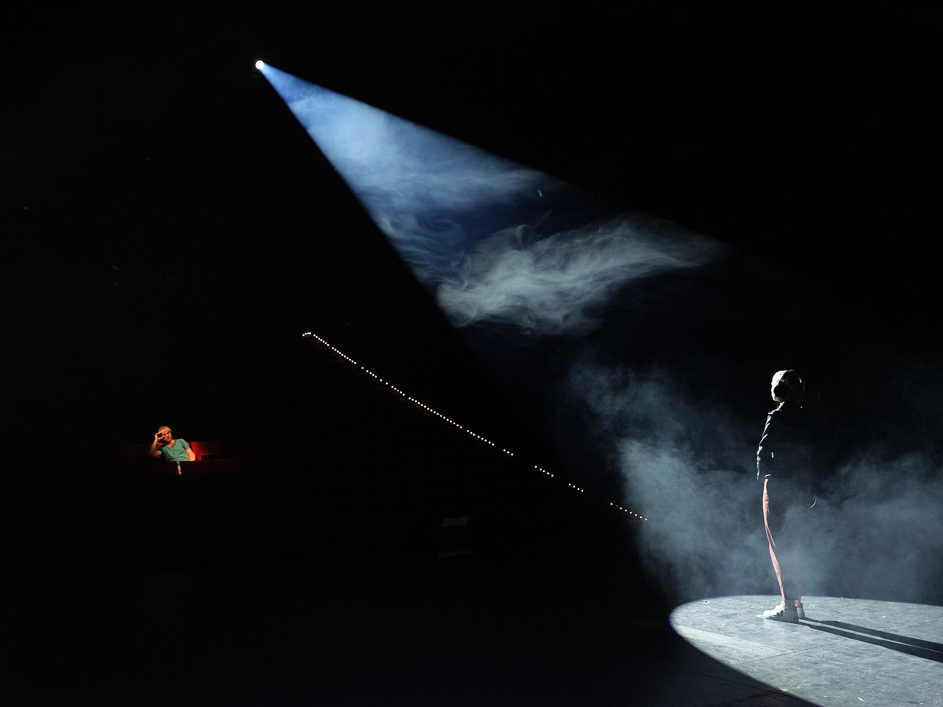 Aber was bleibt von einer flüchtigen Theateraufführung überhaupt zurück? Aufzeichnungen, Kritiken und selbst Regiebücher bilden nur einen Teil der Aufführung ab. Hormone, Gerüche, Textur haben andere Spuren hinterlassen. In ihrer Leere entwickeln Zuschauer*innenraum, Bühne, Garderoben und Lichtbrücken den Charme von Ruinen: Post-Spektakel. Die Bühne und ihre Umgebung als temporäre Ruine einer rituellen Versammlungsstätte. Eine Archäologie der Repräsentation von Gesellschaft. Schicht für Schicht abgetragen gibt das Gebäude den Blick frei auf das, was Theater war, ist, sein kann.