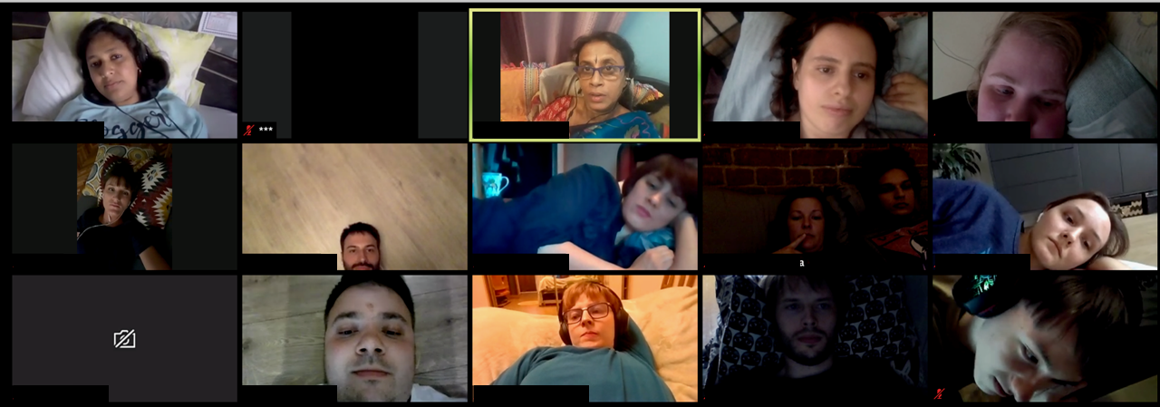 Während der 70-minütigen Performance zeigen sie ihre Wohnungen, sprechen über die wirtschaftlichen und persönlichen Auswirkungen ihrer Arbeit in den Call Centern, über die Einschränkungen des Alltags durch Covid-19 und beziehen die Besucher*innen - soweit diese es wollen - nach und nach in dieses Beisammensein mit ein: dabei offen für das, was auch diese in der Runde gerne über ihr Leben preisgeben wollen. Eine interkontinentale Tasse Tee - und eine Runde Tanz sowie ein Gedankenaustausch, der auch in unsere individuelle Zukunft blickt.