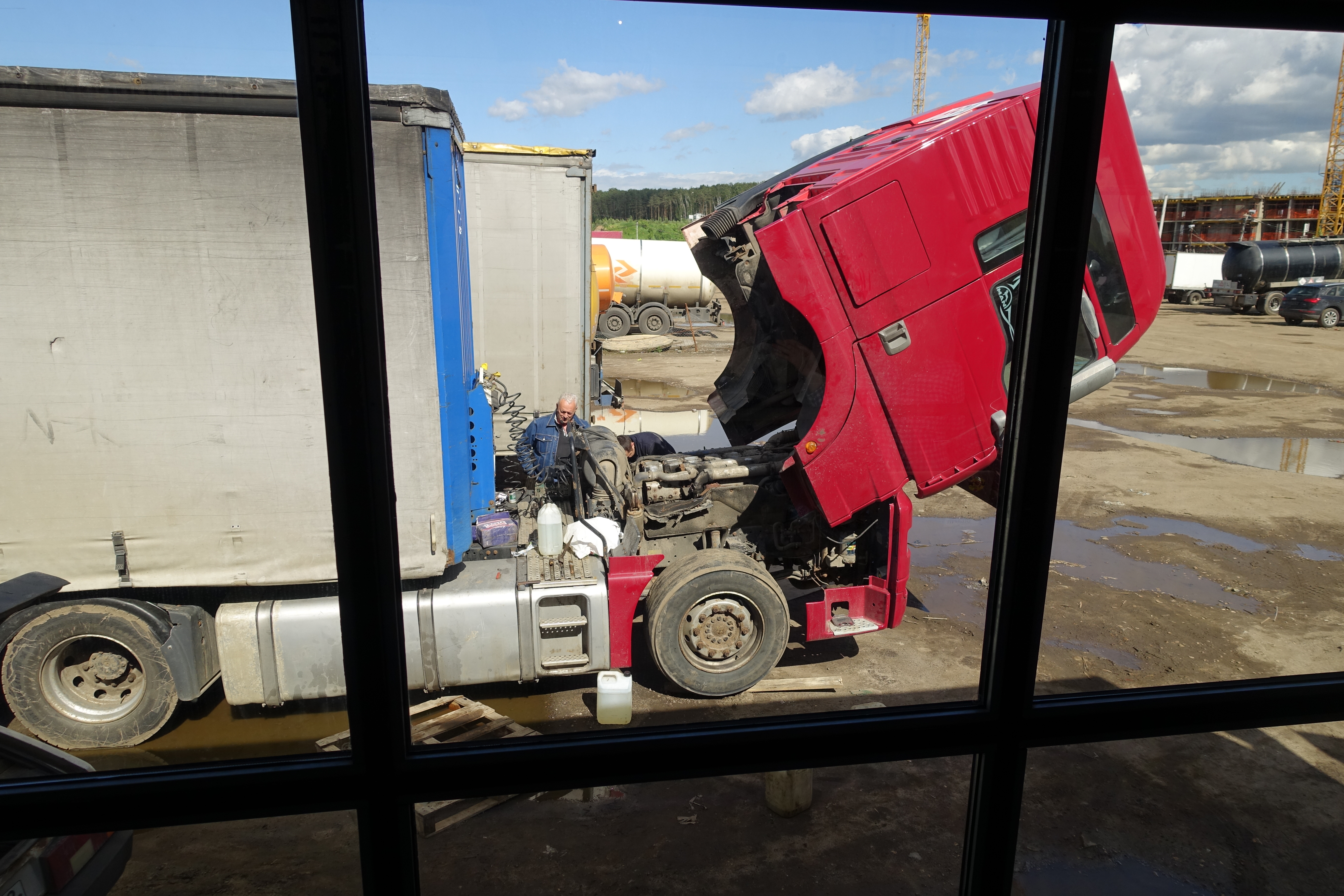 They are sitting 2 meters above street-level and have 500 hp under their right foot. They work and live on less than 6 mobile square meters in front of their 40-ton freight.
