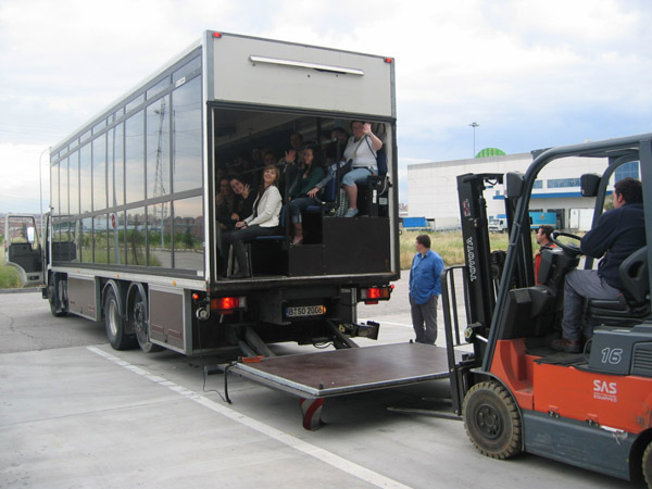 Vor einem Theater oder Festivalzentrum werden 45 Zuschauer geladen und auf eine 2stündige Reise durch vergessene Strecken geschleust: Autobahnraststätten, Verladerampen, Gemüsegrossmarkthallen, Häfen, Grenzposten, Lagerhallen... In diesen Ready-Made-Bühnenbildern des Transits treten die Fernfahrer mit ihren Geschichten auf. Sie erzählen ihre mobilen Biographien und Frachtgeschichten in autobahntypischem Bulgarisch-Englisch-Deutsch via Mikroport – im Dialog mit lokalen Gemüseverkäufern oder Spediteuren, Zollbeamten oder Lageristen.