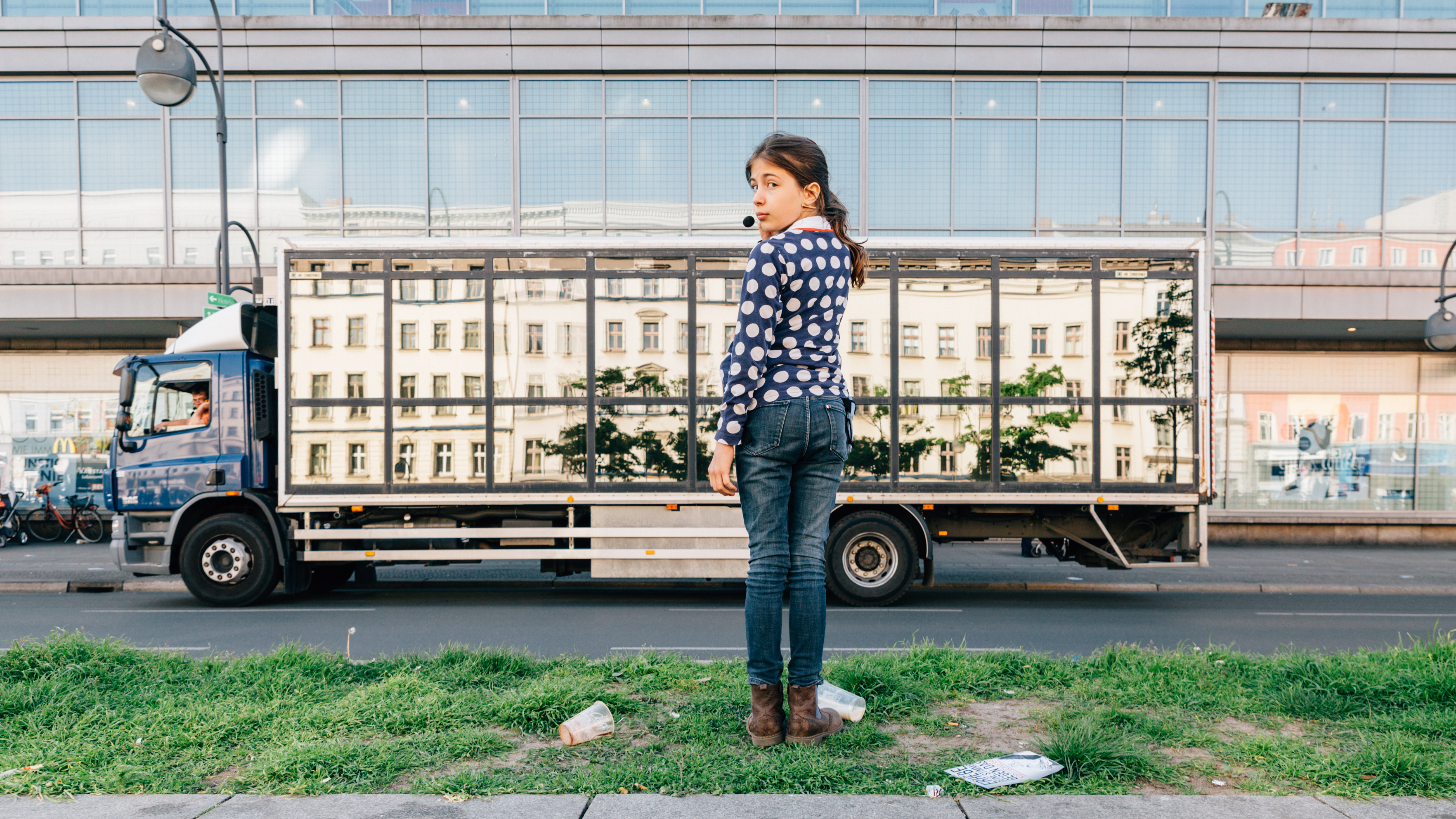 In der Fahrerkabine sitzt neben dem Fahrer ein Kind. Es leitet diesen großstädtischen Laborversuch: nicht spielerisch, niedlich wendet es Gelerntes an, sondern mit der großen Klarsicht, Härte und Konsequenz eines Spiels das eben nach den vorgegebenen Regeln zu ende gespielt werden muss.