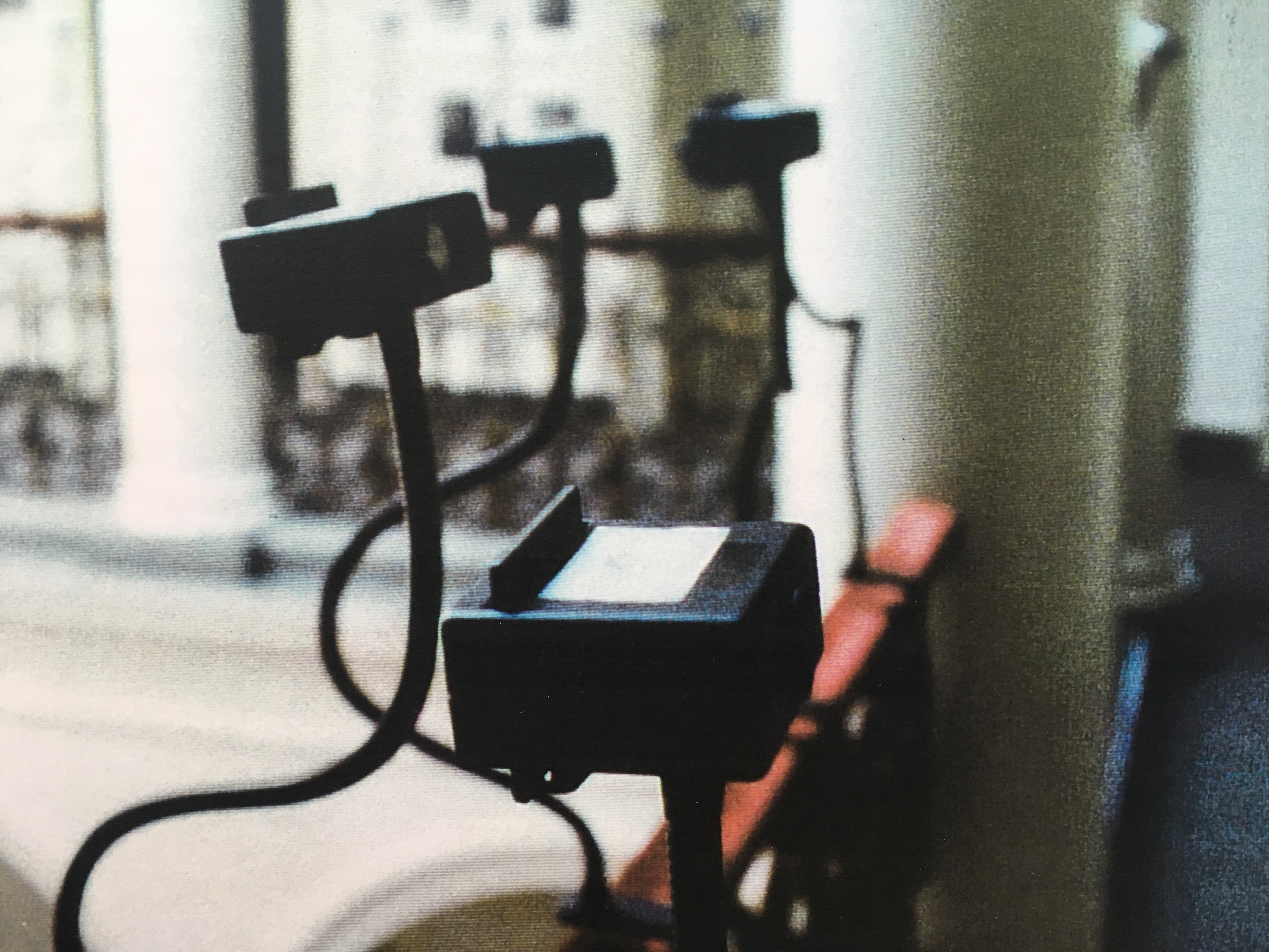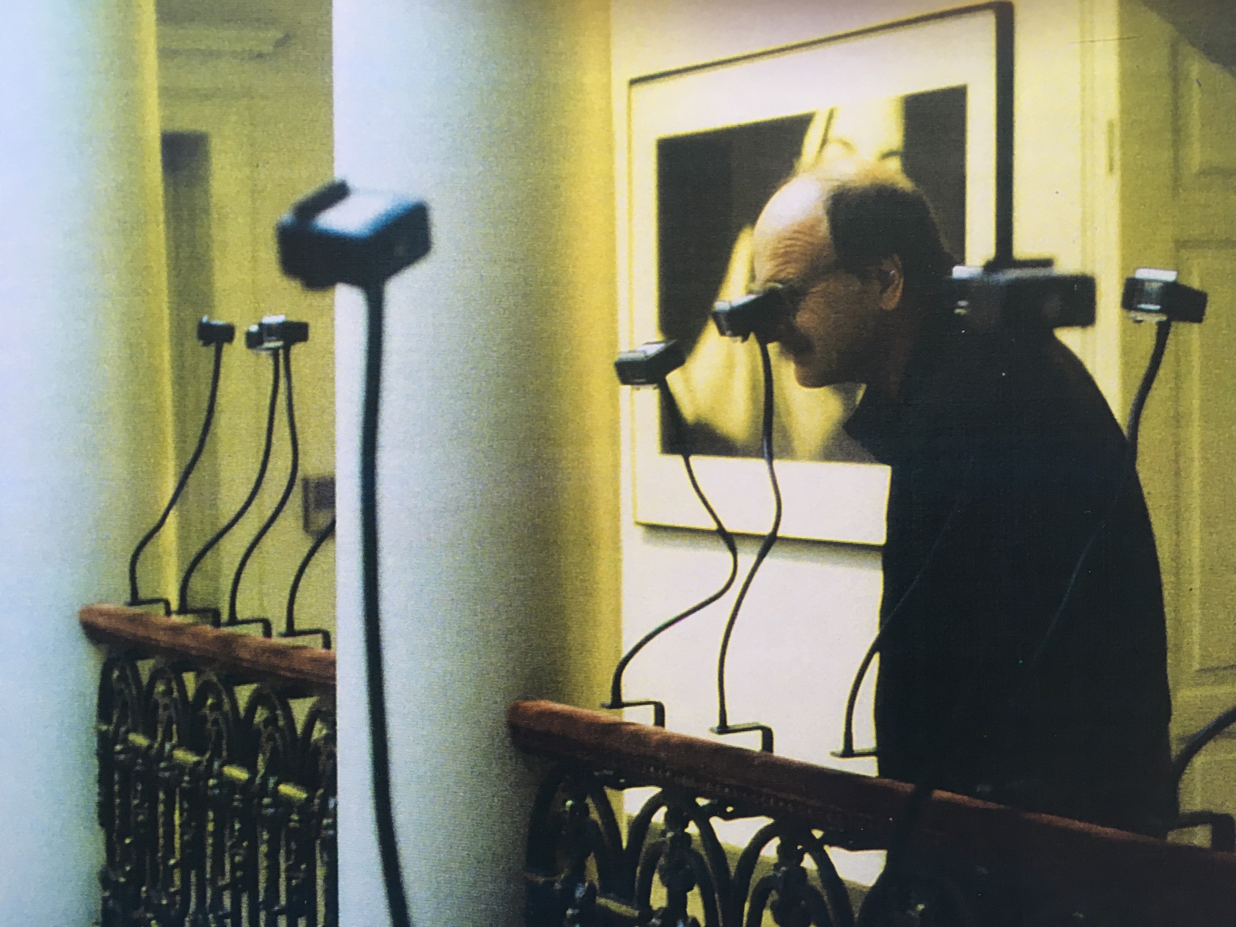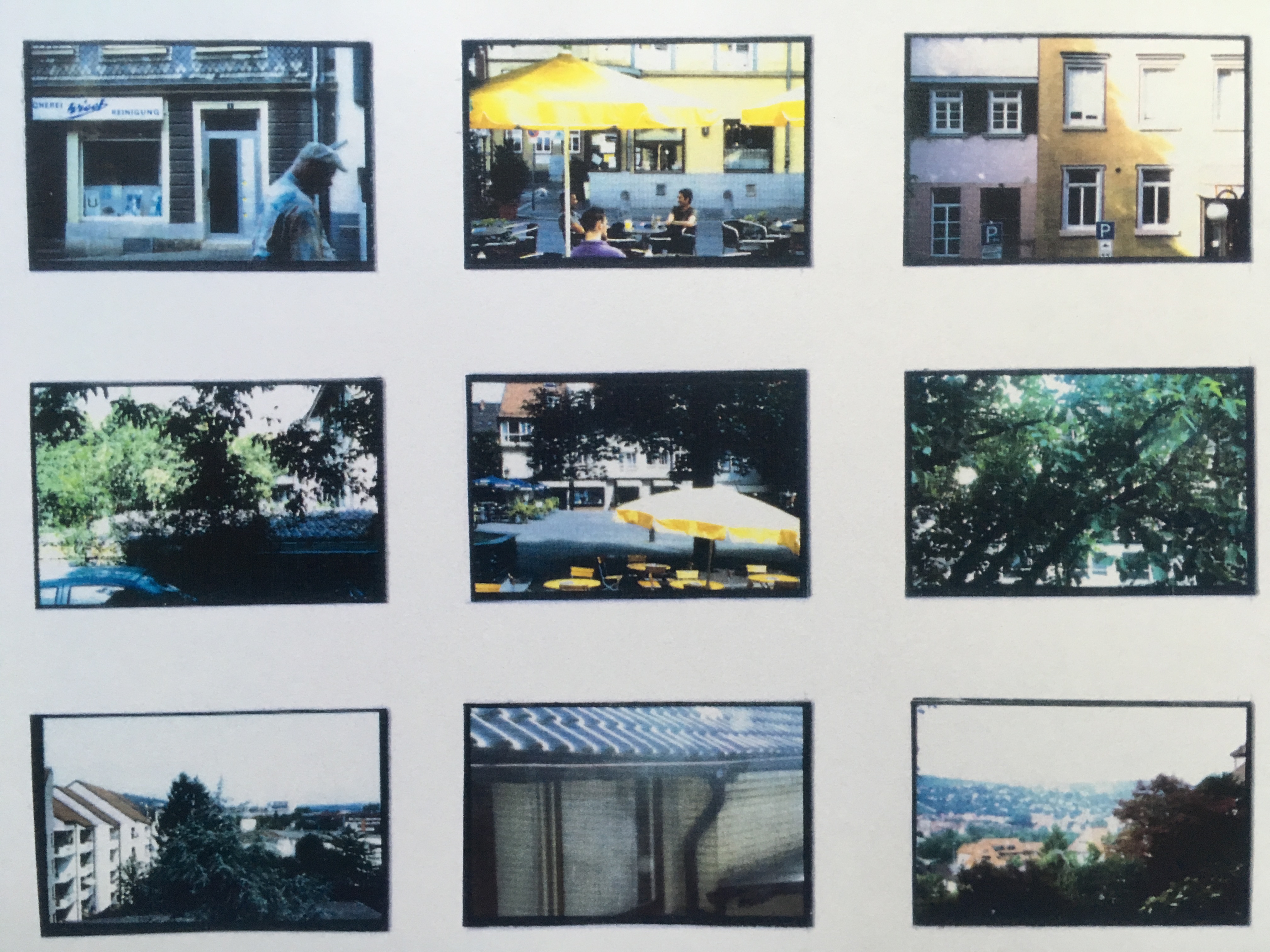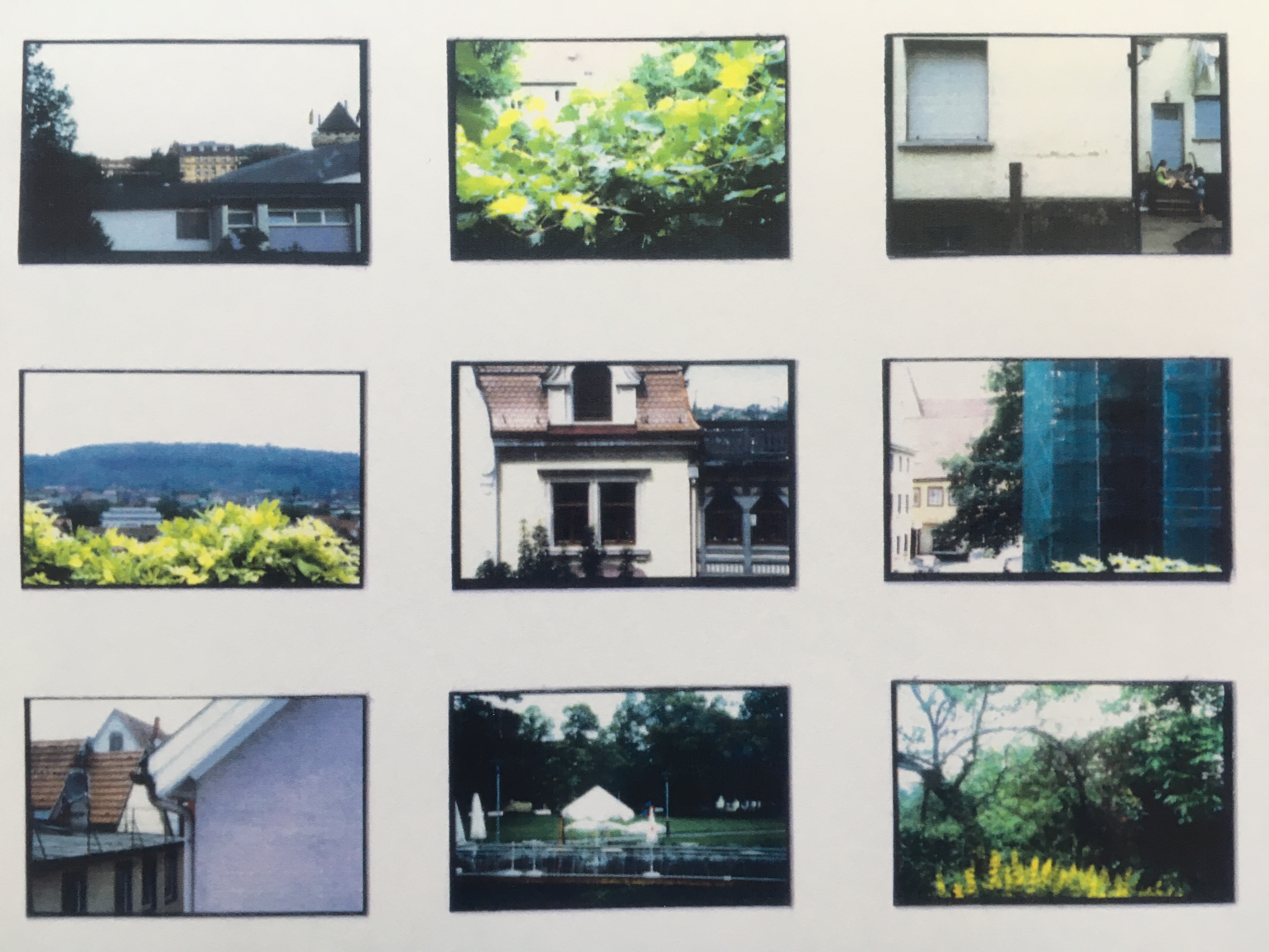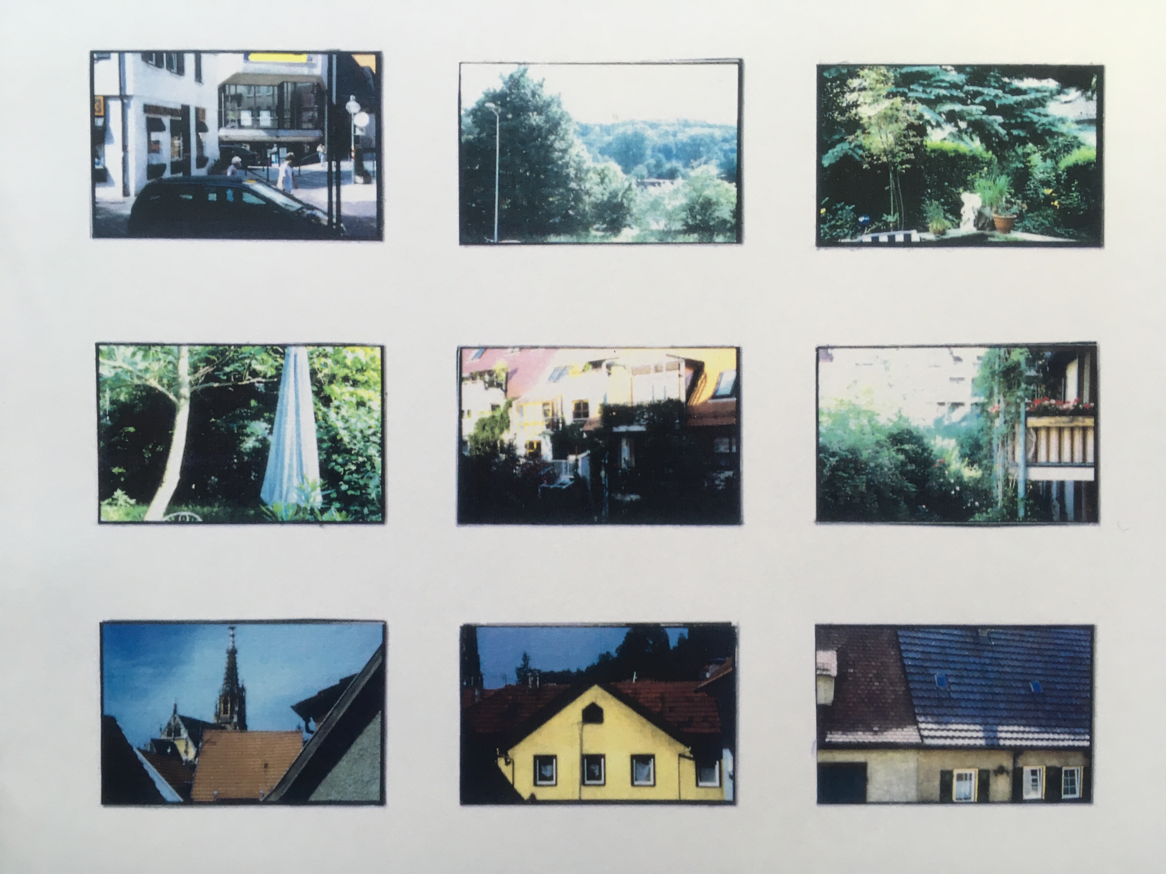 39 Mal lassen sich Haug/Droß/Wetzel zum nächsten Bekannten weiterempfehlen, der ein Fenster bei sich zu Hause empfiehlt, von dem aus ein Dia-Foto gemacht wird. Installation: 40 Blicke aus Esslinger Fenstern, bearbeitet und räumlich ergänzt in Diabetrachtern auf Schwenk-Armen, installiert wie ein Kaiserpanorama.