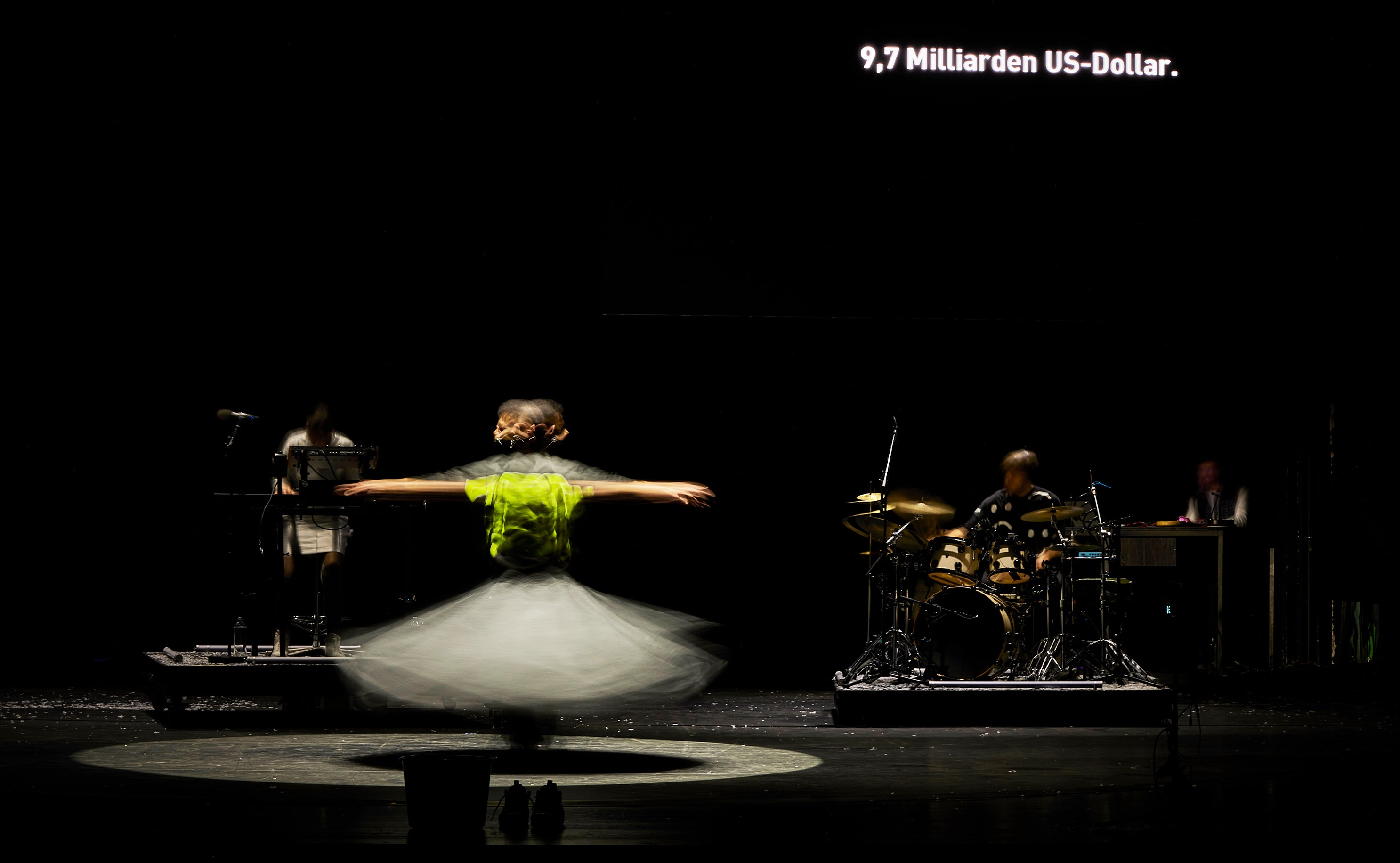 Die Erzählstruktur von EVER GIVEN ist ein Experiment: Diese Revue wird nicht mit einem eindeutigen Anfang und klarem Ende erzählt, sondern zirkulär. Es ist keine Linie - es ist ein Kreis. Nach einem Prolog fädelt sich das Stück in diesen ‘loop’ ein und kommt wieder am Anfang an. Der kommende Abend fädelt sich in die nachfolgende Szene ein. Der anschließende Abend in die, die danach kommt. Wir steigen einfach ein. Ins Karussell. Jeder Abend fädelt sich neu ein - an einer anderen Stelle. Alle Abfolgen müssen so angelegt sein, dass sie in sich selbst wiederholbar sind. Alles dreht sich im Kreis und nach dem Ende geht es einfach weiter?