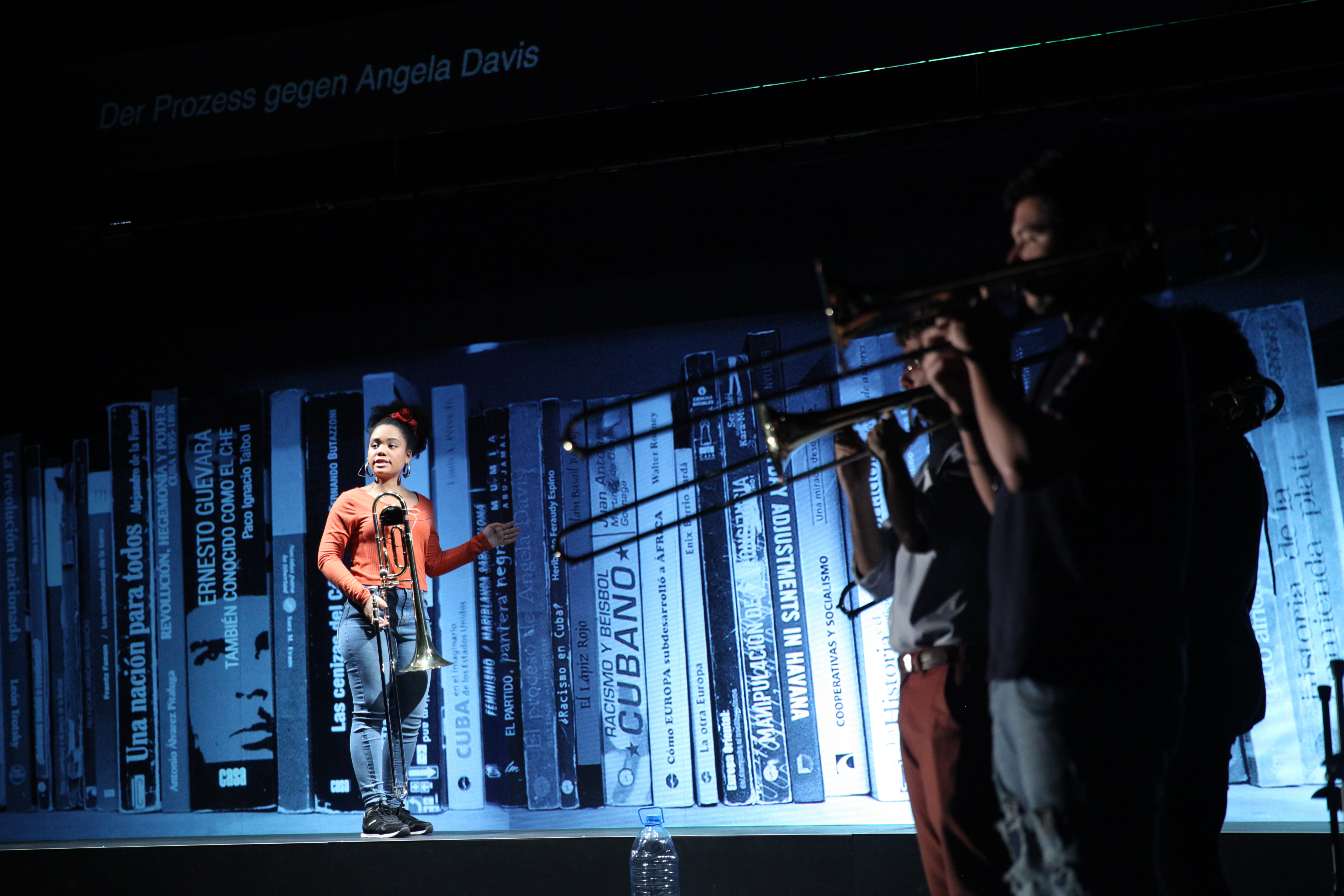 In Granma. Posaunen aus Havanna begehen diese jungen Kubaner*innen mit der 31-jährigen Musikerin Diana, deren Großvater das „Orquesta Maravillas de Florida“ gründete eine Zeitreise über mehrere Generationen und verflechten ihre Familiengeschichten mit den gesellschaftspolitischen Fragen einer Gegenwart, in der sich Kuba verändert. Gemeinsam mit dem Komponisten Ari Benjamin Meyers und vier Posaunen üben sie sich zudem in musikalisch-revolutionärer Praxis: gemeinsam etwas lernen, von dem man vorher nicht dachte, dass es möglich ist.