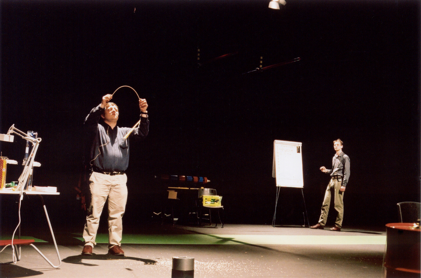 Zwei Wiener Schauspieler vertreten Wissenschaftler und stellen ihre undarstellbaren Experimente nach. Zwischen Geräten – deren Bedienungsanleitung ihnen erklärt wurde, deren genaues Wirken sie aber nicht kennen – beobachten sich die beiden beim Beobachtet werden. Jeder Zuschauer verfälscht das Resultat. Die Bühne ist das Laboratorium, die Performance das Experiment.