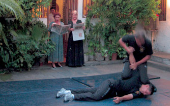 3 ehemalige Opernsänger erklären, dass die Gefühle, die sie singen, nicht die Gefühle sind, die sie beim Singen haben können. Weil das Opernhaus für die Großveranstaltungen von Hugo Chavez genutzt wird und Oper nicht mehr finanziert wird, singen sie Texte aus den Zeitungen des Tages auf italienische Arien und Duette. Junge Polizisten der Bezirkspolizei Chacao führen dazu im Kampftraining vor, dass sie selbst bei großen Schmerzen und Stress-Situationen keine Gefühle zeigen und den Gegner mit objektiv wirkenden Gegenschlägen stillstellen sollen.