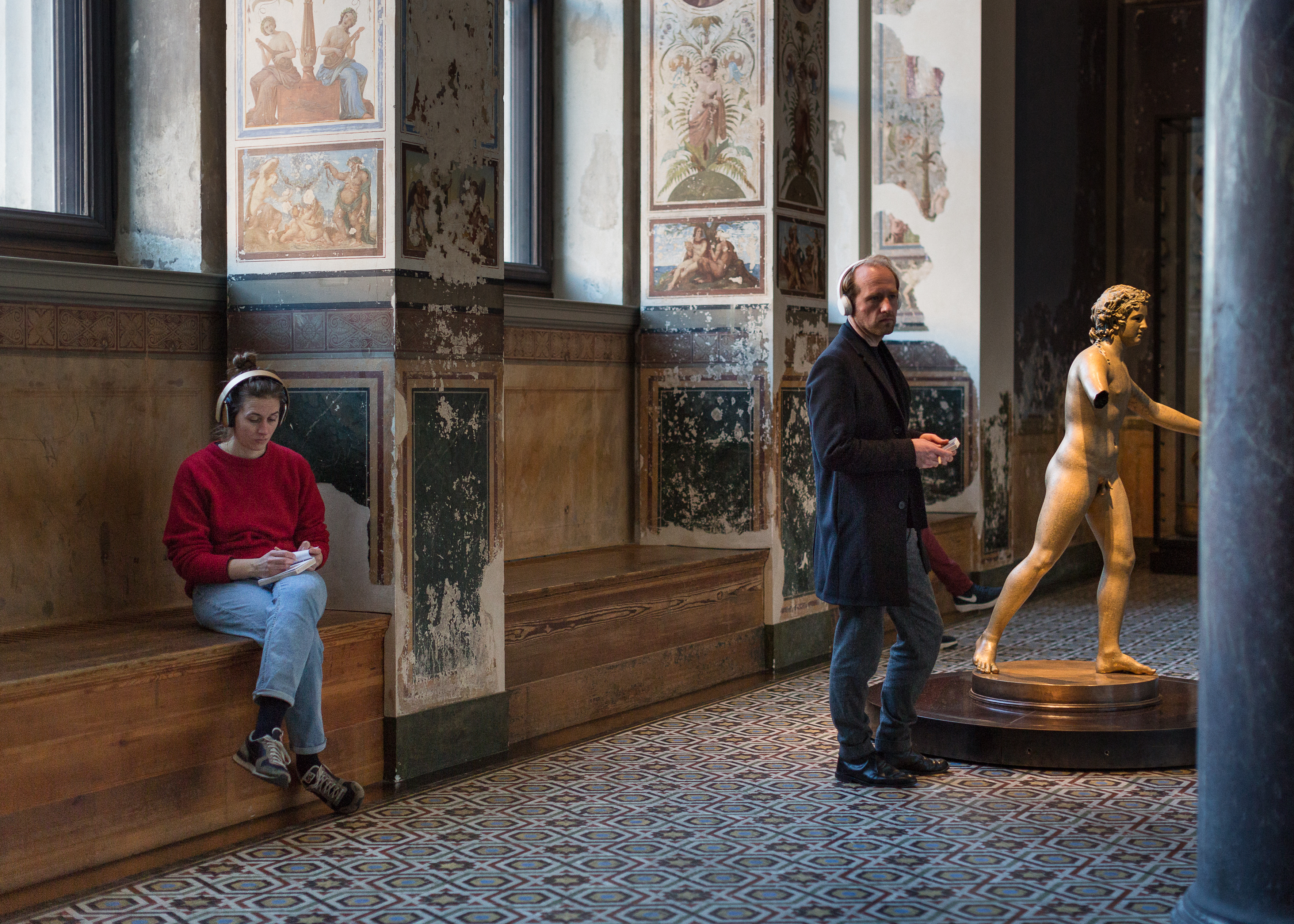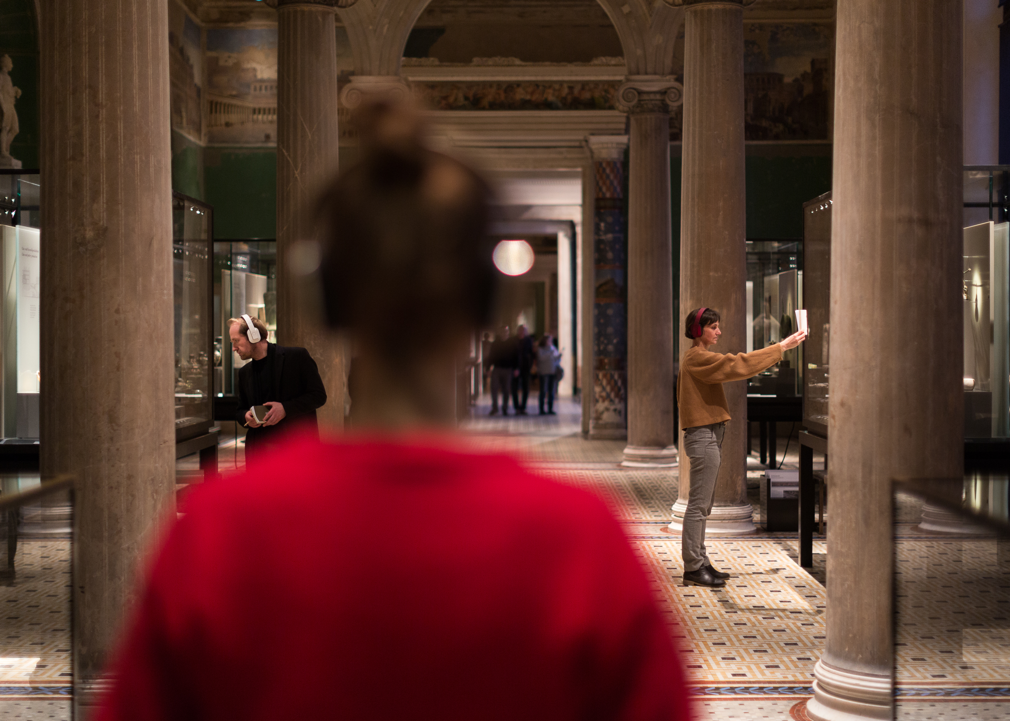In Zeiten globaler Überwachungsaffären, vermeintlicher No-Spy-Abkommen und immer zahlreicher werdender Whistleblower-Plattformen begeben sich Rimini Protokoll mit Top Secret International (Staat 1) mitten hinein in das globale Netz der Staatsgeheimnisse und Geheimdienste – den Staat im Staat. Im ersten Teil der Tetralogie, die sich über zwei Jahre hinweg mit Phänomenen der Postdemokratie befasst, lässt ein Algorithmus das Publikum selbst zu unauffällig Agierenden werden: als Journalist*in belauschen die Besucher*innen Ermittlungen fremder Geheimdienste, versetzen sich in die Lage eines Whistleblowers oder werden mit einer Legende ausgestattet. Zwischen den Skulpturen eines Museums sind sie kaum von anderen Museumsbesucher*innen zu unterscheiden. Mit subtilen Gesten, gezielten Bewegungen greifen sie auf Dateien und Archive zu, die sich nach und nach öffnen: Lebensgeschichten aus Politik, Journalismus und Spionage, global agierende Geheimnisträger*innen und Aktivist*innen stecken das Spielfeld ab. Die Besucher*innen beobachten und verfolgen einander, nehmen Kontakt auf, bilden Koalitionen oder entziehen sich der Verbindung.