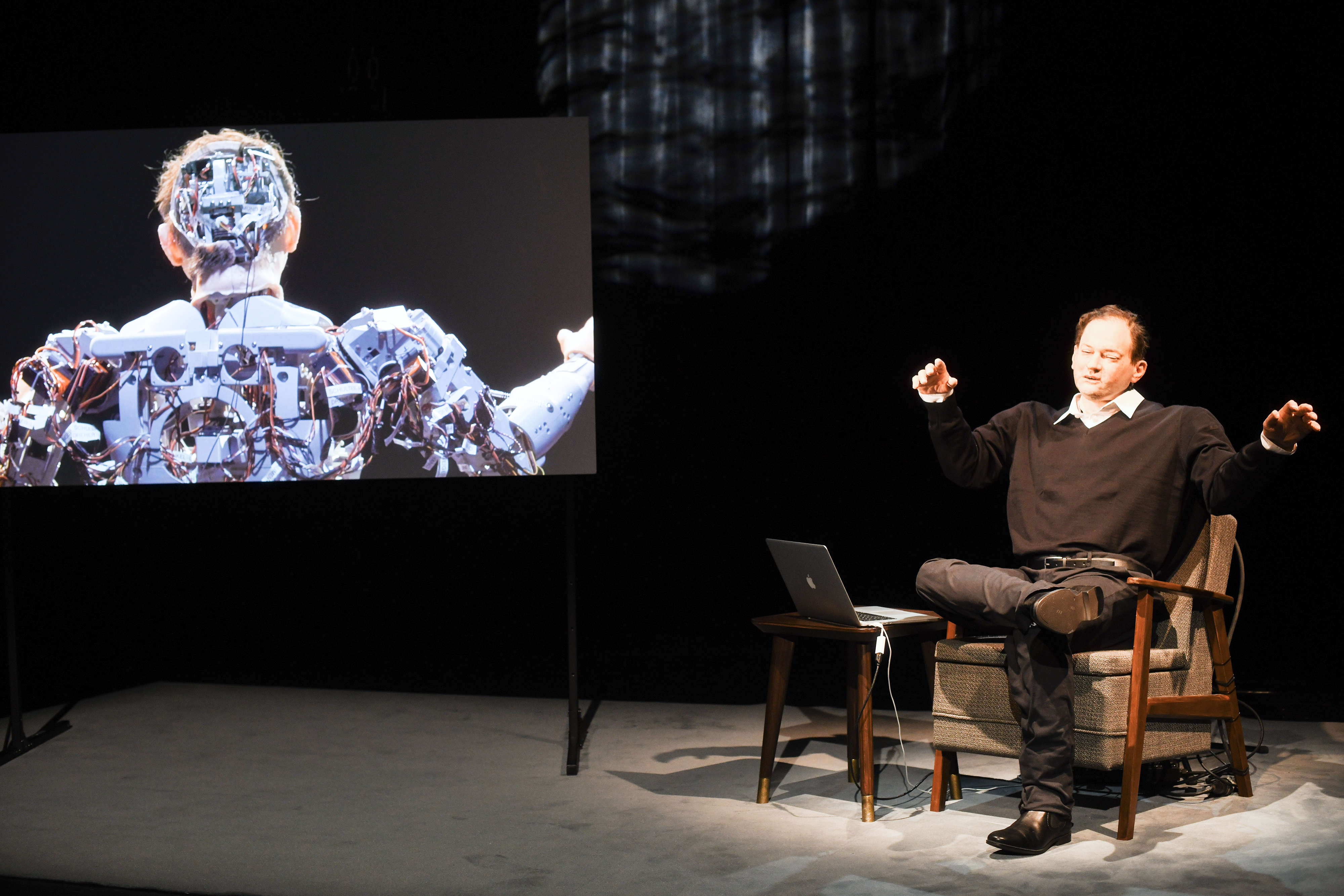 Auf diese Weise wird die Maschine zur Projektionsfläche für eine Zukunft, in der das menschliche Original irgendwann nicht mehr auszumachen ist. Ein solcher Humanoide ist kein industrieller Arbeiter, sondern eine Bezugsperson, wie wir ihr womöglich selbst bald im Altersheim begegnen. Der Autor Thomas Melle wird bei Rimini Protokoll zum Schöpfer seines Ebenbildes. Er gibt die Kontrolle an einen Doppelgänger ab, der ihn verdrängt, über das wechselseitige Verhältnis reflektiert und dieses Nachdenken als vielfach gespaltenen Vorgang Abend für Abend wiederholbar macht.