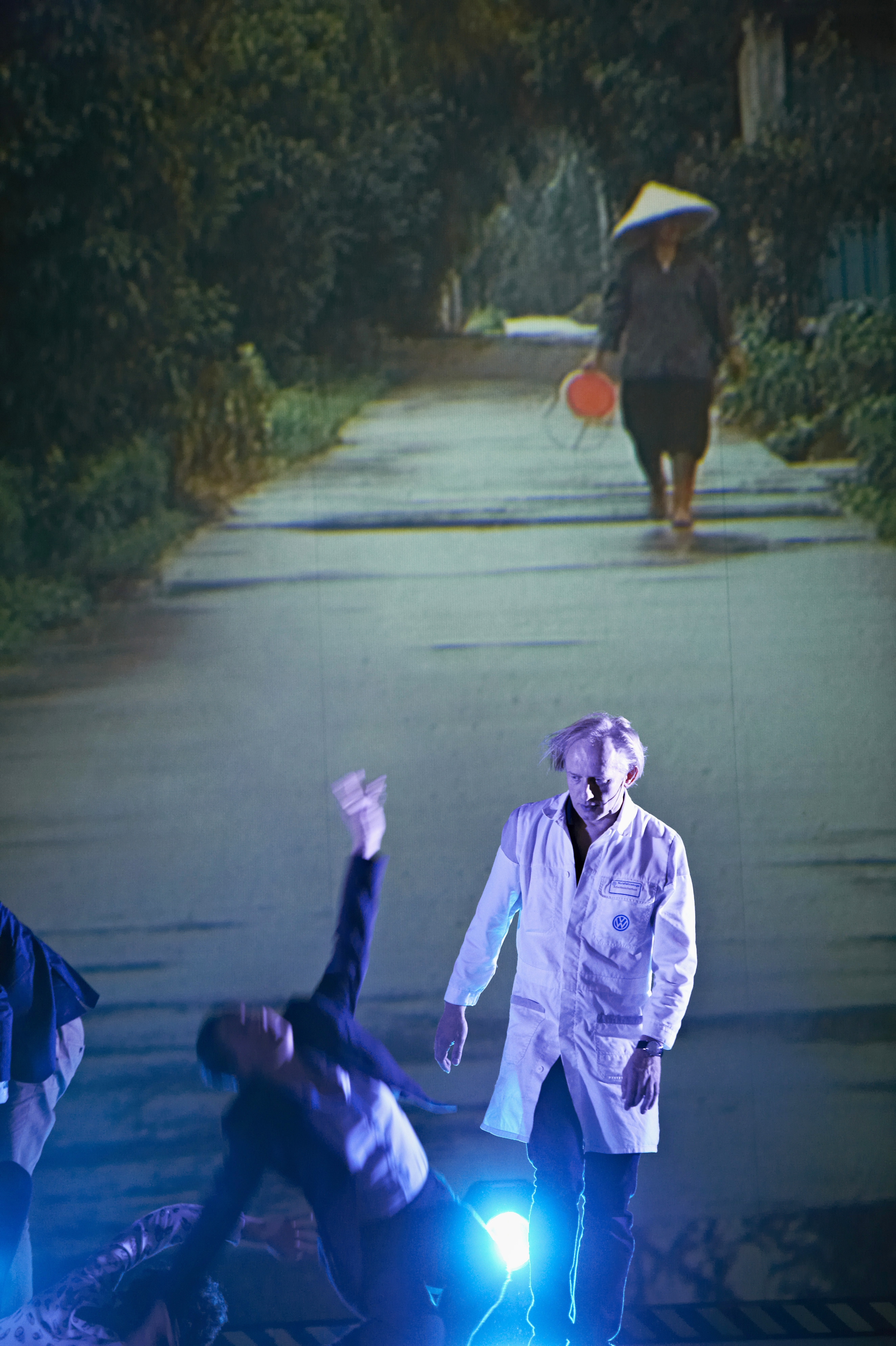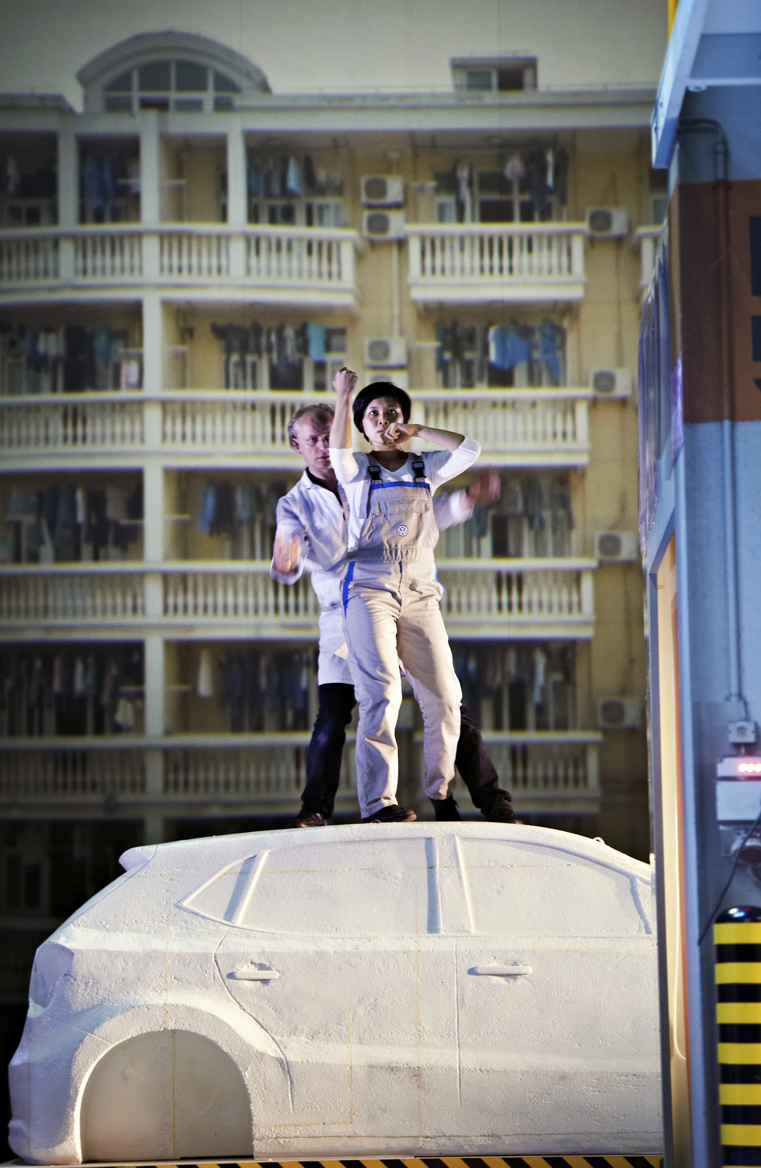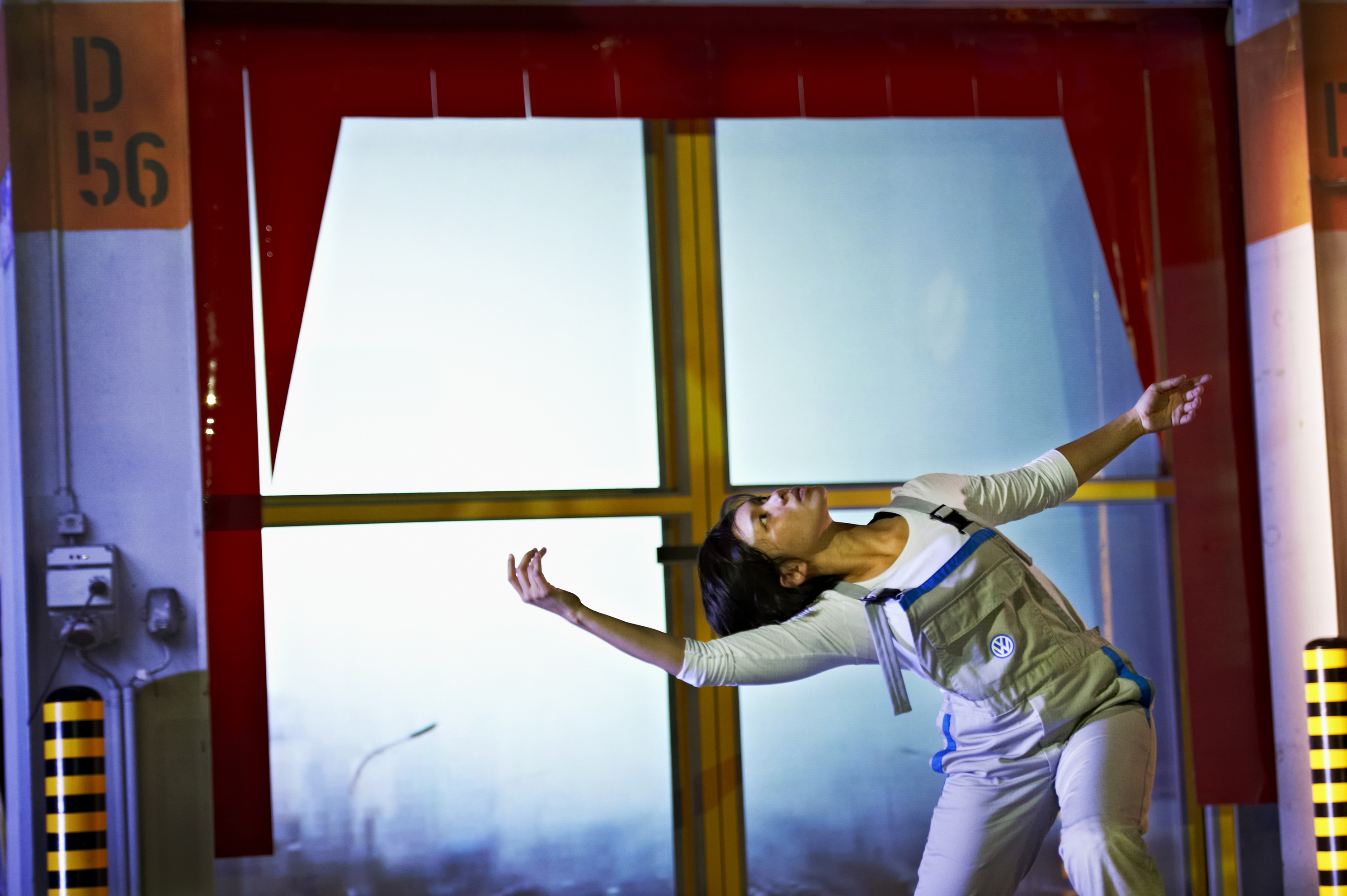 Auf der Bühne werden die Briefe der Ingenieure zu Kamerafahrten durch die exponentiell wachsenden Metropolen, zu Karaoke-Liedern für Arbeiter und Kung-Fu übungen für Expats. Private Fährten durch ein Land, das nirgends so viel Angst auslöst wie in Deutschland. Das Land der Raubkopien wird auf die Bühne kopiert. Das Auto wird zur Erzählmaschine eines Road-movies, der Geschichten von Kontinent zu Kontinent transportiert.