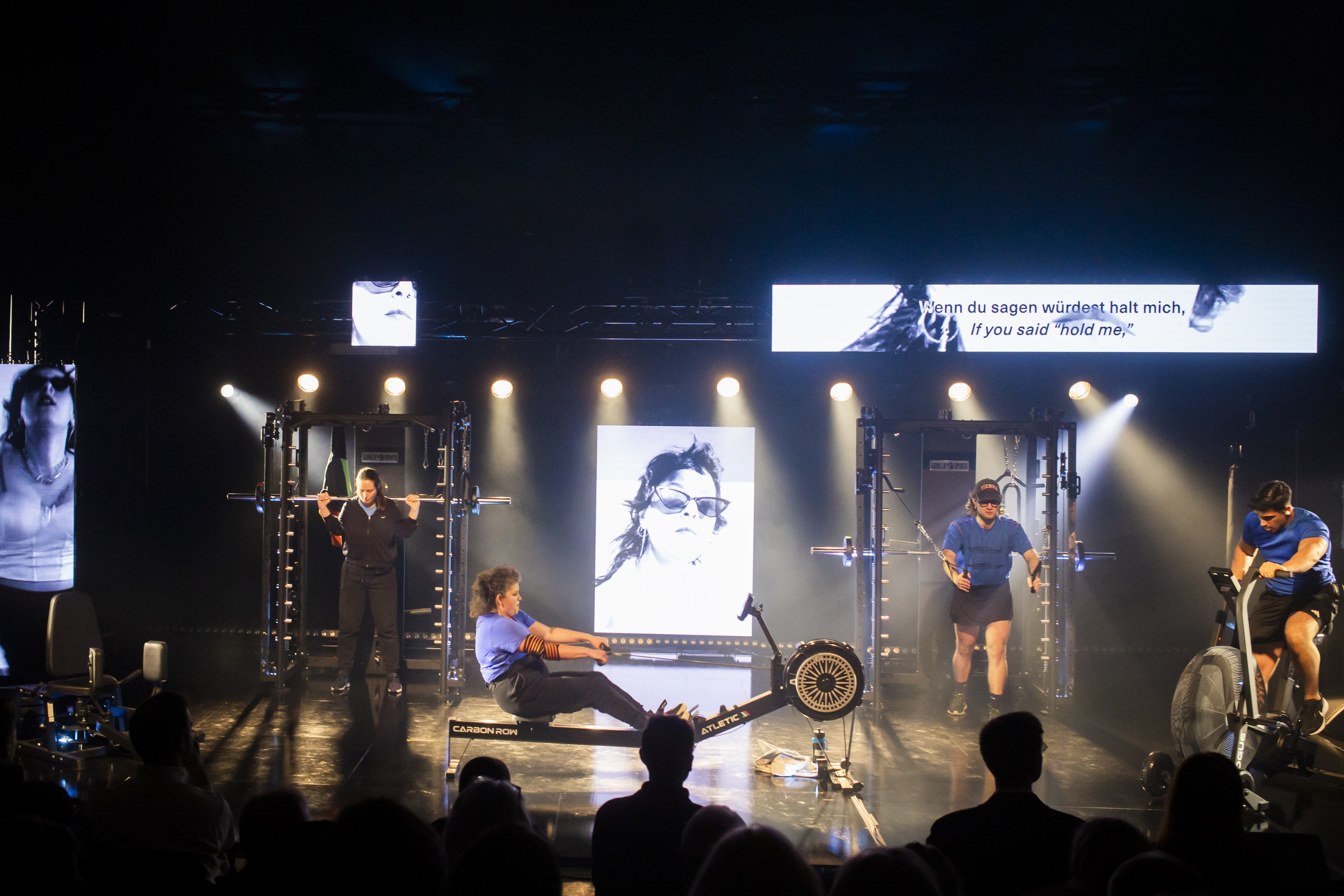 Wer komponiert? Wer spielt? Worauf? In SWEAT stellen Rimini Protokoll diese Fragen auf humorvolle Weise neu. Fitnessgeräte - entnommen aus den Welten der körperlichen Selbstoptimierung…
