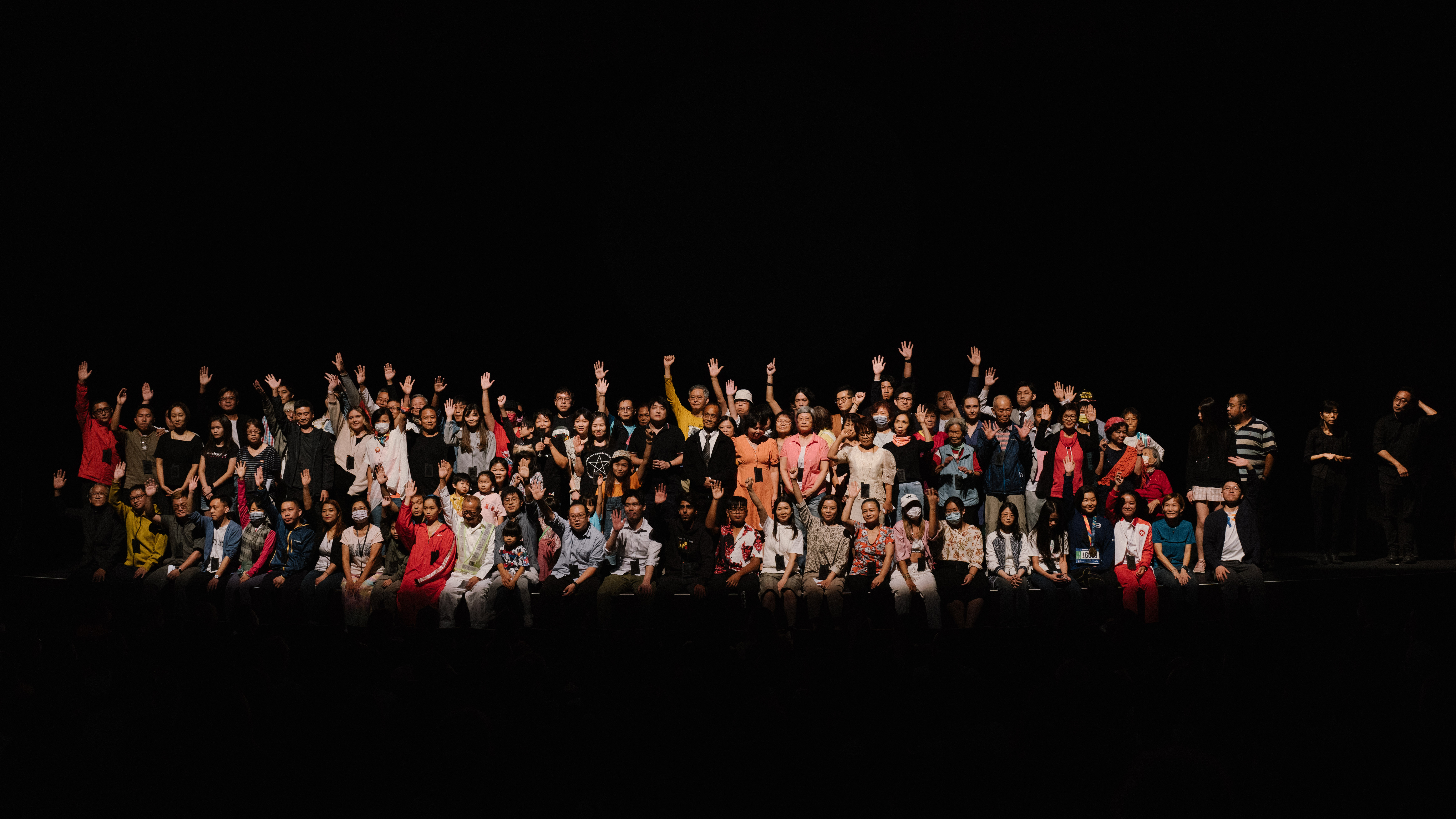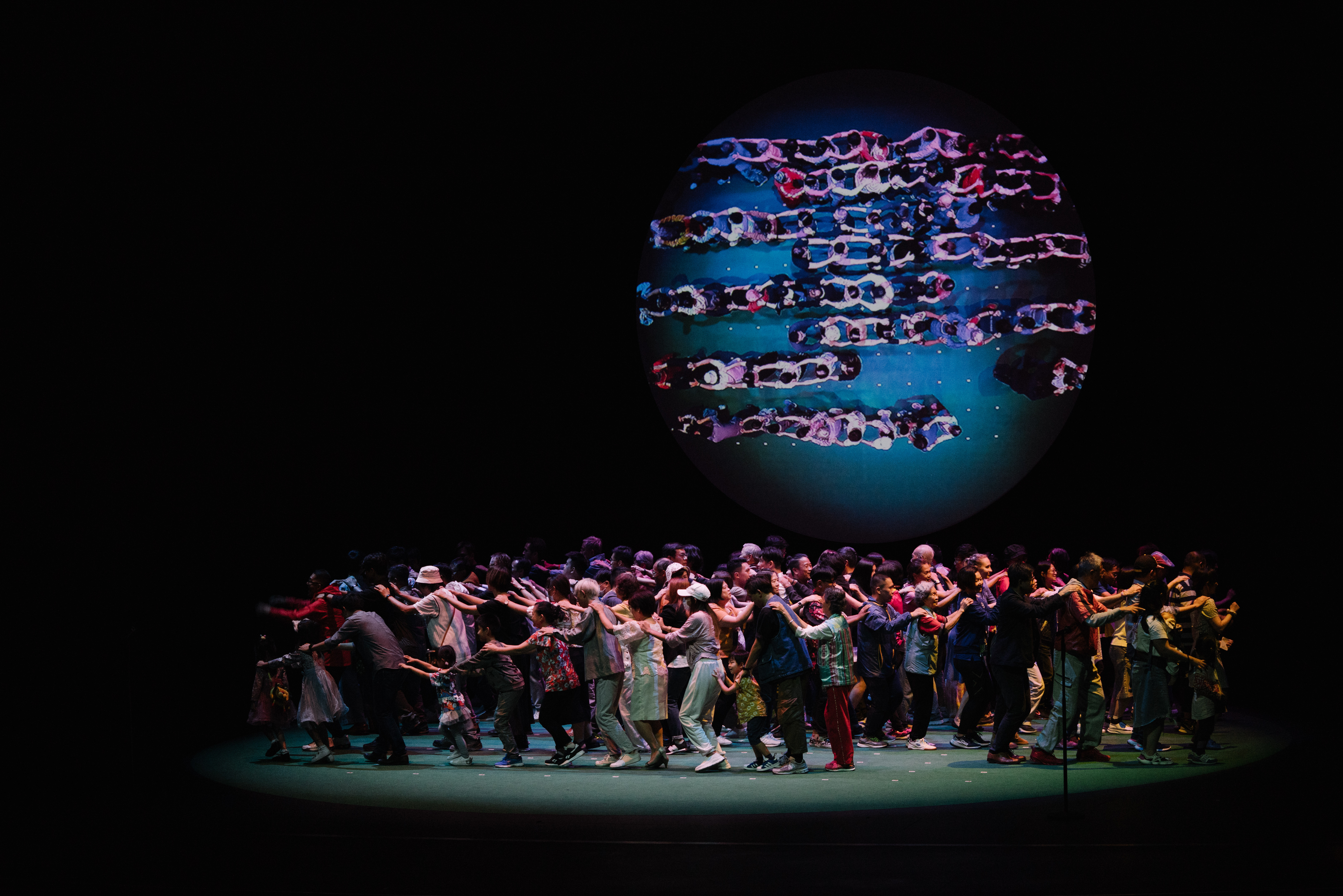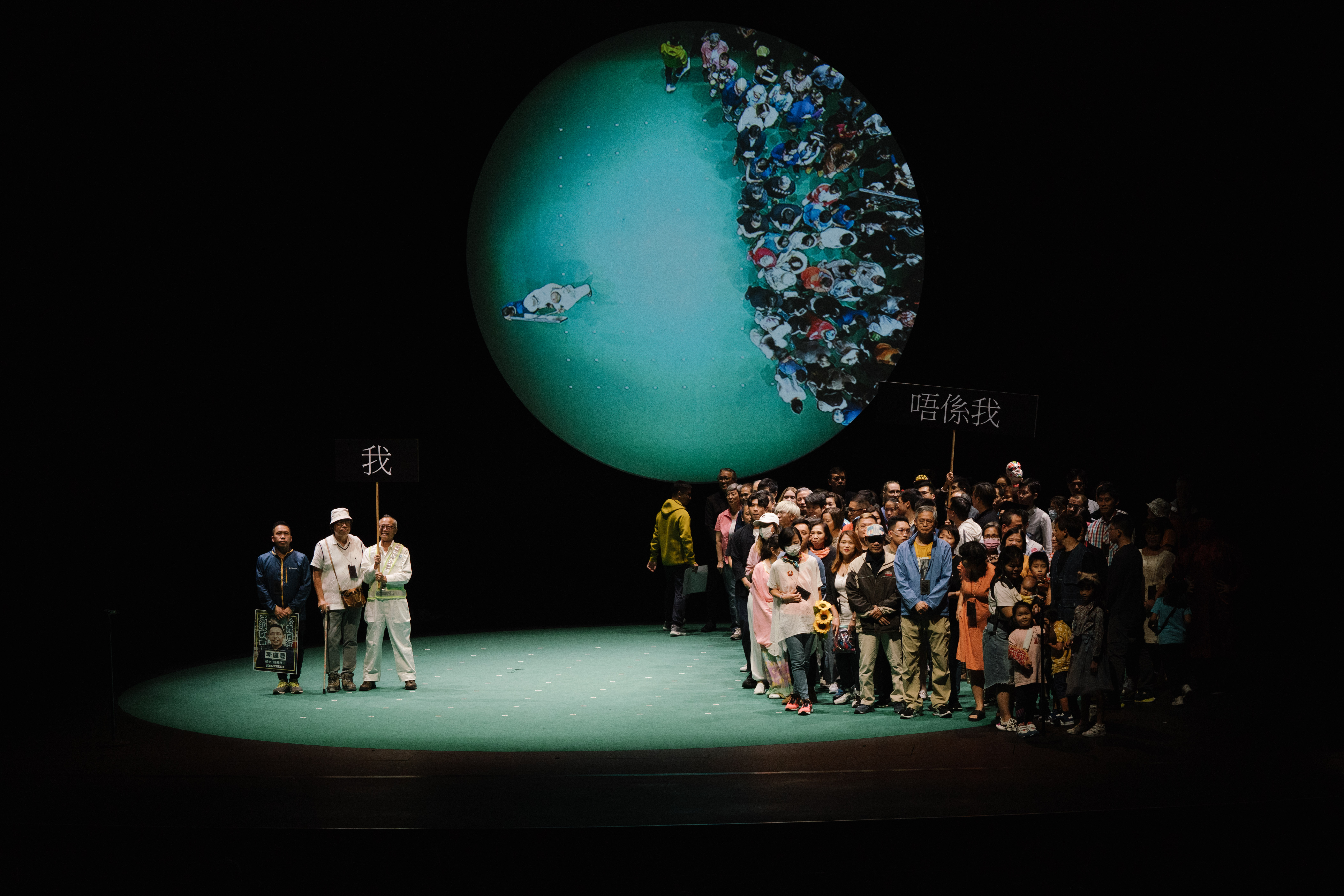 One hundred Hong Kong citizens, chosen to reflect the demographics of the city, come together in the Grand Theatre at the Xiqu Centre.