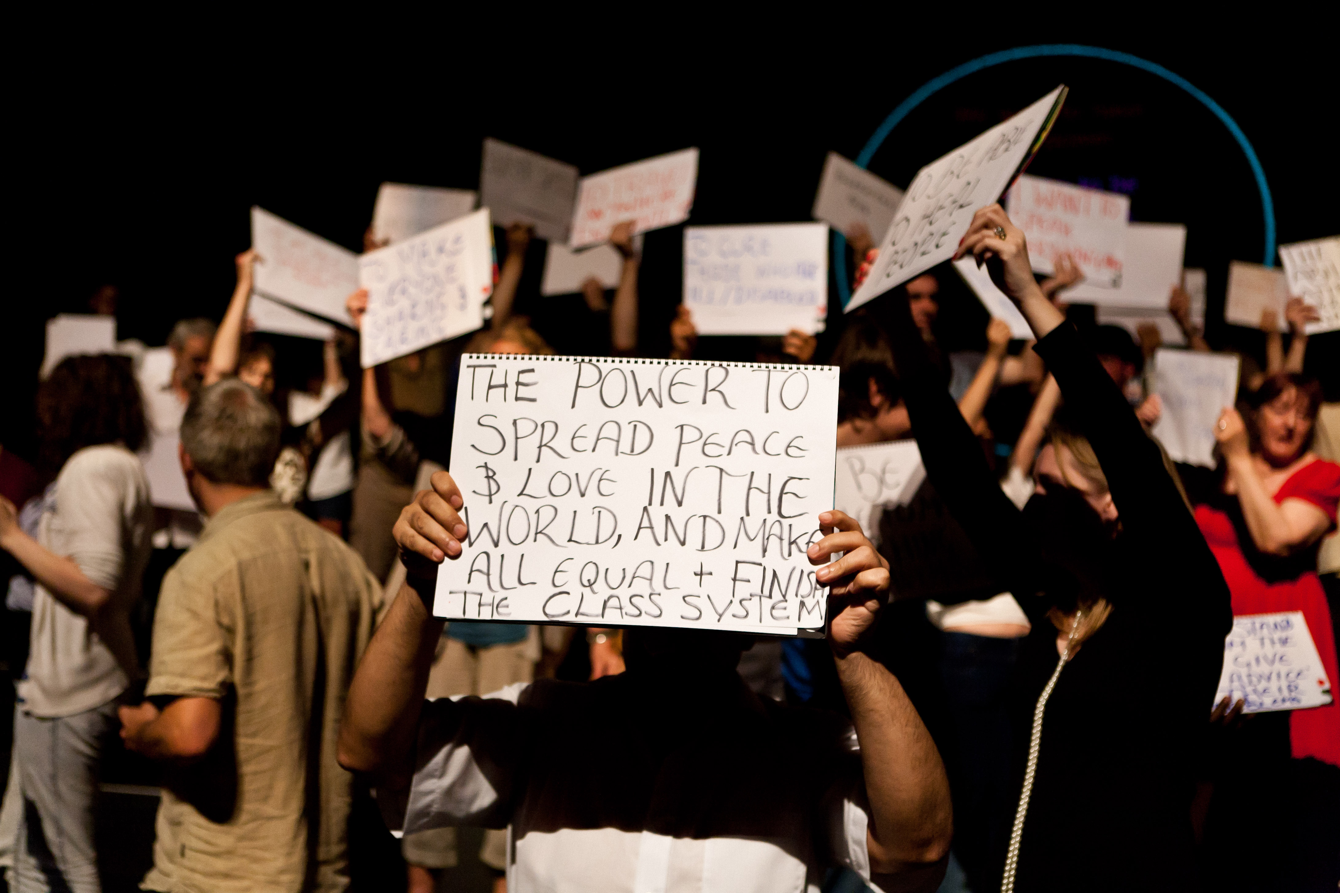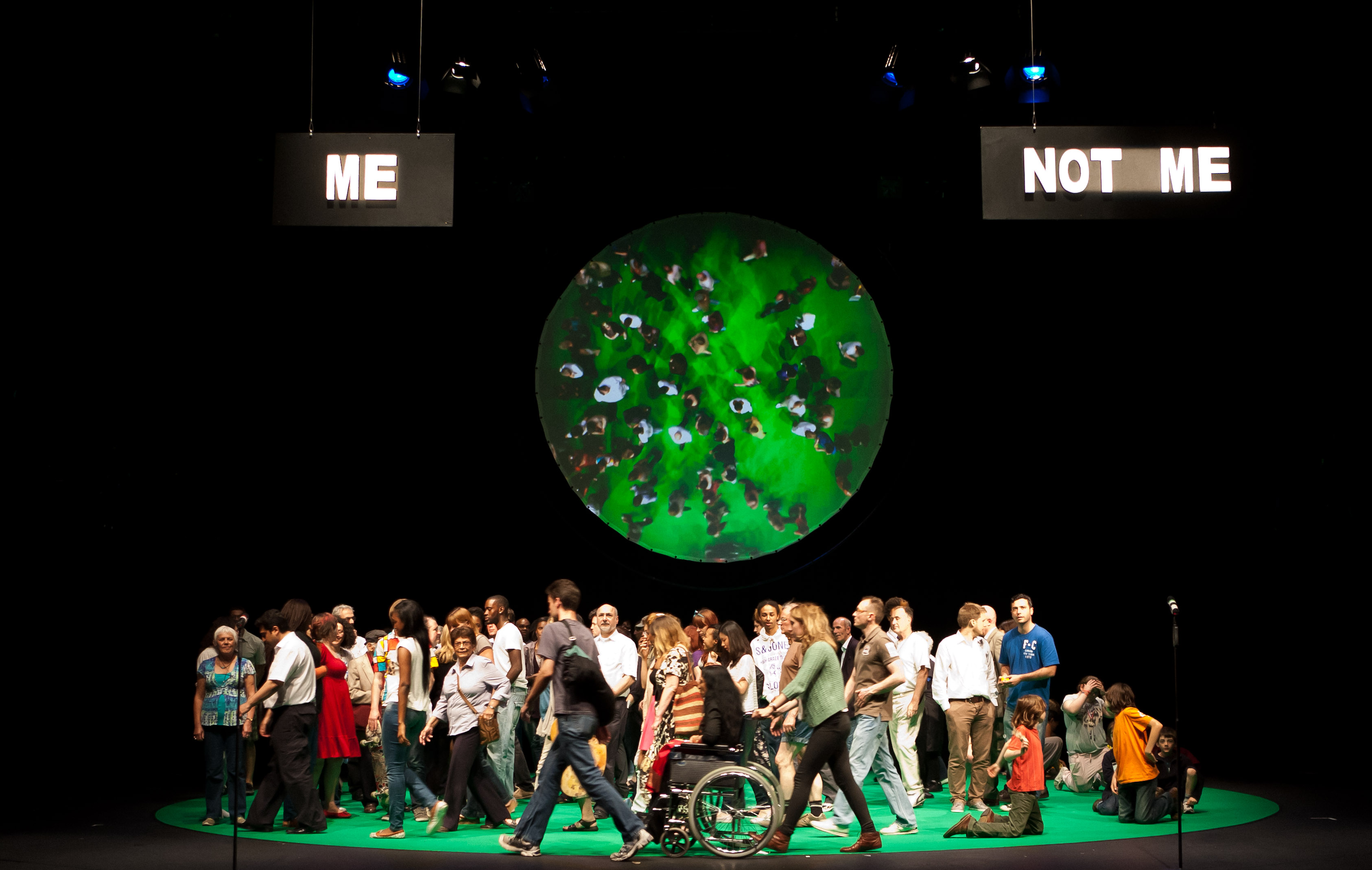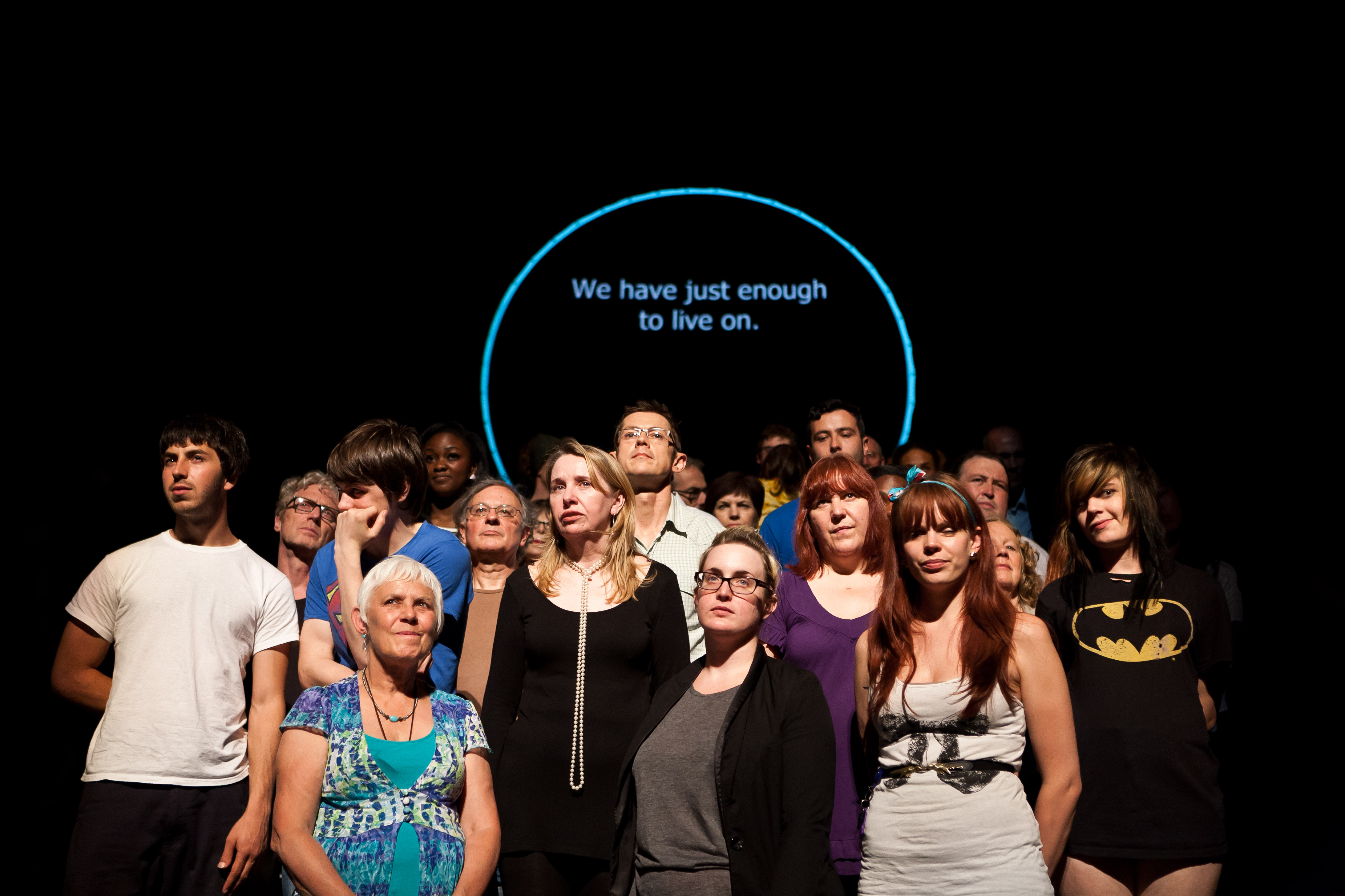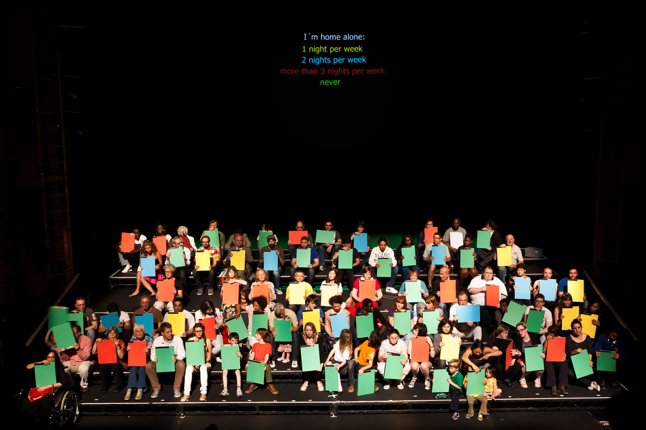 100 people representing a cross section of London’s 7.8 million population are brought together to tell their stories on stage. In this fascinating and unique performance, Rimini Protokoll is creating a living, breathing portrait of London that is far from average.