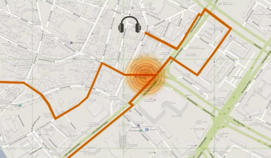 On a website, 100 "acoustic bubbles" are shown scattered across a map of Berlin’s Mitte district. Listeners and walkers experience the city as an audible and highly-subjective archive. Moving alone or in groups, visitors on foot and online have to get to grips with the role of the surveillance authority in a search for the audio portals to the city below the city.