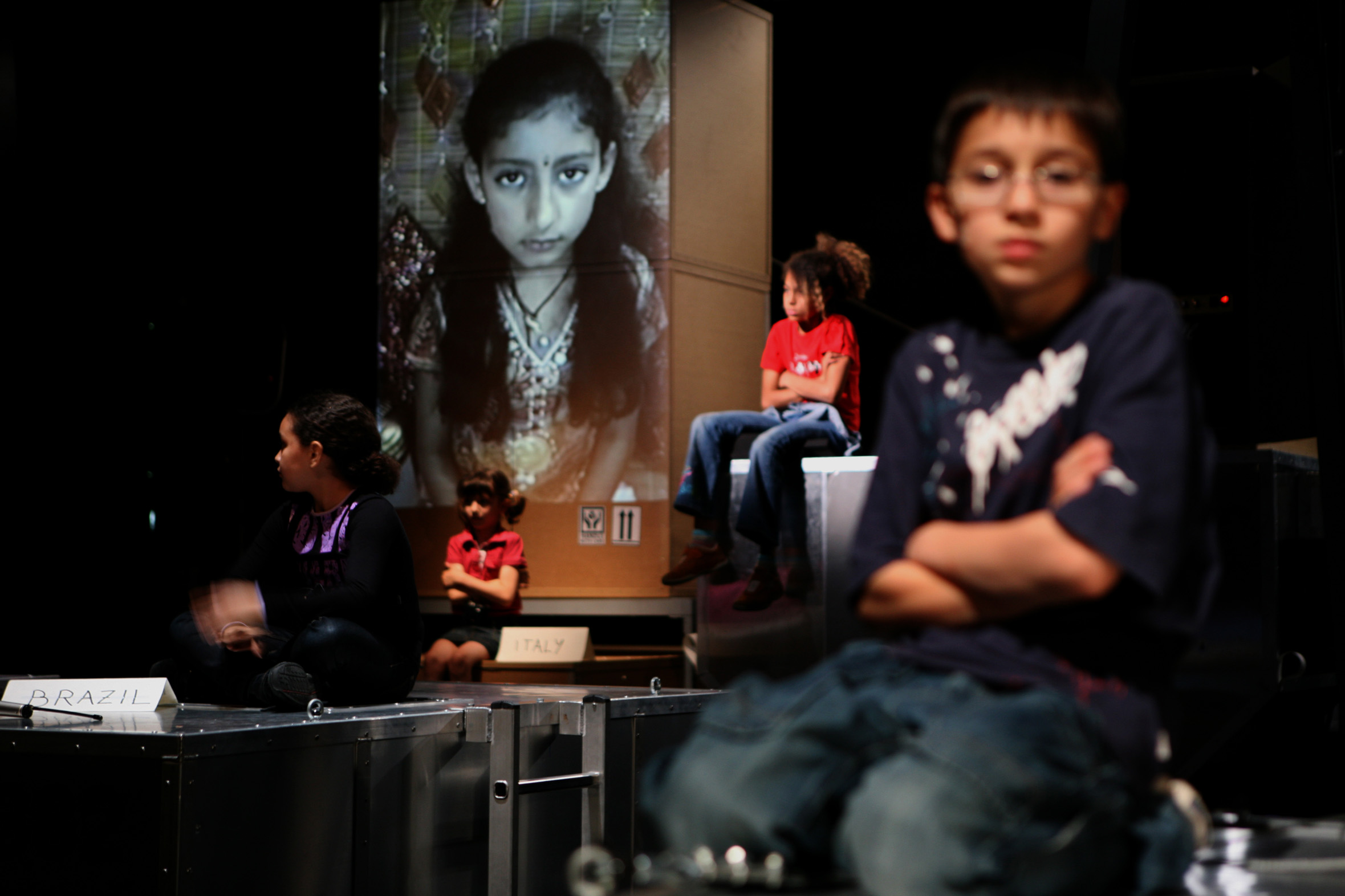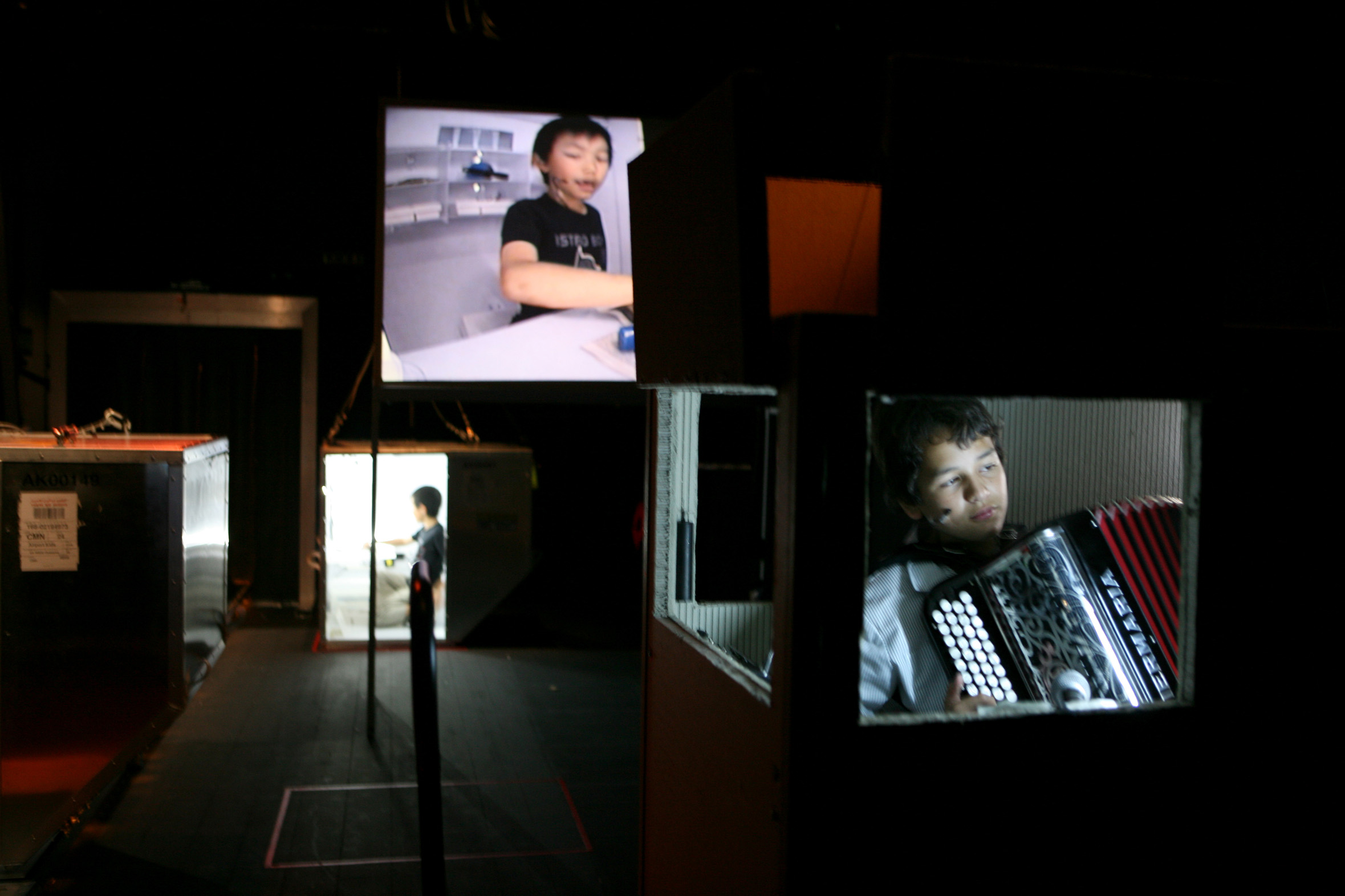 In summer 2007 international children from 7 to 13 years old started working with Lola Arias and Stefan Kaegi on the idea of such a “third culture”, inventing answers like fiction. First characters and texts were developed. Short plays of their own biographies in some dozens of air transport boxes to be used as transportable houses, forests, drum-machines, offices. The boxes are connected by skype-alike camera systems. Sometimes piled up to form the different layers of a city or a stage for a rock band. Sometimes the boxes stay out alone in transit.