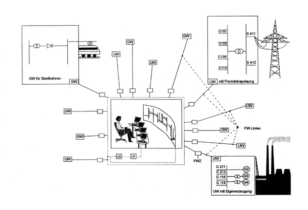 In the network control center of the city of Frankfurt / M. all the threads of the urban electricity grid come together. The visitors of the piece "When do Wurst and Schumacher turn on the light?" will be taken there by bus from Künstlerhaus Mousonturm and will take their place behind the huge window of the visitor gallery, which has never before been open to the public. Equipped with headphones and a receiver, the visitors listen to the explanations of the engineers. The dramatic highlight of the evening is the moment when the street lights of the whole city are switched on at the push of a button.