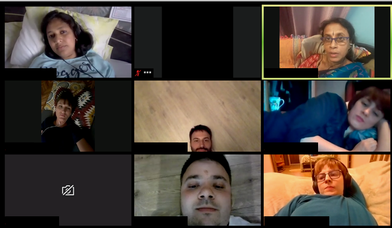 During the 70-minutes-performance they show their homes, talk about the economical and personal implications of their work in the Call Centres, the limitations of everyday life due to Covid-19 and gradually involve the visitors - to the extend they appreciate - into this gathering: open for what they are happy to share about where they are. An intercontinental cup of tea - and round of dance, and round of thoughts that also looks into our individual futures.