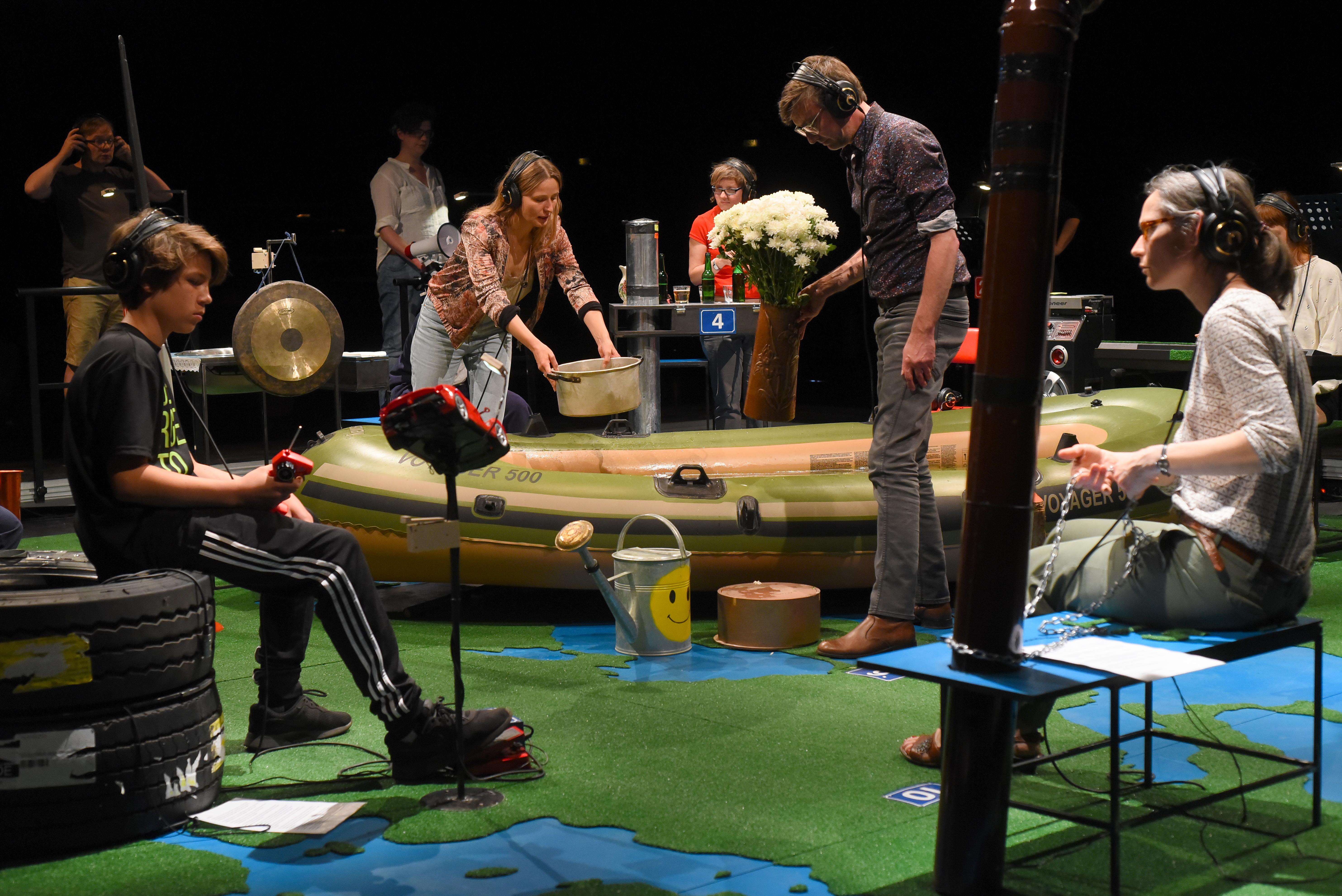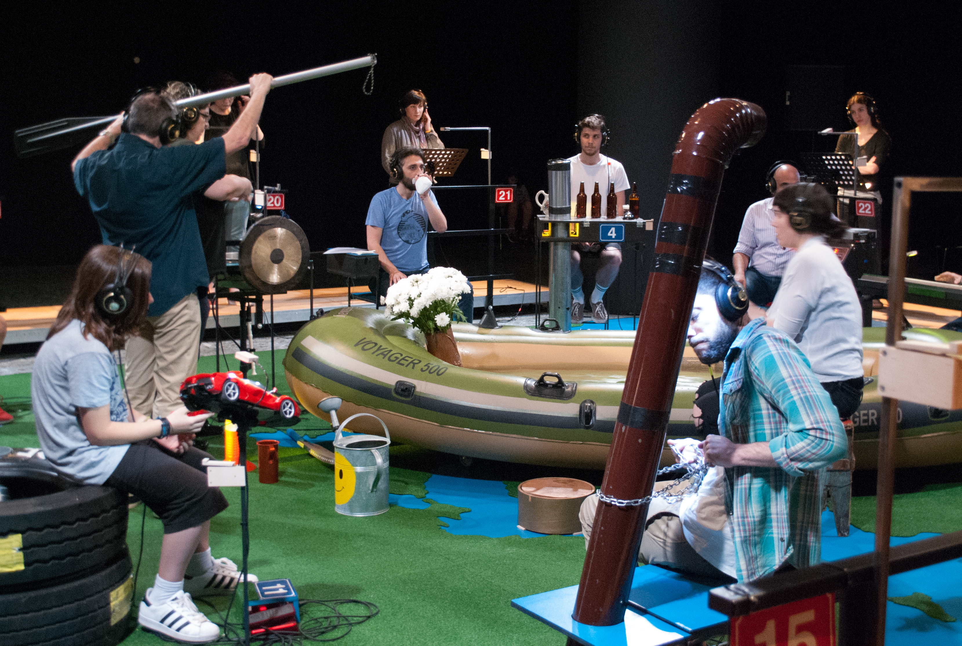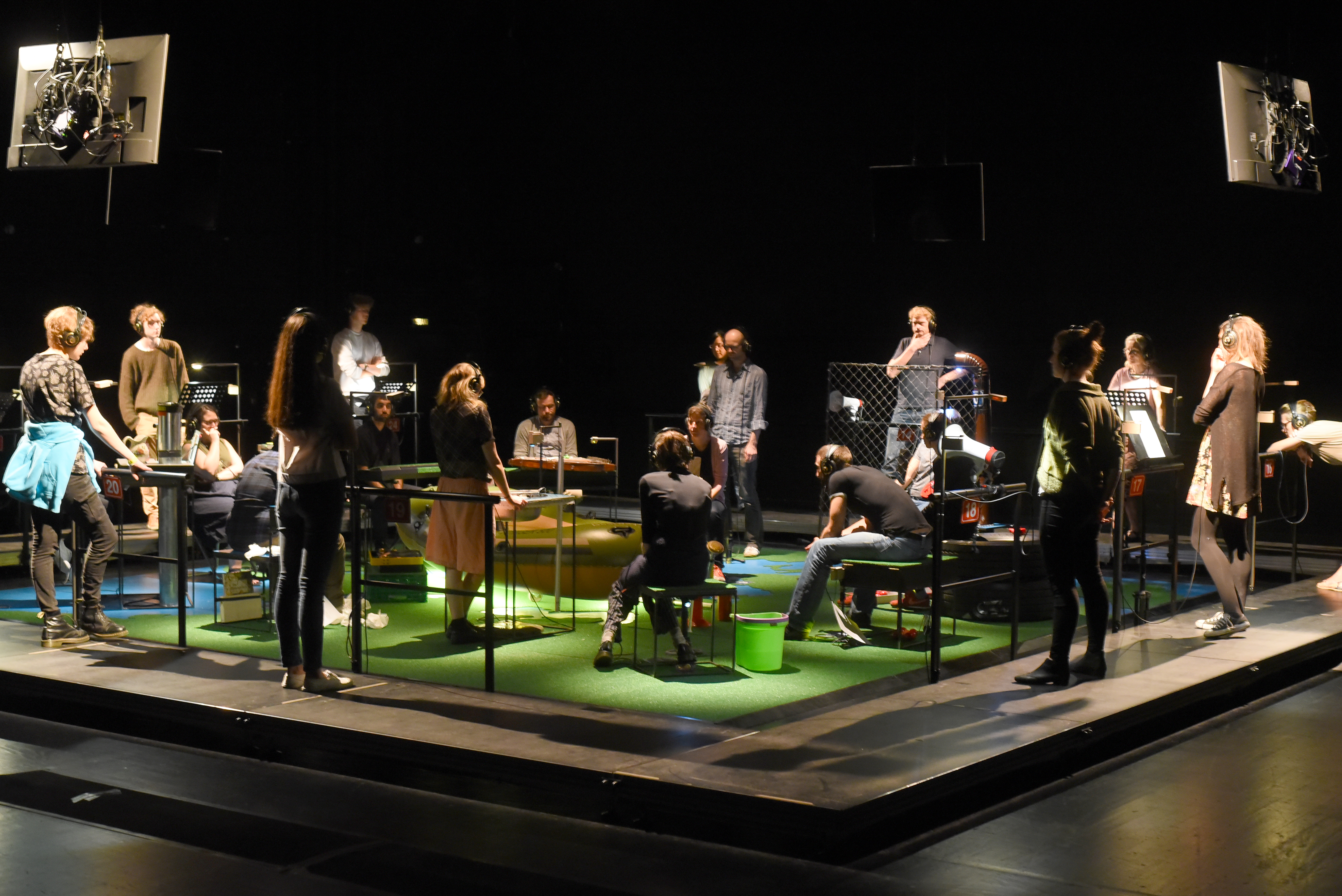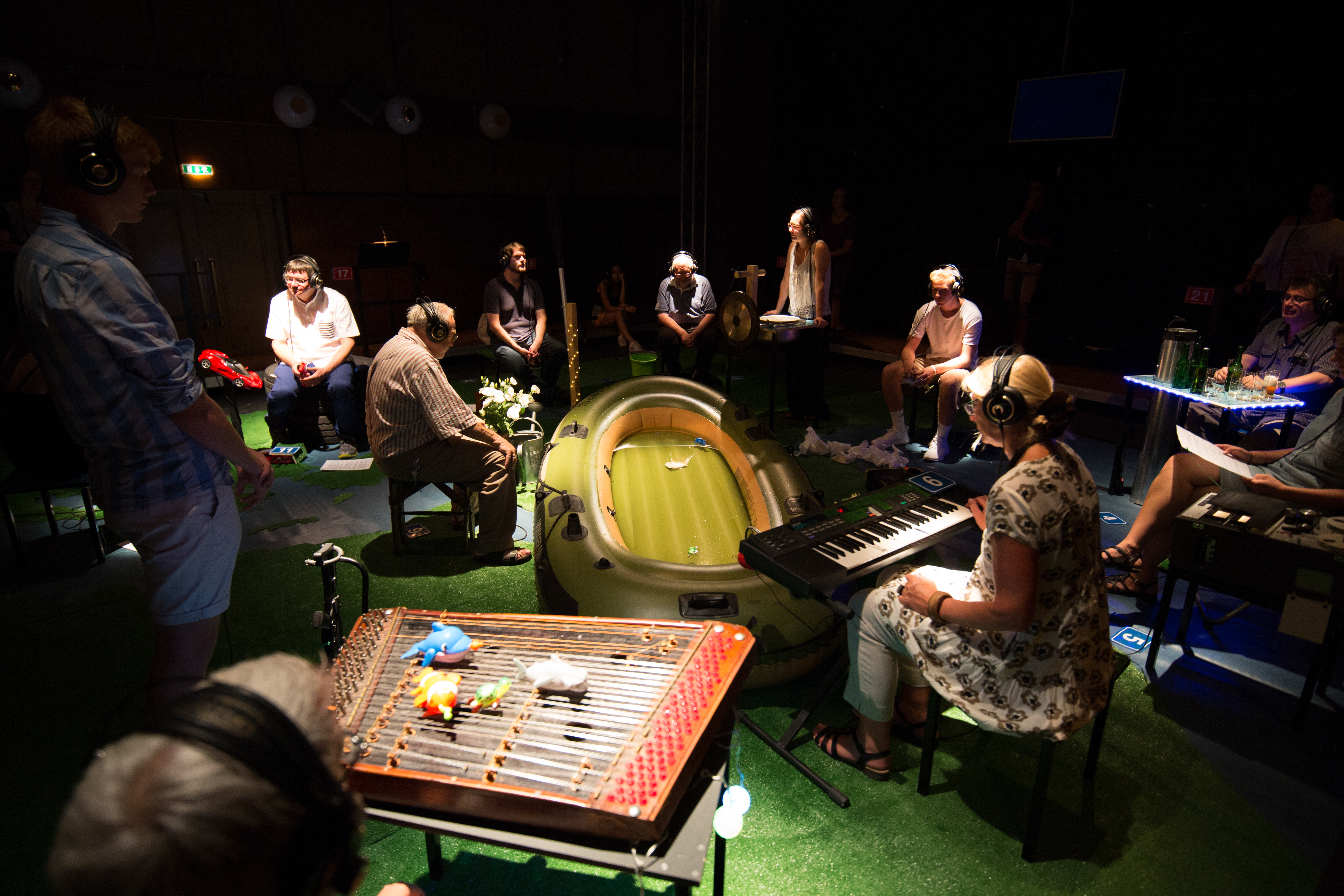 «Once you heard this concert I will live in Switzerland as well» – this was the closing sentence of «Evros Walk Water» – a swiss-greek project in 2015 for Schlossmediale Werdenberg. Since then the piece has done those journeys in Europe that it protagonists could not. Developed with minors in a refuge in Athens it places the audience in their positions at the instruments in this landscape like stage of Europe. «Walk Water» (1959) – duration 3 minutes – by John Cage is being performed again and again. Yet in-between everybody changes their positions, again and again, as well as their viewpoints on the narrations of the kids, and the music performed on basis of their directions on the headphones. «Evros Walk Water 1&2» has been developed in may 2017 with the Onassis Cultural Center in Athens. Some of the teenagers have meanwhile moved on, they live in Switzerland, Sweden, Denmark. Others have stayed and ask: How is it for you? The concert continues, the instruments alter, as well as the stories. A music theater piece celebrating the joy of noise, of listening, of participating and re-thinking.