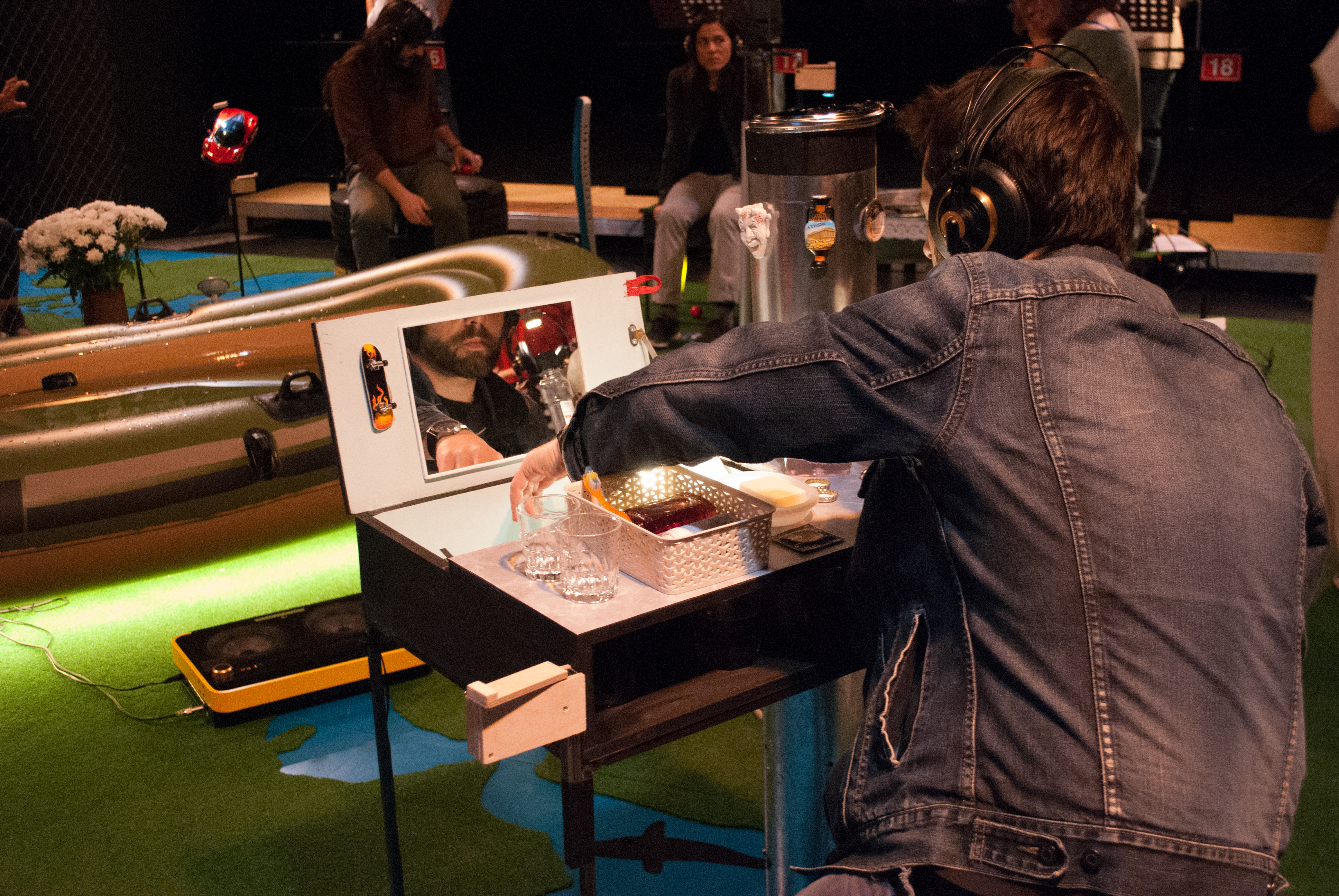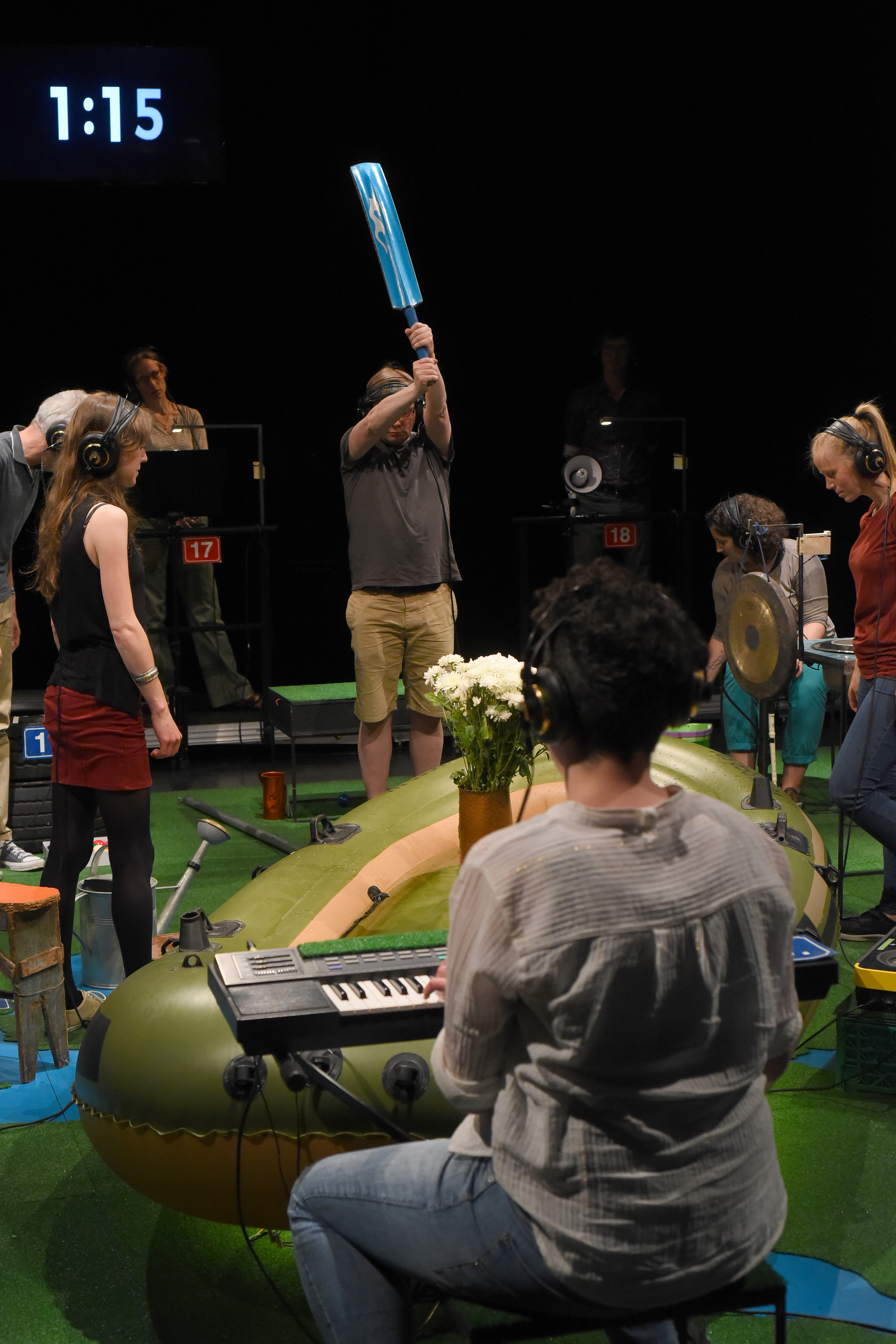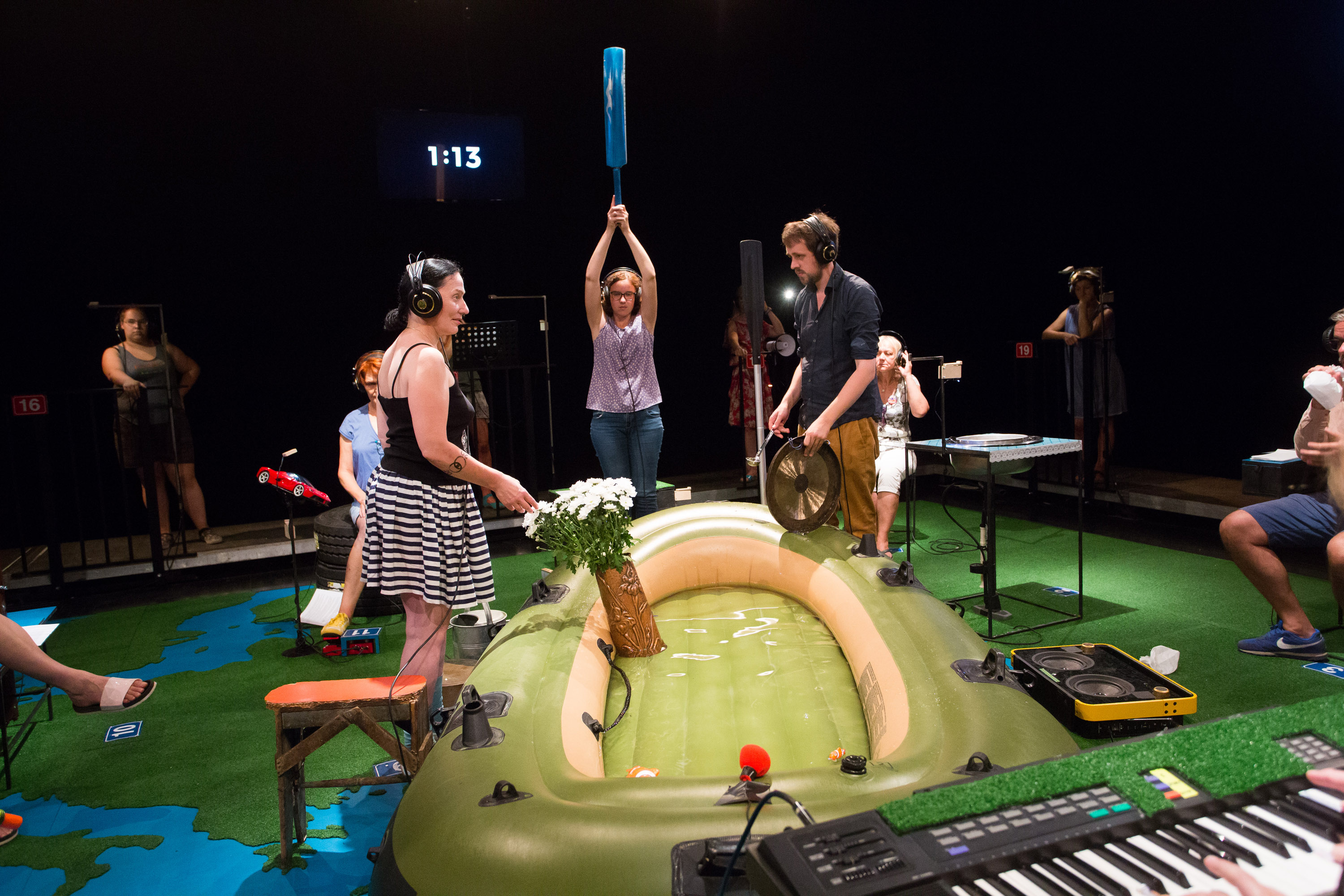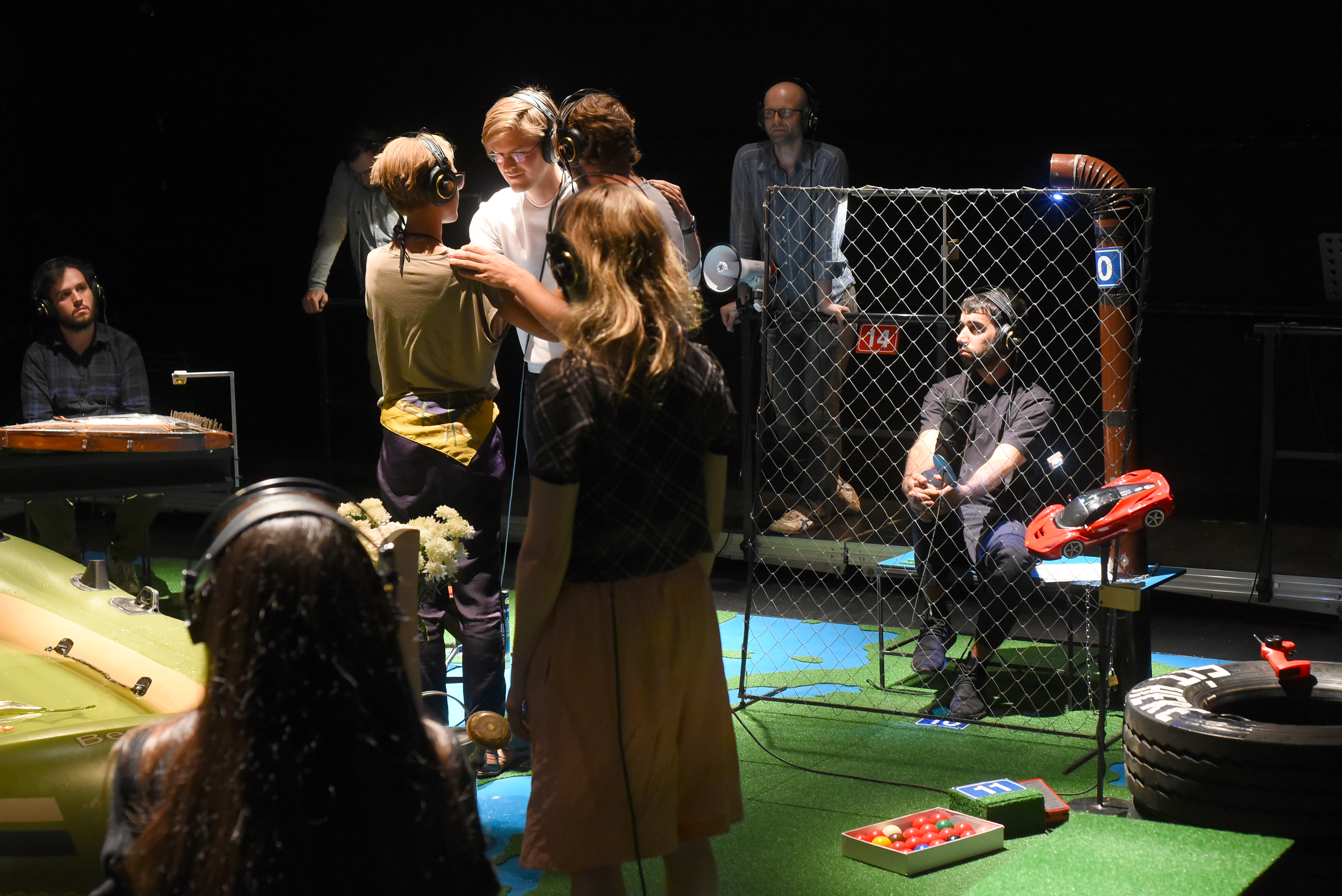 «Once you heard this concert I will live in Switzerland as well» – this was the closing sentence of «Evros Walk Water» – a swiss-greek project in 2015 for Schlossmediale Werdenberg. Since then the piece has done those journeys in Europe that it protagonists could not. Developed with minors in a refuge in Athens it places the audience in their positions at the instruments in this landscape like stage of Europe. «Walk Water» (1959) – duration 3 minutes – by John Cage is being performed again and again. Yet in-between everybody changes their positions, again and again, as well as their viewpoints on the narrations of the kids, and the music performed on basis of their directions on the headphones. «Evros Walk Water 1&2» has been developed in may 2017 with the Onassis Cultural Center in Athens. Some of the teenagers have meanwhile moved on, they live in Switzerland, Sweden, Denmark. Others have stayed and ask: How is it for you? The concert continues, the instruments alter, as well as the stories. A music theater piece celebrating the joy of noise, of listening, of participating and re-thinking.