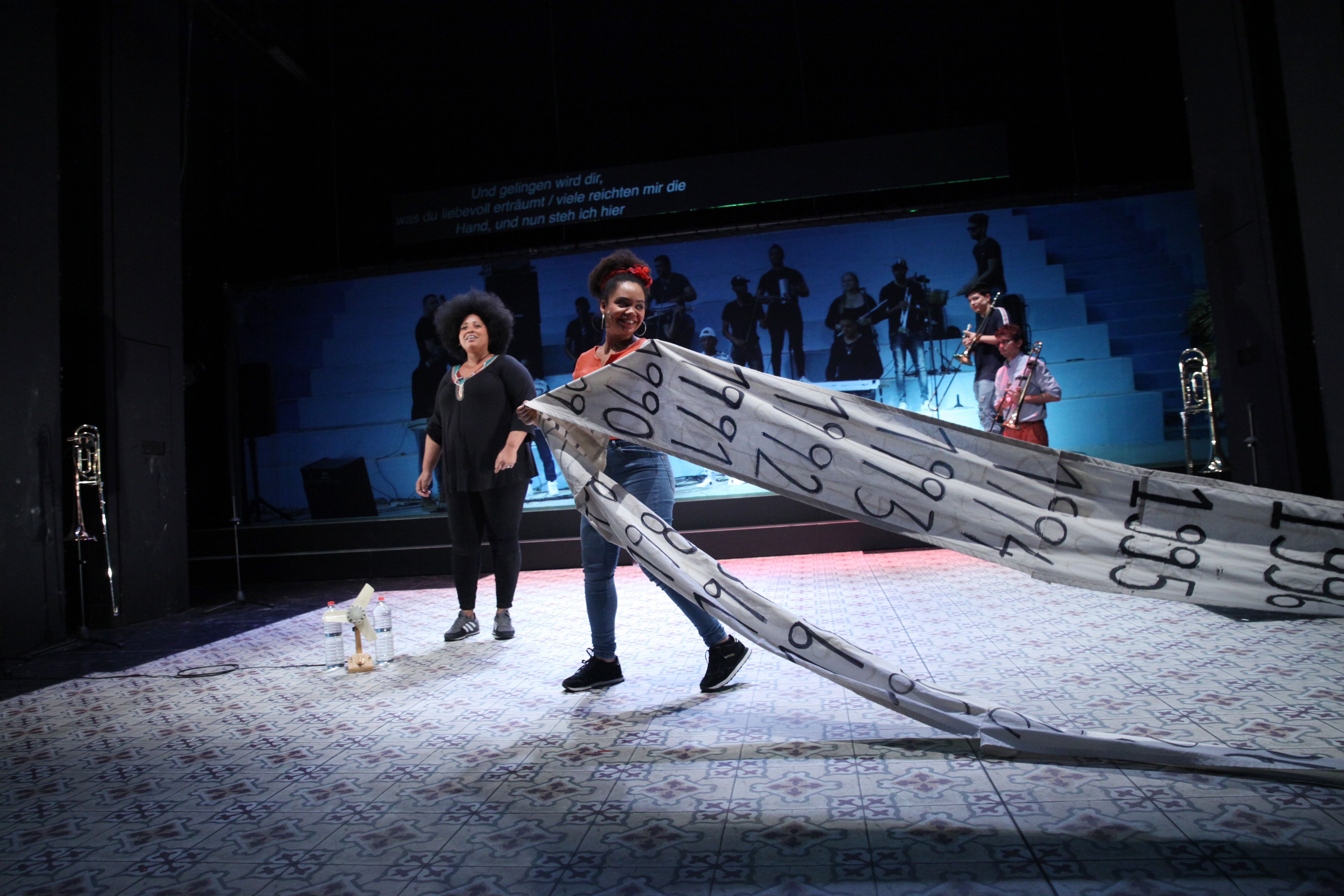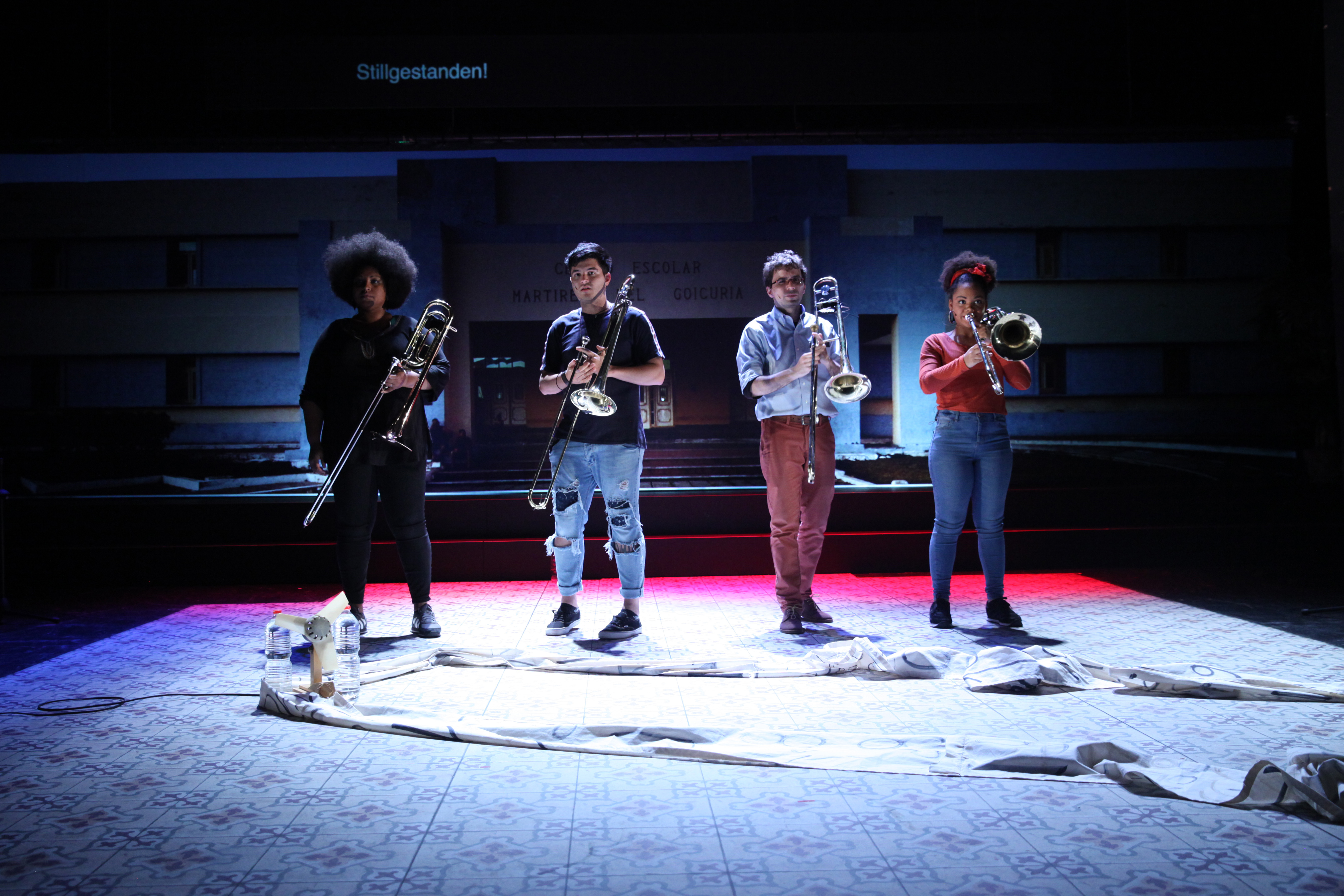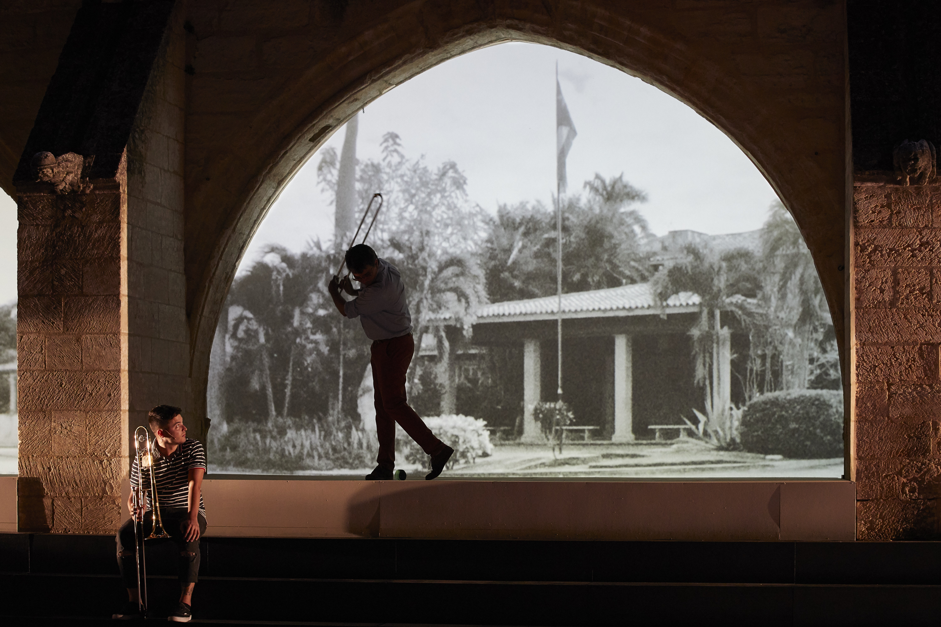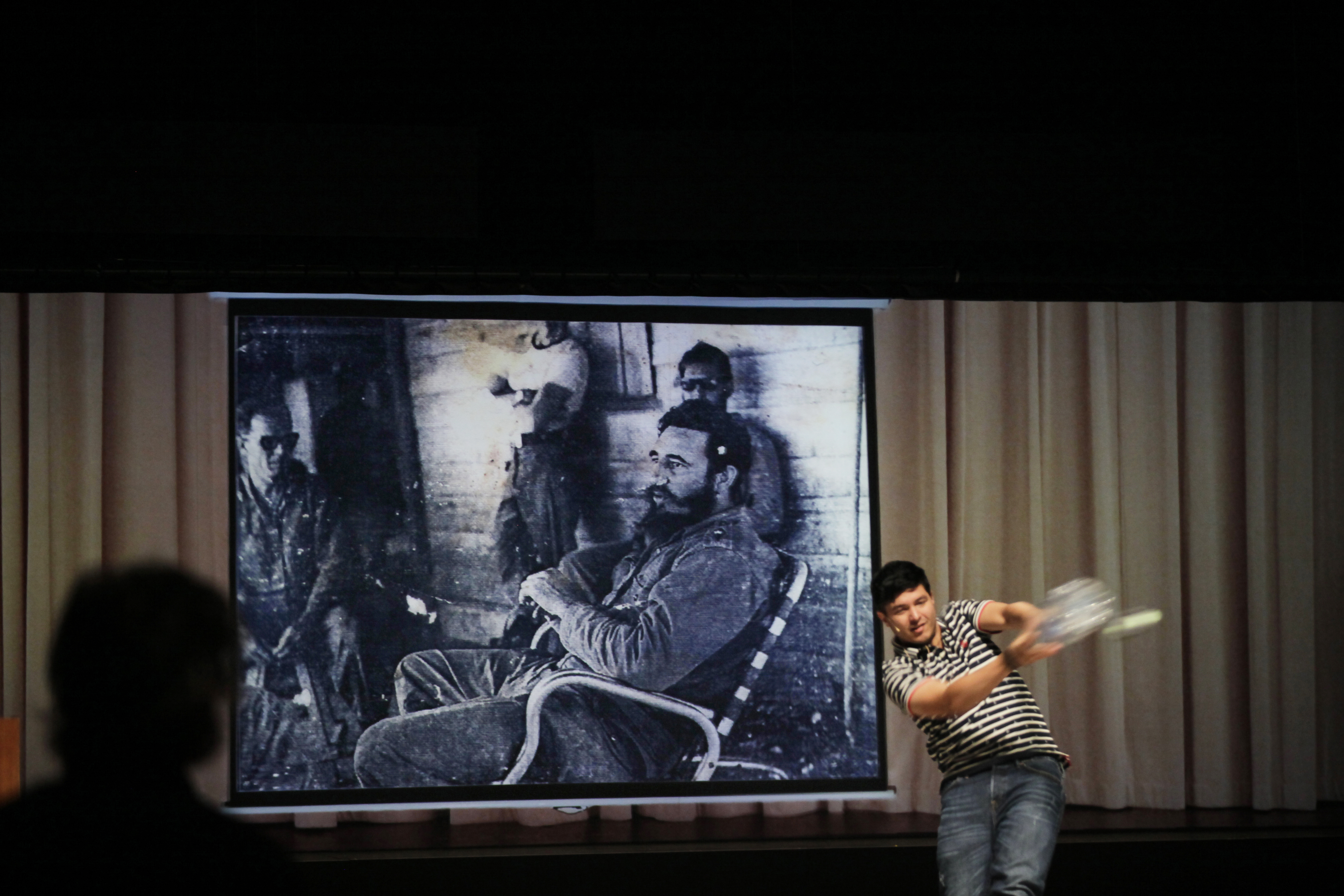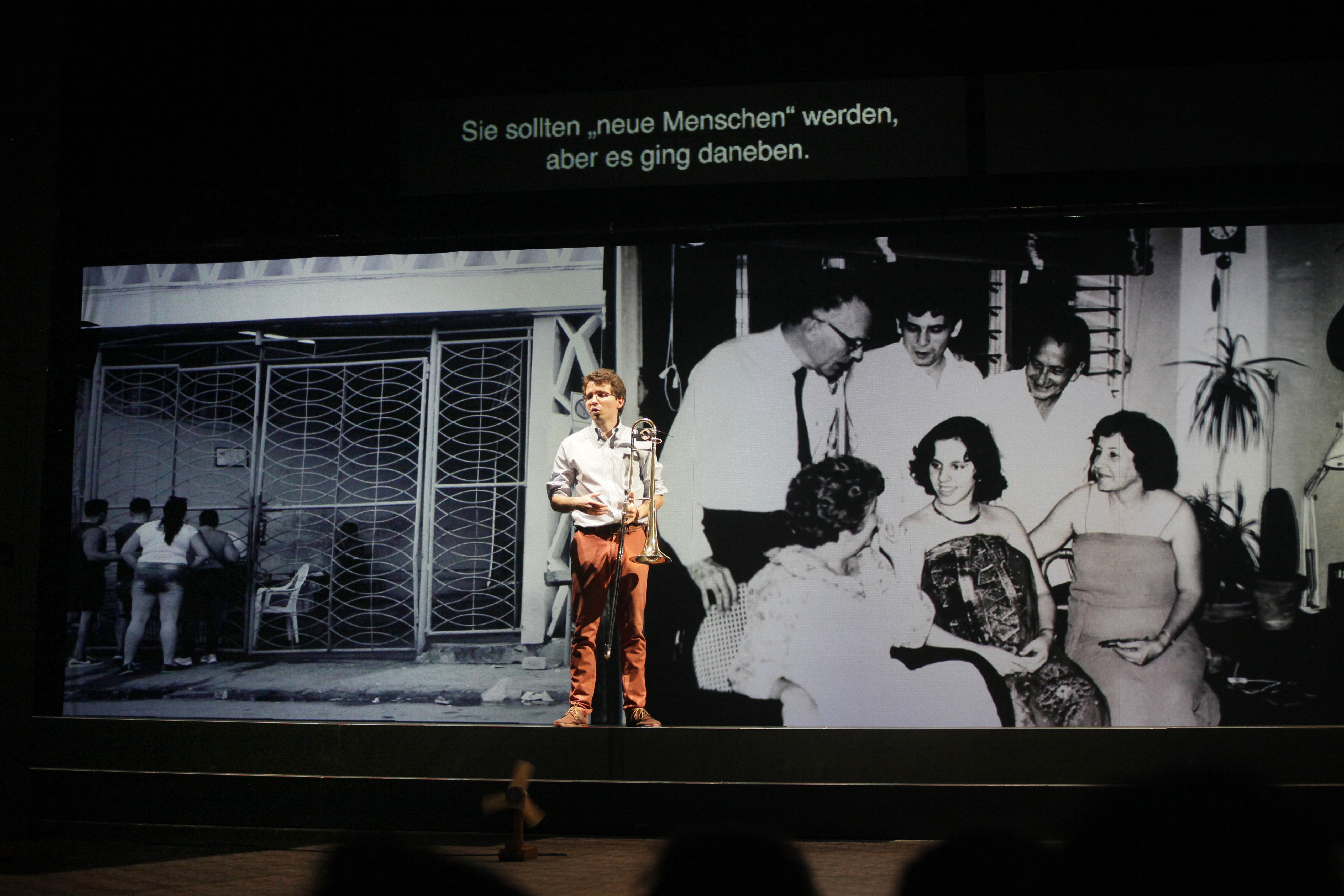 Cuba has always been a projection space for utopians and their critics. In the 60th year of the revolution, four young Cubans search for traces of history: after the revolution, Faustino Pérez became the first minister for nationalization of property after the revolution. His grandson Daniel still has a catalogue from an auction where confiscated barrettes and seaside villas were sold. Together with him on stage: 24-year-old software programmer Christian who traces his grandfather's path to the Angolan civil war, and Milagro, a history student, who tries to understand why the revolution that enabled her to study will barely allow her to earn a living once she becomes a professor.