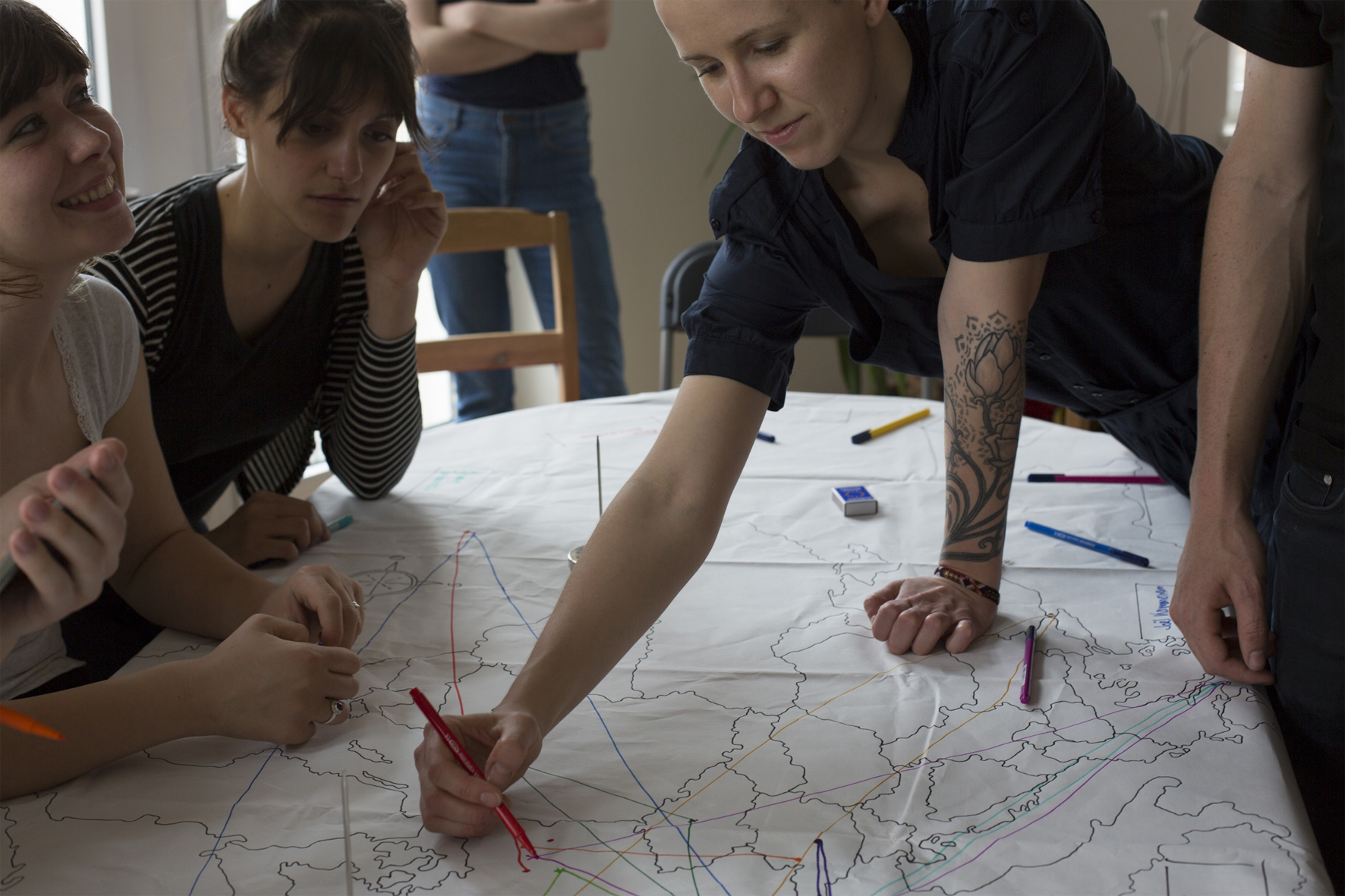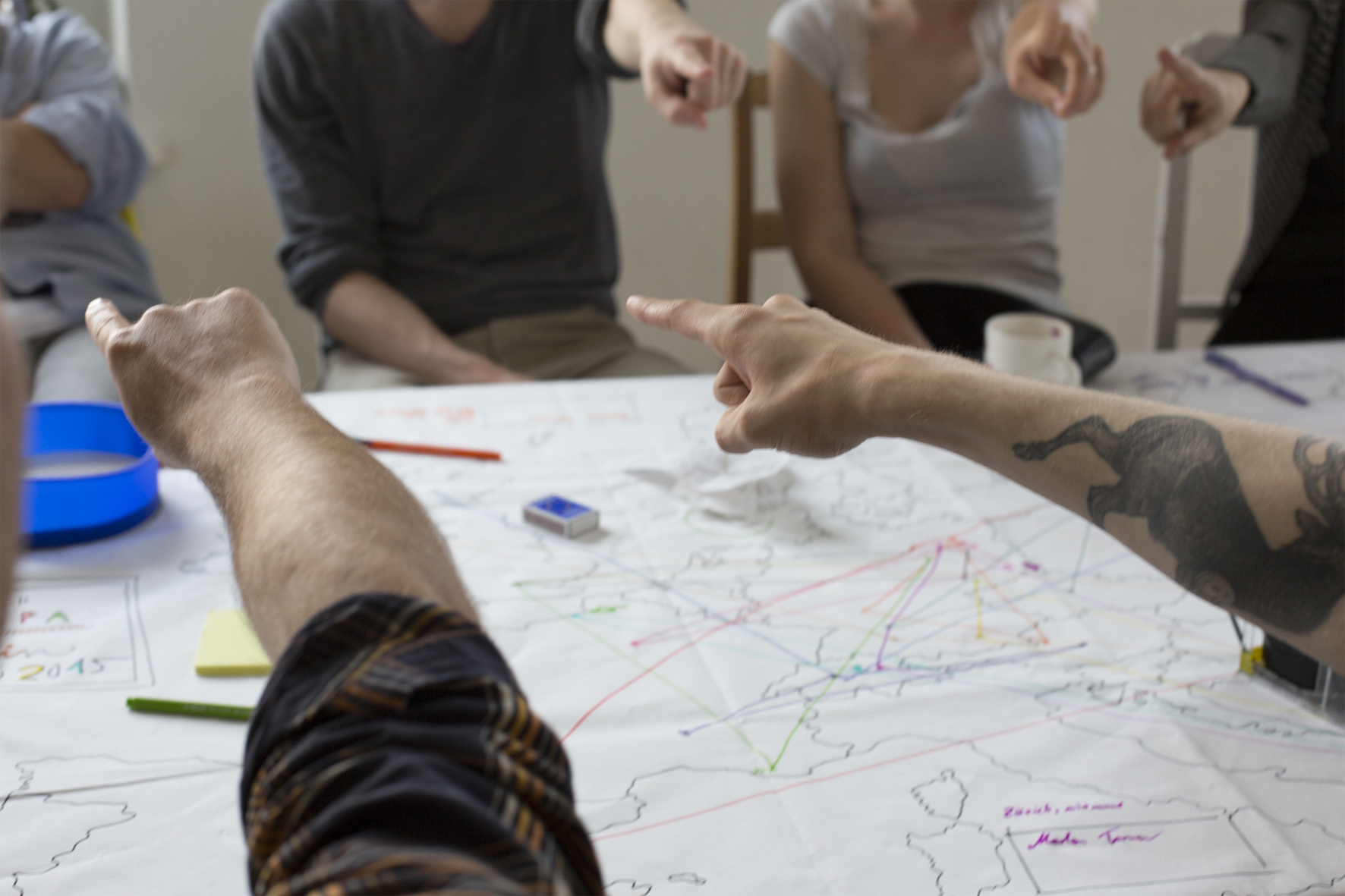 You can host Home Visit Europe in your own home or be a guest in a stranger's private apartment. Each performance takes place in different homes and so the performance will travel through hundreds of apartments throughout Europe, building a network that rather than growing from a centre, stretches from front door to front door across a continent.