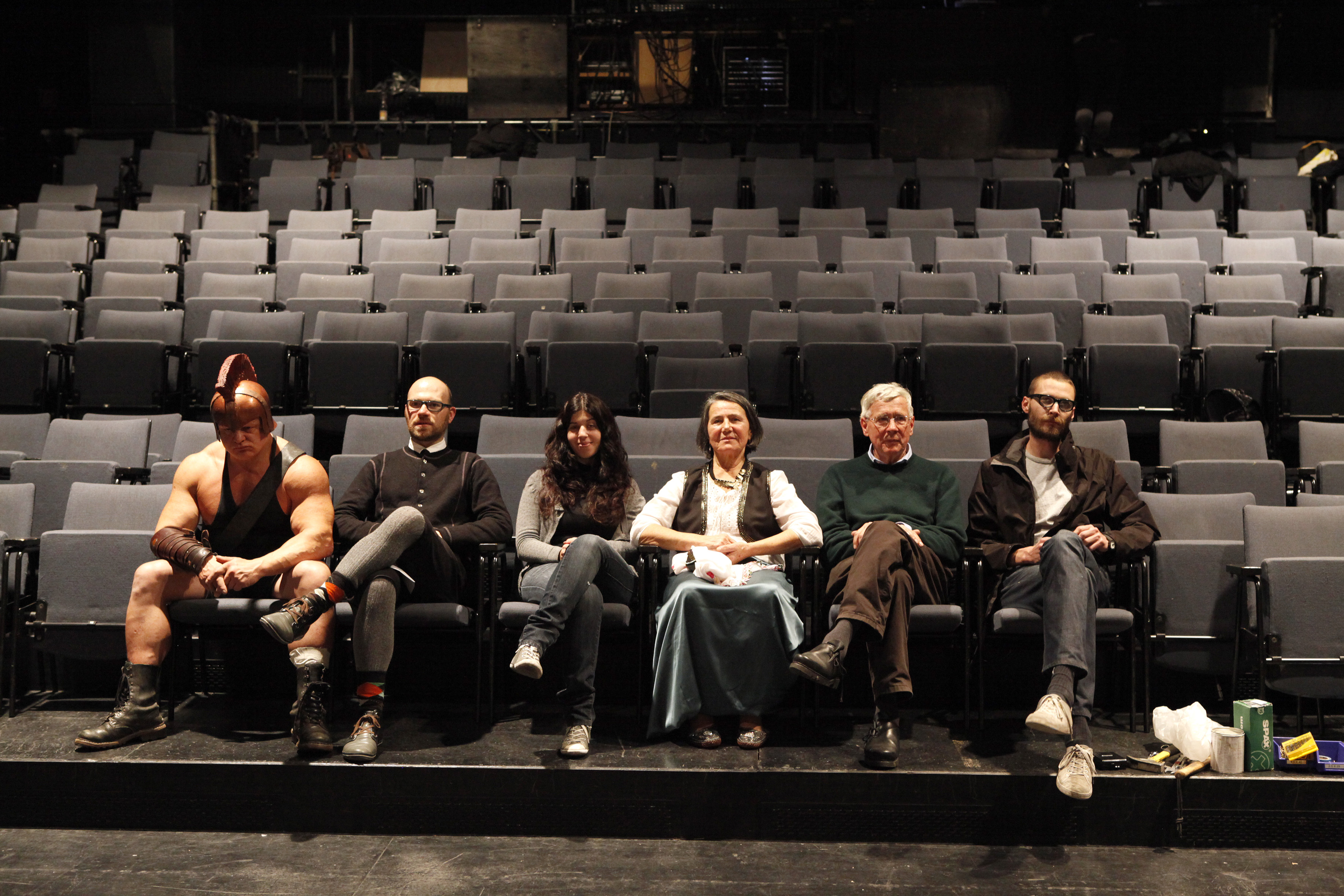 A young woman flies to her hometown of Cairo, right into the heart of the insurgency. The euphoria of arrival is soon replaced with scepticism and her Facebook community soon dissolves into a tangle of squabbling conflict. An older woman's nights in Berlin are haunted by the memories of her traumatic experiences in Srebrenica. A young hacker, who turns his back first on the U.S. and then on Israel, explores the potential extremes the internet offers for anonymous money transfer, encrypted markets and total concealment. A veteran hacker, who sees the internet as a place of indelible memory, goes back through the young, unprotected data networks of high-security institutions. A text, which makes the fight for freedom it's goal and which demands subordination from everthing and everyone. After "Wallenstein", "Karl Marx: Das Kapital, Erster Band," "Breaking News" and "Prometheus in Athens," Helgard Haug and Daniel Wetzel undertake another theatrical adventure which will bring a group of experts of their own biography's onto a collision course with a text whose radicalism supersedes the needs of the individual and will simulate the great movement for those who allow themselves to be cast under its spell. Eginhardt: ... All teutoburg now leis in ash and ruin! - Herrmann: That may be! But we’ll build ourselves a better one.