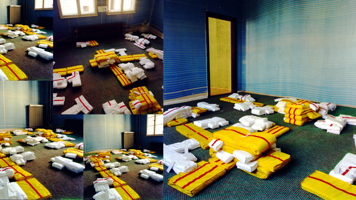 A transmission of the outlines of the gallery-space onto the map of Berlin. All streets are rebuilt as textile objects, sewed and formed and finally become travel-objects.
