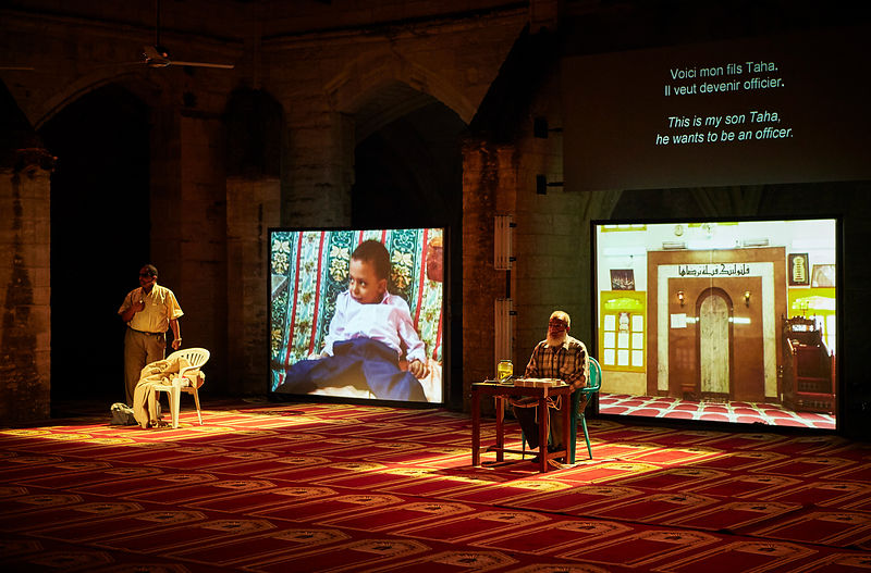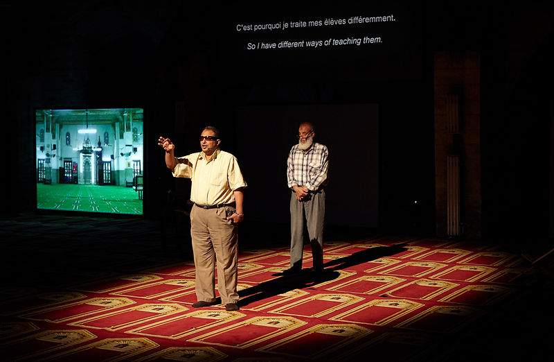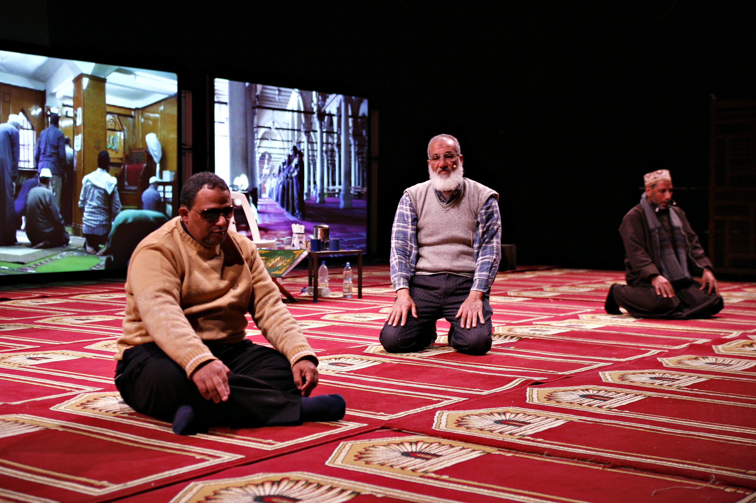 “Radio Muezzin” has them meet an engineer who learned to encode radio signals at the Aswan dam. In a mosque made of carpets and fans, they become the protagonists reconstructing their own lives. Between their words and the video images of their daily lives emerge new voices that describe the transformation of the call to prayer in the age of its technical reproduction.