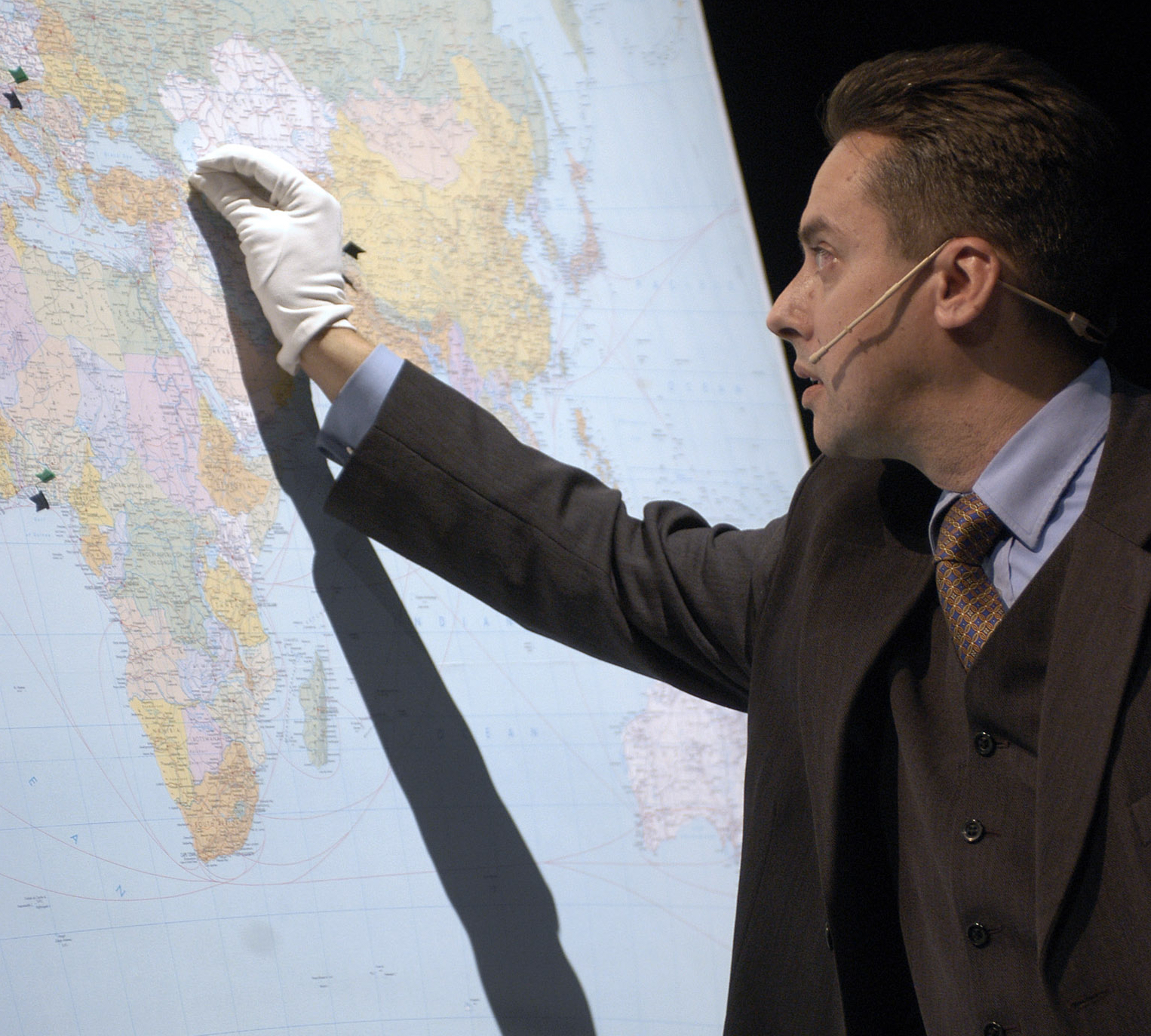 Where does Vienna stop being a stage? Rimini Protokoll rummaged through Vienna’s diplomacy and representation at the Schwarzenbergplatz with research and background conversations. In doing so they created an ensemble of performers who aren’t actors, but their own performers, representatives of their own story of life, ambassadors of their offices and memories. The rehearsals and research were equally negotiations about what could be said and what couldn’t, about protocol and its fringes, about the country and its borders, the public image and its counterpart in background conversations. At the Schwarzenbergplatz, they collected subjective highlights of the semantic field which is created when nations meet at the Hofburg, in the shop window, at a conversation by the fire place , at the Green Border. How does a country sign the biographies of its performers?