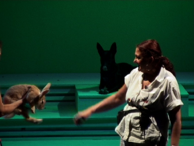 A piece about the language between humans and animals in a theatre with a back door opening on to Buenos Aires zoo. On stage is the ex-bank assistant Estella Maris with her greyhound, who she now takes to bed with her since her divorce. Maria Cisale with her 12 rabbits, which are named according to memories lost by Maria in an accident, Enrique Santiago, a dealer in spare car parts with his camera-bearing tortoises Romeo and Juliet, the phone card hacker Martin Fernandez with his iguana.