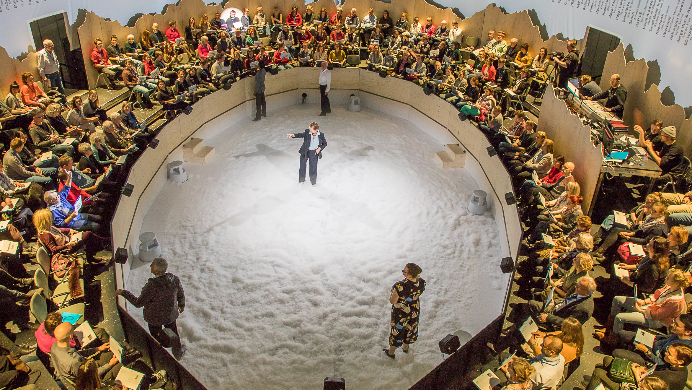 With their series State 1–4, Rimini Protokoll set out to explore fields outside of what can be organized and controlled by the nation-state today. Rimini Protokoll look back at the essence of the powers whose separation was once intended to form the essential mechanism for monitoring state structures. To what extent are these powers still able to regulate the decisive impetuses for change faced by societies?