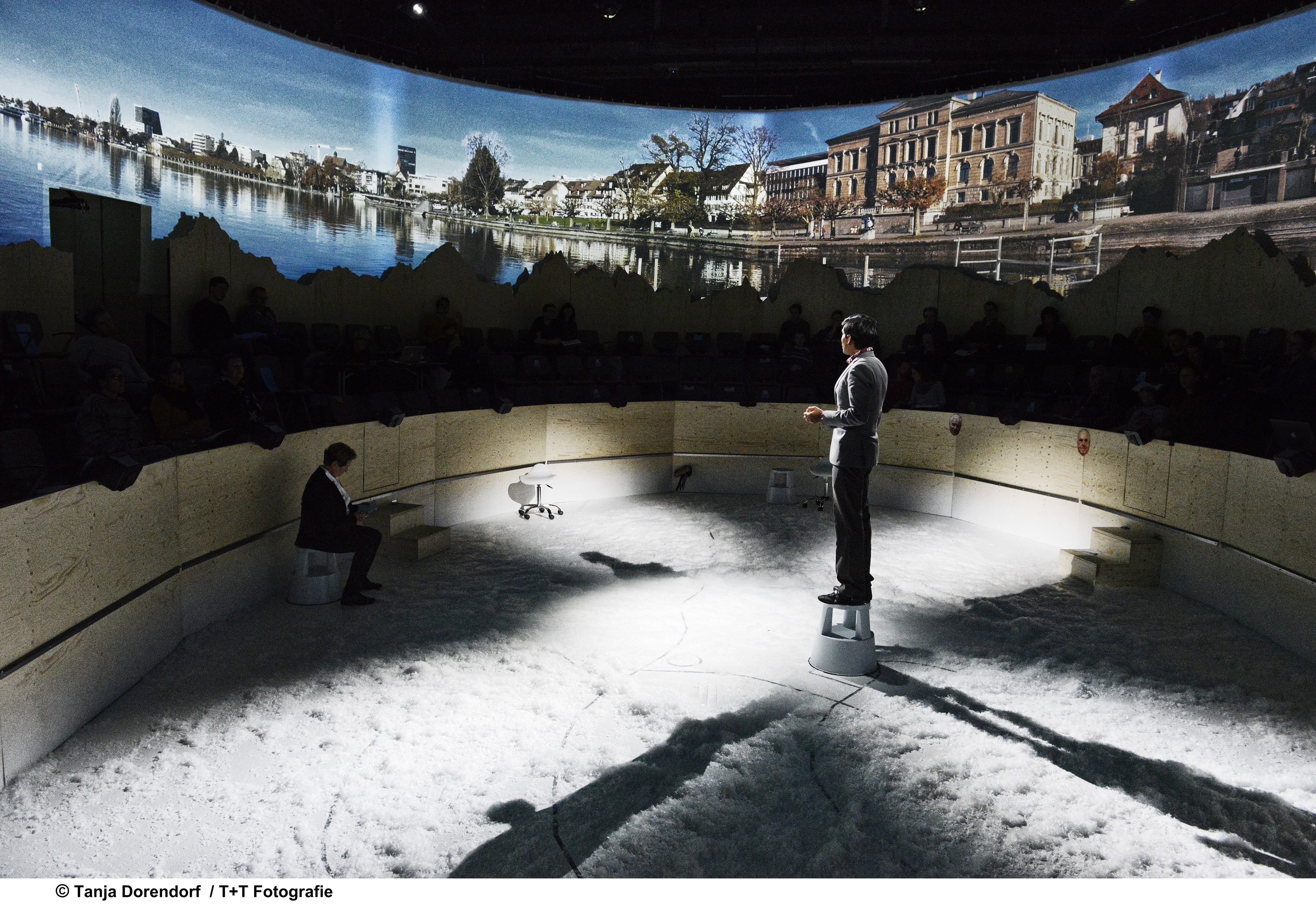 This examination is set at the Schauspielhaus Zürich, not far from the Zürich Kloten Airport, which, during the World Economic Forum, becomes the parking lot of the private jets of the VIPs who take helicopters from here to Davos.